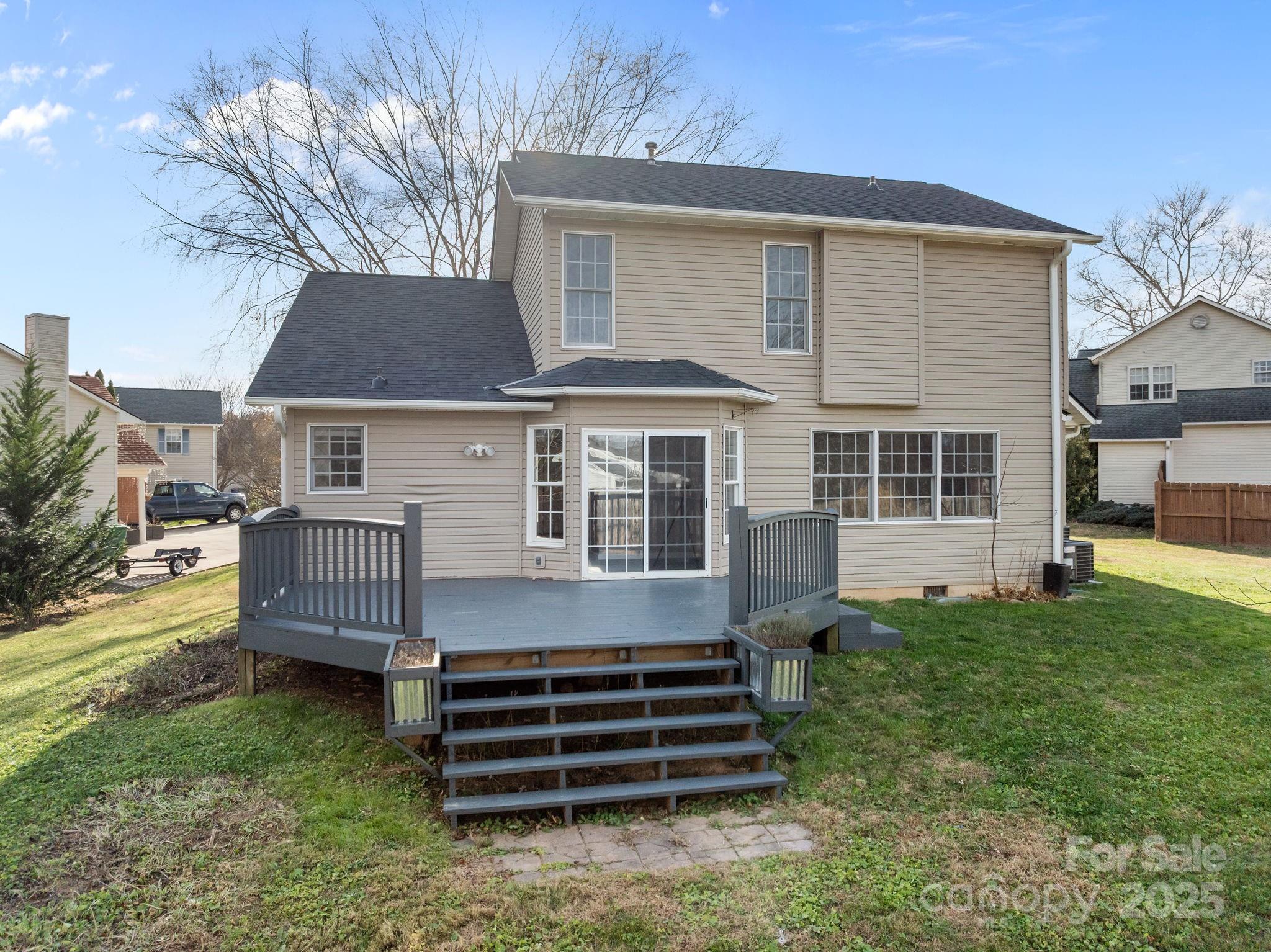 Welcome to this inviting 4-bedroom, 3-bath home situated at the end of a quiet cul-de-sac in West Asheville. Designed for comfort and ease, the main level features a spacious living area with hardwood floors, a soft neutral palette, and a serene primary bedroom with its own fireplace—a cozy retreat at the end of the day. Three additional bedrooms upstairs (including a second primary suite) offer great separation of space for everyday living. Enjoy time outdoors on the covered front porch or the back deck overlooking the level .29-acre lot, perfect for pets and play. A small fenced area and conveying chicken coop open the door for simple homesteading, gardening, or other outdoor hobbies. The attached two-car garage and wide driveway provide ample parking for visitors. With a **new roof and HVAC system installed in 2025**, this move-in-ready home blends comfort, space, and location—just minutes from the best of West Asheville.