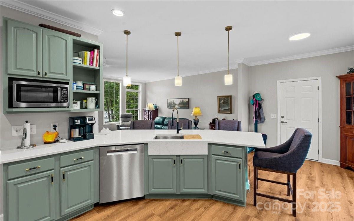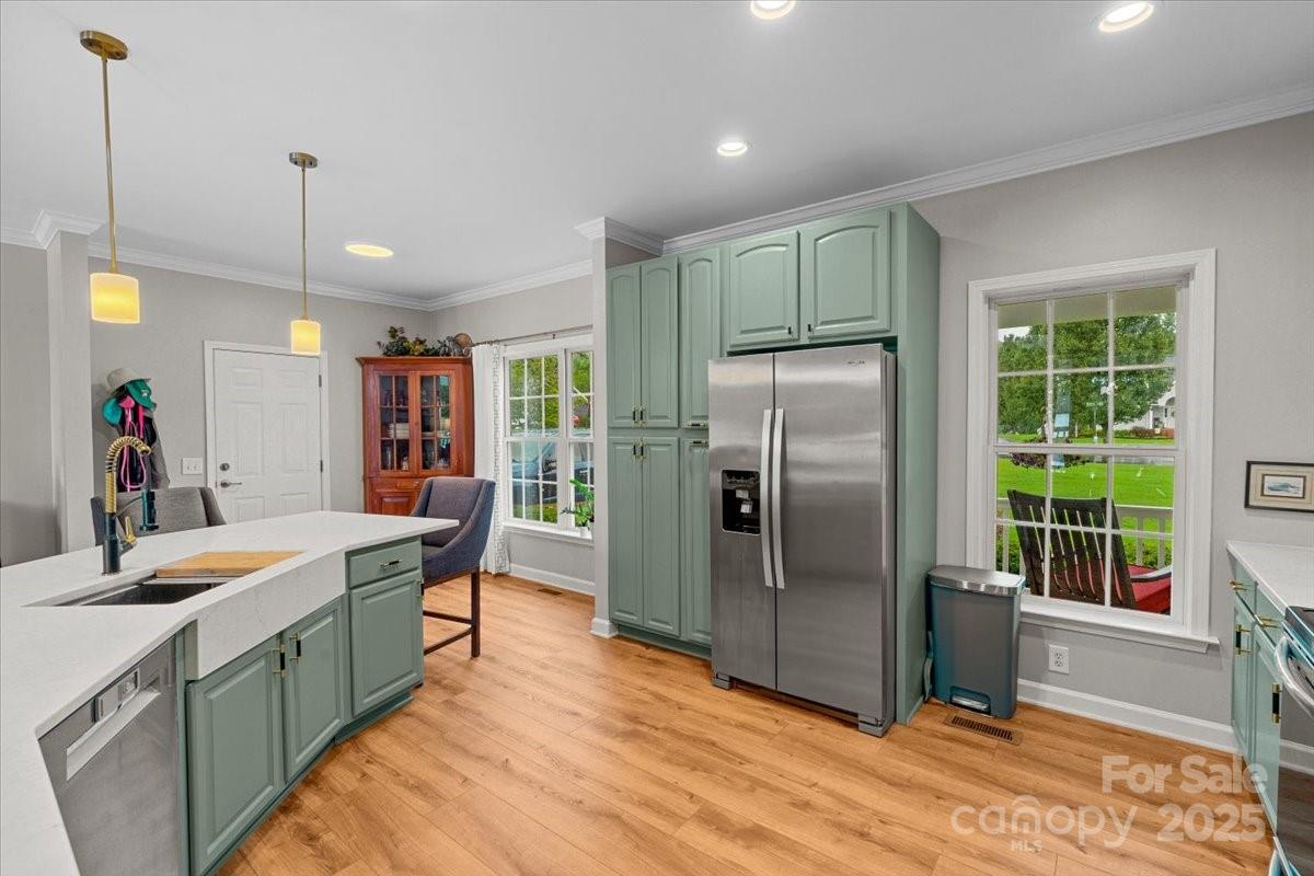 High Rock Lake Retreat in the Private Gated Harborgate Community! Welcome to this beautifully maintained lakeside home offering a gentle walk to the shoreline and a shared pier—the perfect spot for morning coffee, evening sunsets, and some of the best fishing on High Rock Lake. This portion of the lake is known for abundant wildlife including ducks, herons, and other lake life that create a peaceful, nature-filled setting. The main-level primary suite, living room, and porch all showcase stunning lake views. The home also features multiple flexible living areas that can be used as guest quarters, office space, hobby rooms, or private retreats—creating the feel of four private sleeping areas. Upstairs includes one dedicated bedroom plus two versatile bonus rooms, and the large finished basement adds a second living area with its own refrigerator, sink, quartz island, and separate entry—ideal for an in-law suite, extended guest stays, or hosting. The kitchen was fully renovated in 2025 with quartz countertops, new cabinets, appliances, fixtures, and LVP flooring. Major upgrades include a new roof (2024), two HVAC units (2021), and a Superior Walls foundation system for long-term structural quality and efficiency. Harborgate offers true gated privacy with 24/7 controlled access, providing homeowners added peace of mind, security, and a quiet community feel. Amenities include a clubhouse, swimming pool, fitness center, playground, book exchange, tennis & pickleball courts, boat storage, and a private boat launch—all in a beautifully maintained lakefront setting minutes from Denton, Lexington, and Salisbury.