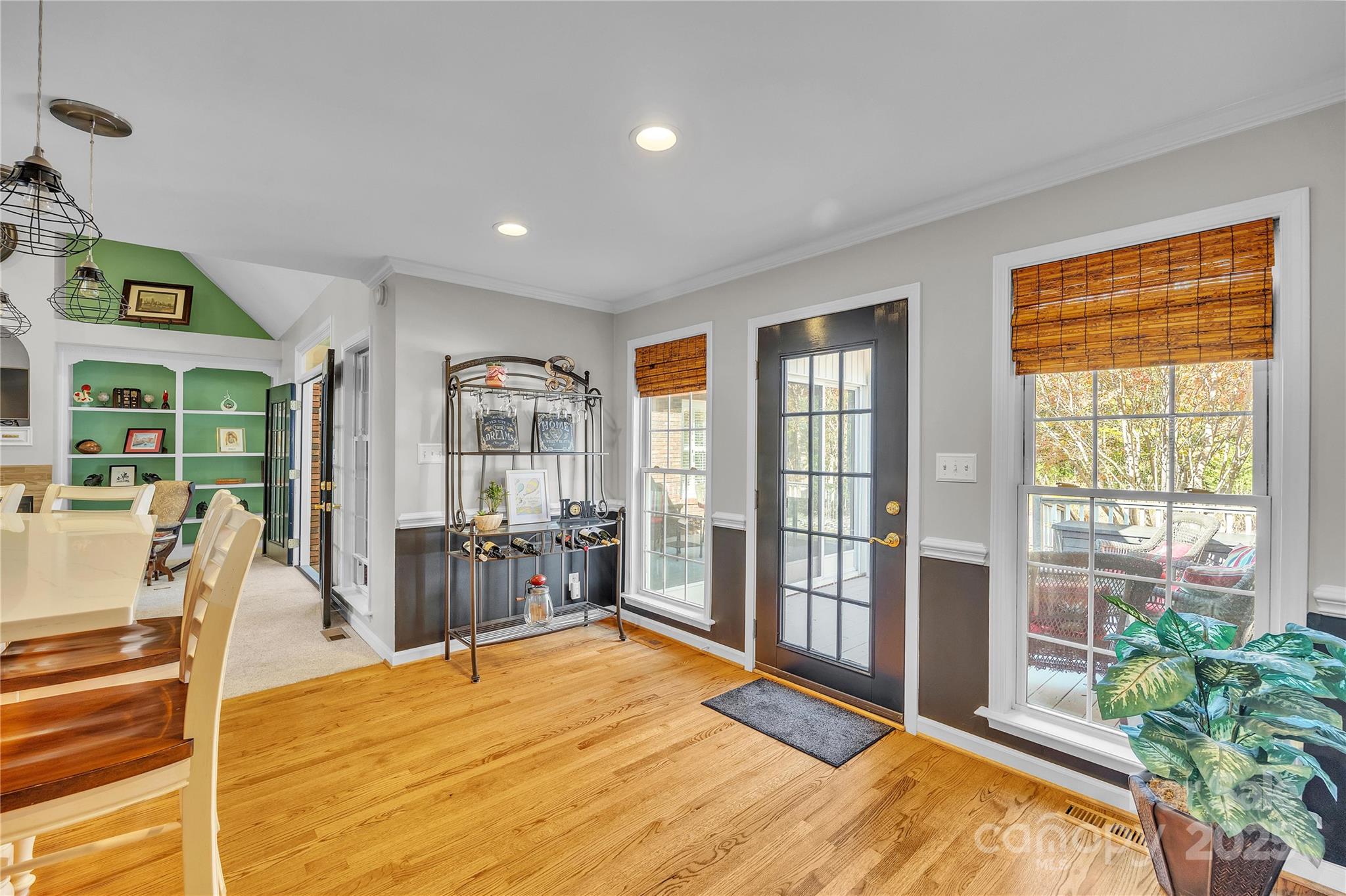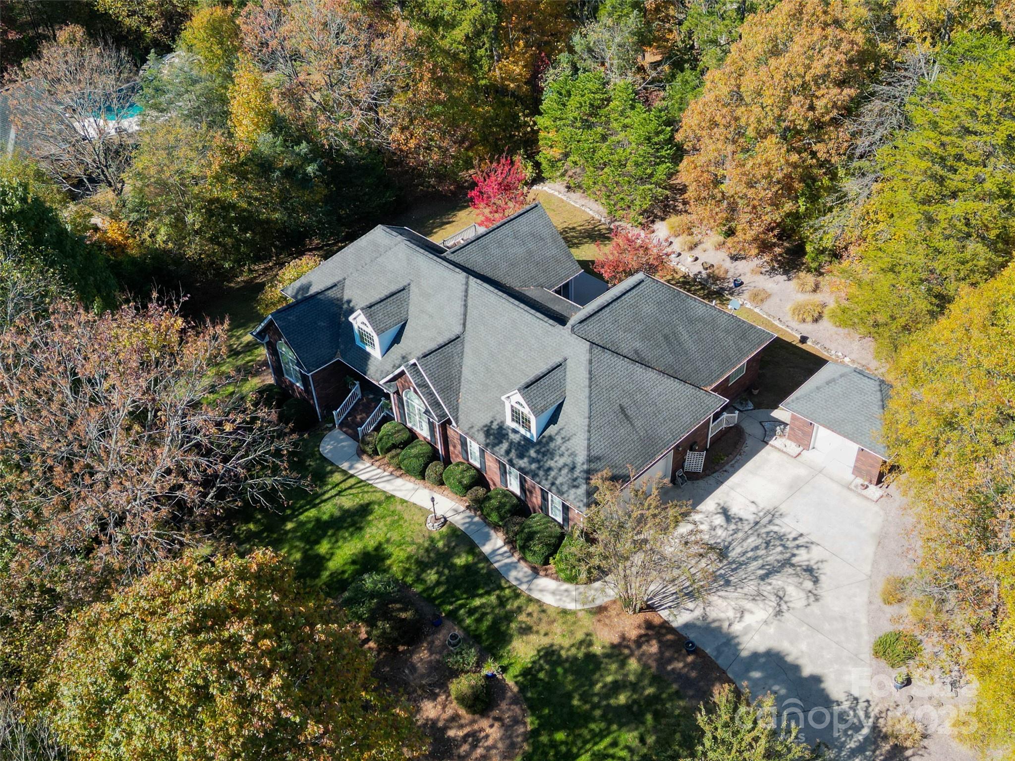 Welcome home to this beautifully maintained residence offering a perfect blend of comfort, thoughtful upgrades, and inviting spaces inside and out. From the moment you step through the front door, the warmth and quality of this property are unmistakable. The spacious great room is the heart of the home, featuring a stunning fireplace with custom built-ins on both sides, soaring vaulted ceilings, and refinished hardwood floors that set an elegant tone. Natural light pours in, creating an uplifting atmosphere that makes this space perfect for both daily living and entertaining. Just beyond, a bright and cheerful heated and cooled sunroom invites year-round enjoyment. Surrounded by windows and accented by French doors, this space connects seamlessly to the expansive wrap-around deck, offering endless opportunities for outdoor dining, gatherings with friends, or peaceful morning coffee overlooking the yard. The kitchen is generously sized and beautifully appointed with black granite and quartz countertops, abundant cabinetry, and a superb layout with plenty of workspace for cooking and hosting. A large laundry room offers excellent storage and a convenient utility sink, thoughtfully located for functionality. The main-level primary suite features dual walk-in closets and a spacious bath with a separate tub and shower and a serene setting for rest and renewal. Upstairs, a versatile bonus room—including a mini-split system for comfort in all seasons—offers flexible possibilities for office, fitness, recreation, or guest use. The huge walk-in attic provides exceptional storage rarely found in homes today. Major systems and updates add peace of mind: a newer HVAC unit, 2021 electric water heater, interior fresh paint throughout, water conditioner, and beautifully refinished hardwoods. Attractive shutters enhance the curb appeal, complementing the property’s welcoming exterior. Additional features include a 2-car oversized attached garage with epoxy-coated flooring and a retractable screen that allows bug-free open-air use—ideal for hobbies, parties, or relaxing. A detached garage / building is perfect for a riding mower, tools, golf cart, or workshop and adds valuable additional storage capacity. This home offers thoughtful details throughout, flexible spaces, and a lifestyle of comfort and convenience. A rare opportunity to own a property that truly has it all—well-maintained, beautifully finished, and ready to enjoy from day one. With 1.5 acres and such a private setting, you will feel like you are in the mountains but really you are just minutes away from conveniences!