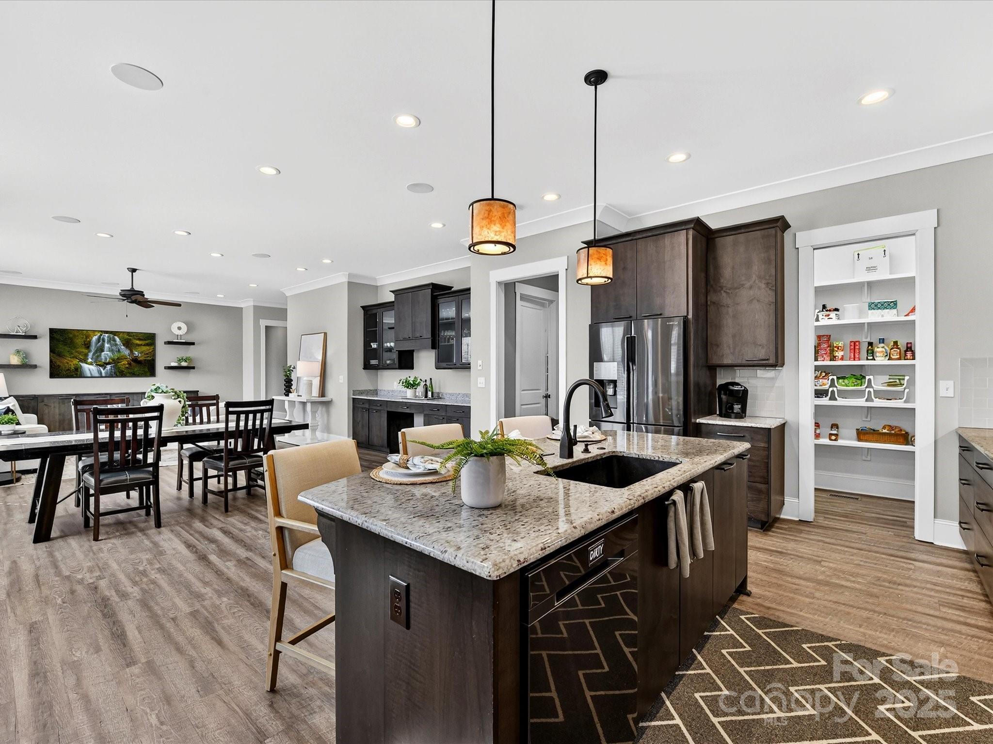 Stunning, 3 Bedroom, 3 Bath Home with oversized 2 car garage, Pool/Spa & Fenced back yard located in a highly desirable location in a lake access neighborhood near Langtree! Impressive, double door entry boasts an Open, Amazing Plan throughout! Spacious living spaces including a gourmet Kitchen with granite counters, stainless steel appliances including Refrigerator to remain, large island, tons of cabinetry for storage, walk in pantry, tile back splash & dining area! Convenient Office on main with door for privacy & fabulous built ins with access to Full Bath! Huge Primary Suite on main features tray ceiling, crown molding, spacious walk in closet with custom shelving system & private bath! Retreat to the upper level where you will find additional, spacious bedrooms, a Bonus Room & Recreation Room (Bonus & Rec Room were permitted additions)! Step out to your tranquil outdoor oasis with an in ground, salt water, heated pool/spa! There is plenty of room for lounging by the pool or relaxing in your screened porch at the end of the day! Fenced, level back yard & lush landscaping/mature trees complete your restful sanctuary! With Smart Home technology & Solar Panels (keeping the power bills low) this home has it all! Property has a nearby marina, shopping, restaurants, & easy access to the interstate, the location is perfectly ideal for Lake Norman living.