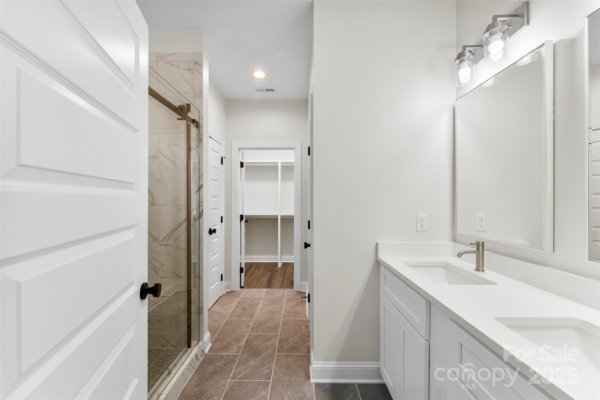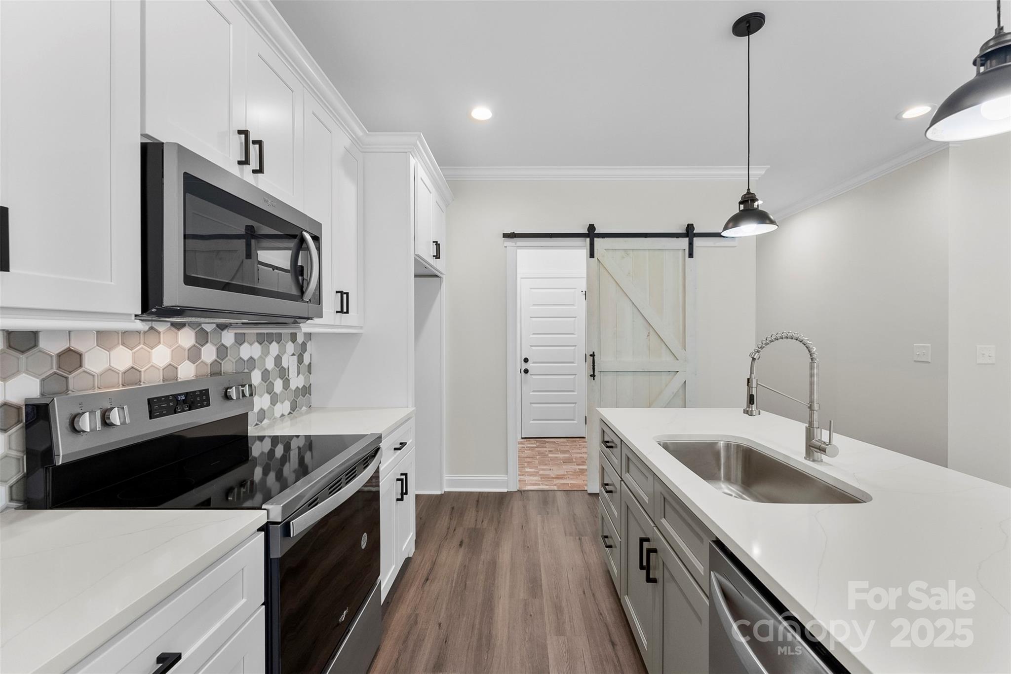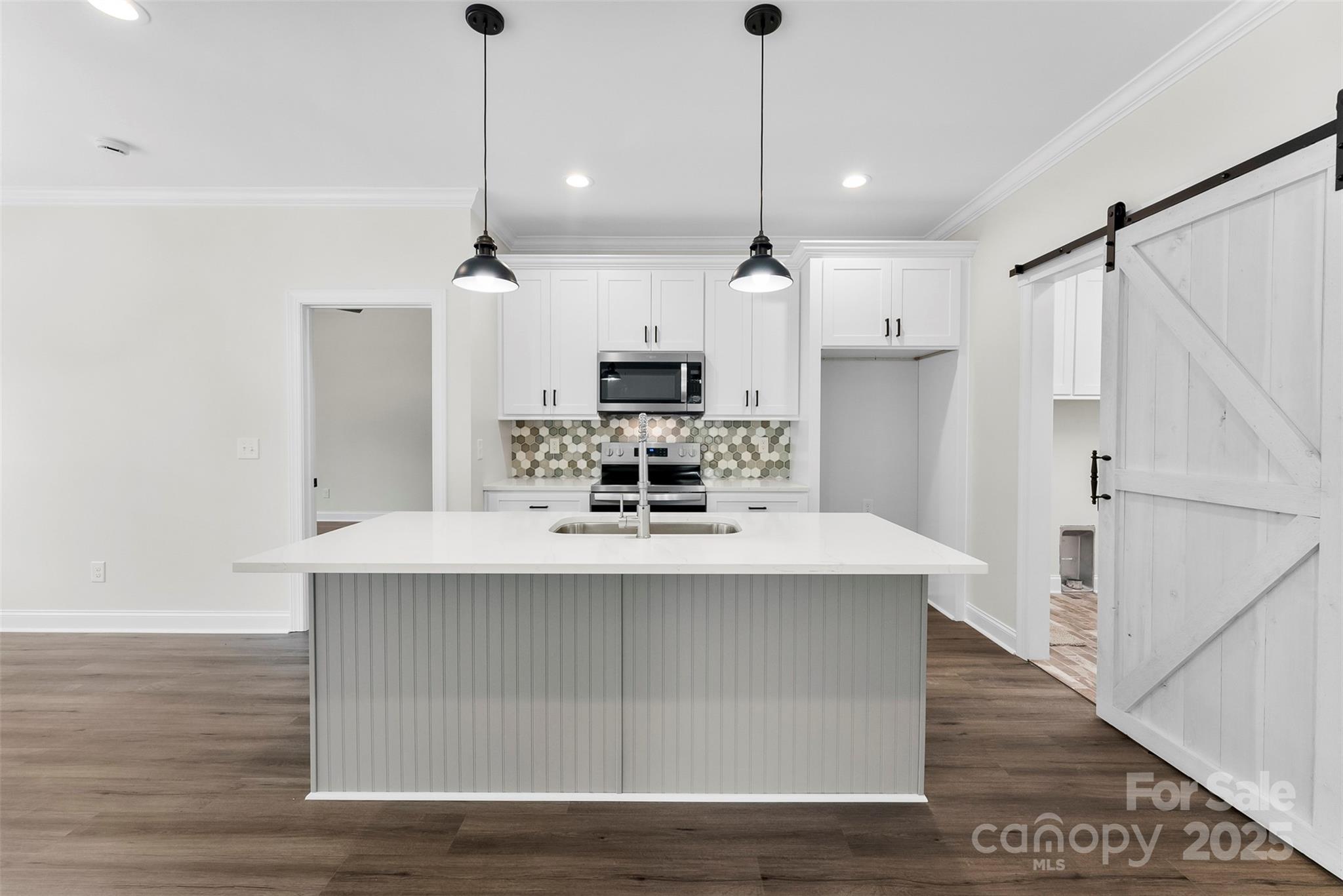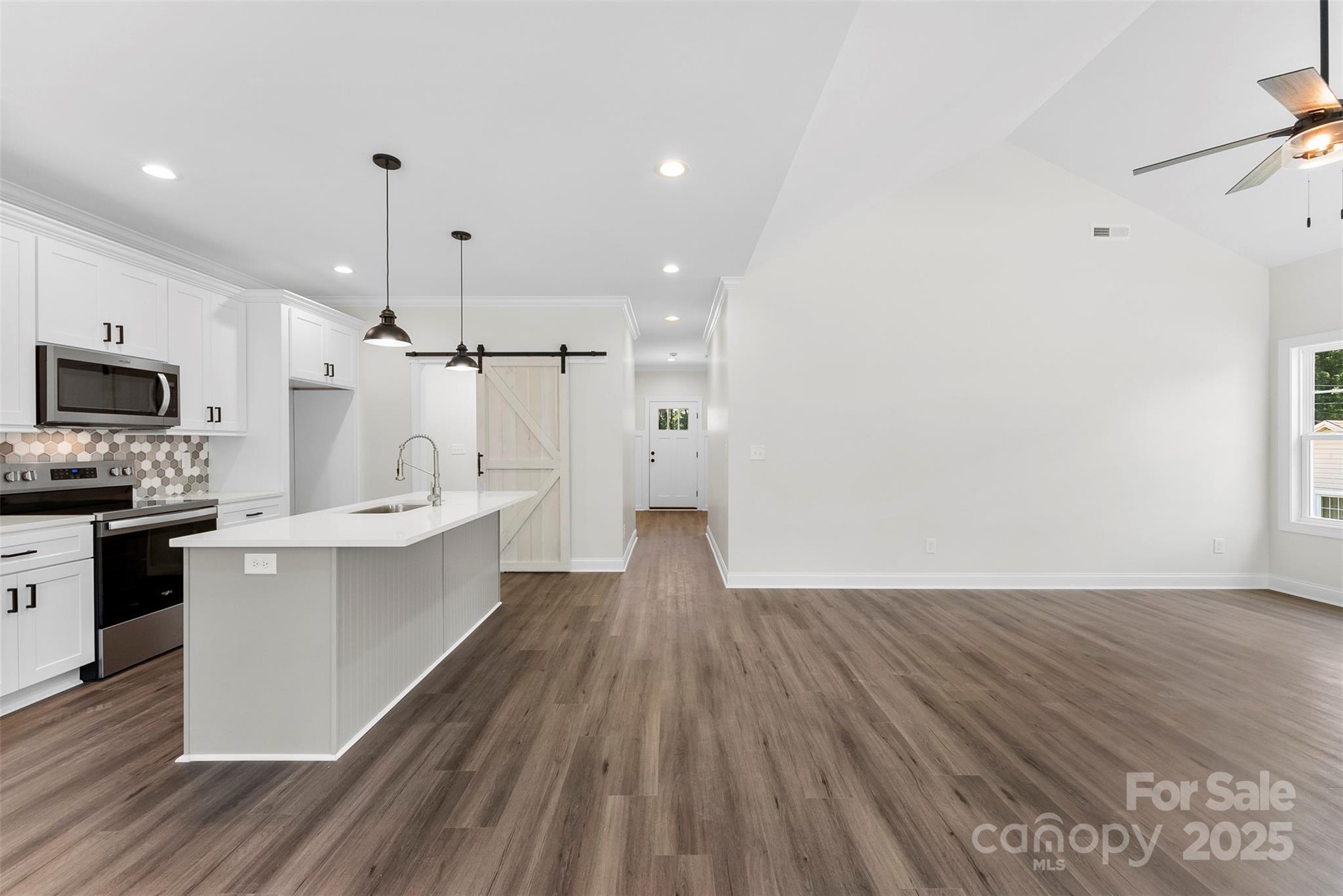 New Construction, with NO HOA, on a quiet street in South Gastonia! Split bedroom, open floor plan with semi custom finishes throughout. Primary Bedroom offers vaulted ceiling, LVP flooring, custom walk in tiled shower, dual vanity, water & linen closet, custom shelving in primary closet. Open to vaulted ceiling in living room, Kitchen features SS appliances, island, tile backsplash & Quartz countertops. Exterior features large backyard, covered back porch. Just 30 mins to CLT airport, minutes to SC.