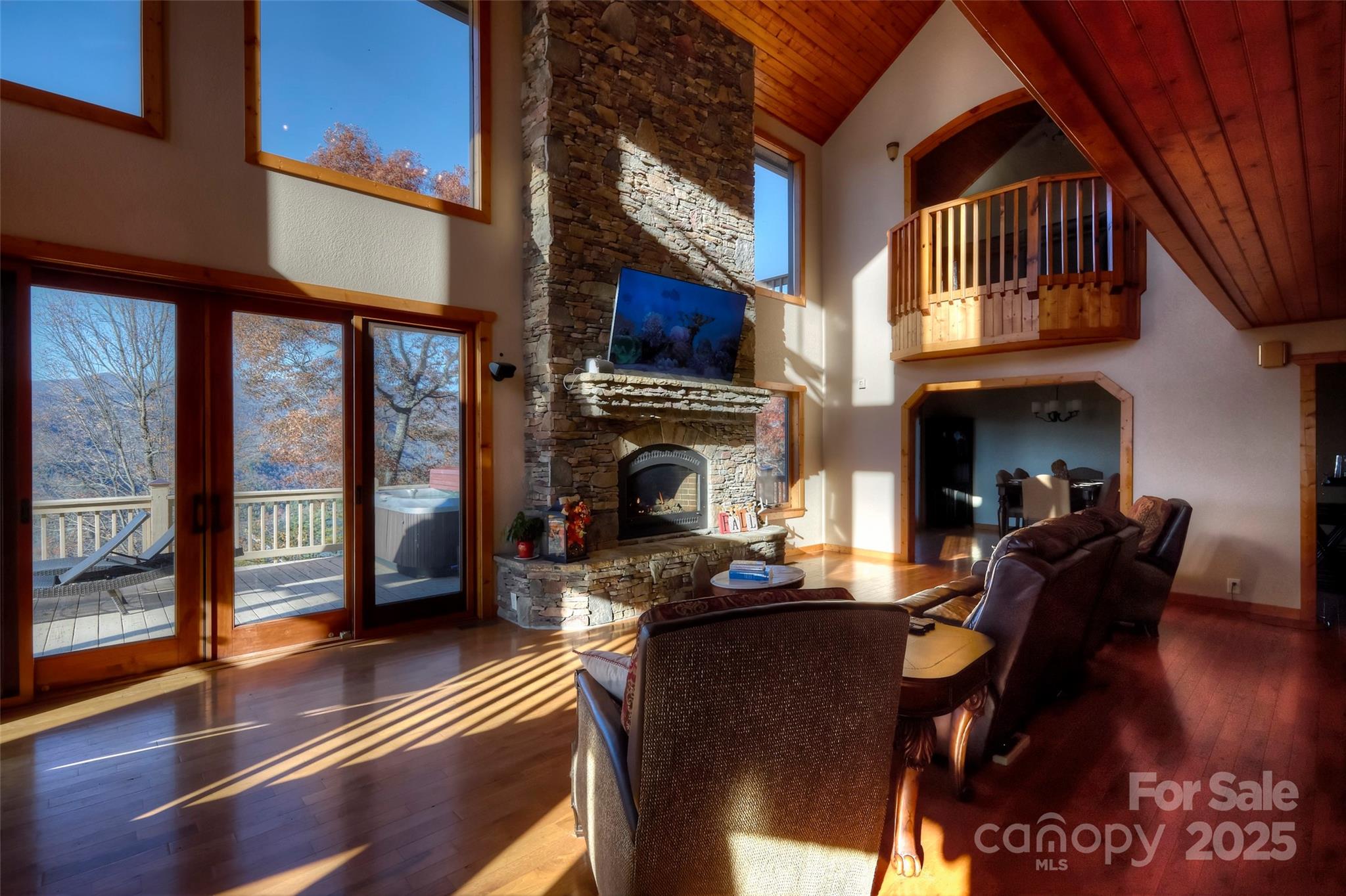 Welcome to Grand View Estates, where this custom-built residence captures breathtaking, long-range views stretching from the Snowbird Mountains into Tennessee. The two-story main living room sets the tone with soaring ceilings, a dramatic wall of windows, and an elegant fireplace that anchors the space with warmth and grandeur. The open, vaulted layout flows throughout the home, complemented by abundant storage and an executive master suite designed for comfort and space. On the lower level, an expansive additional great room with a stone fireplace offers an inviting setting for entertaining or relaxed evenings. A spacious two-car garage or workshop provides ample room for projects and gear. Recent upgrades—including a new roof and new kitchen appliances—bring peace of mind, while the hot tub, grill, and sauna add a touch of resort-style living. Outdoor living shines here as well, with generous deck and patio spaces that make the most of the warm season. The community offers trails, common areas, and pickleball courts, and the surrounding region is rich with opportunities for whitewater, hiking, fishing, and cycling.