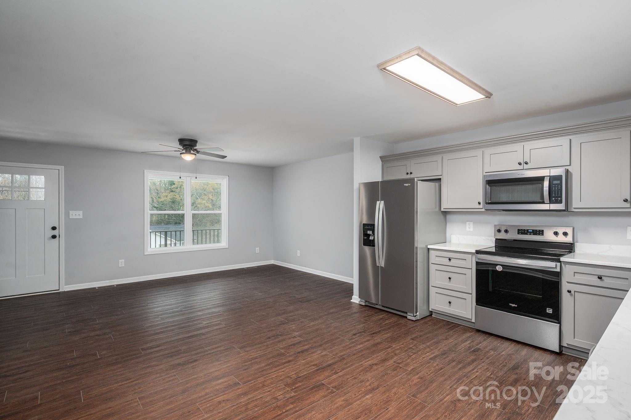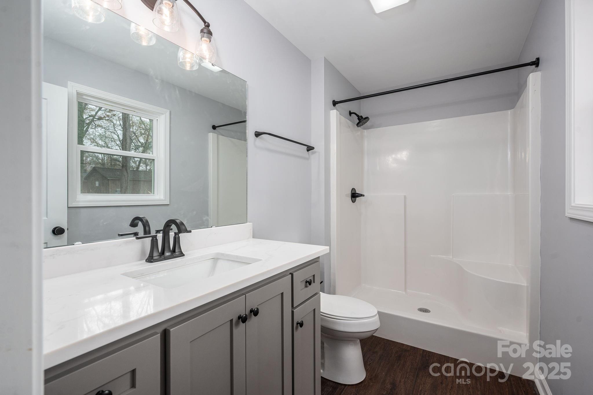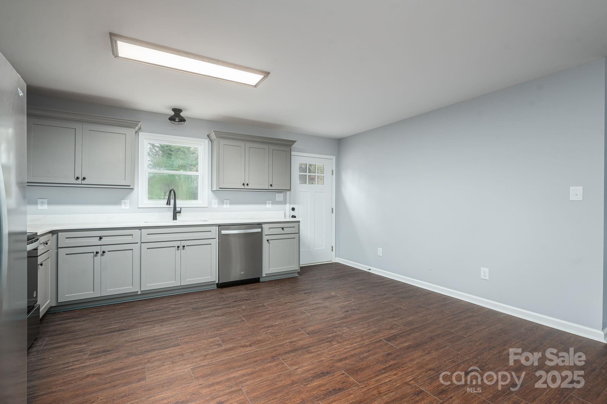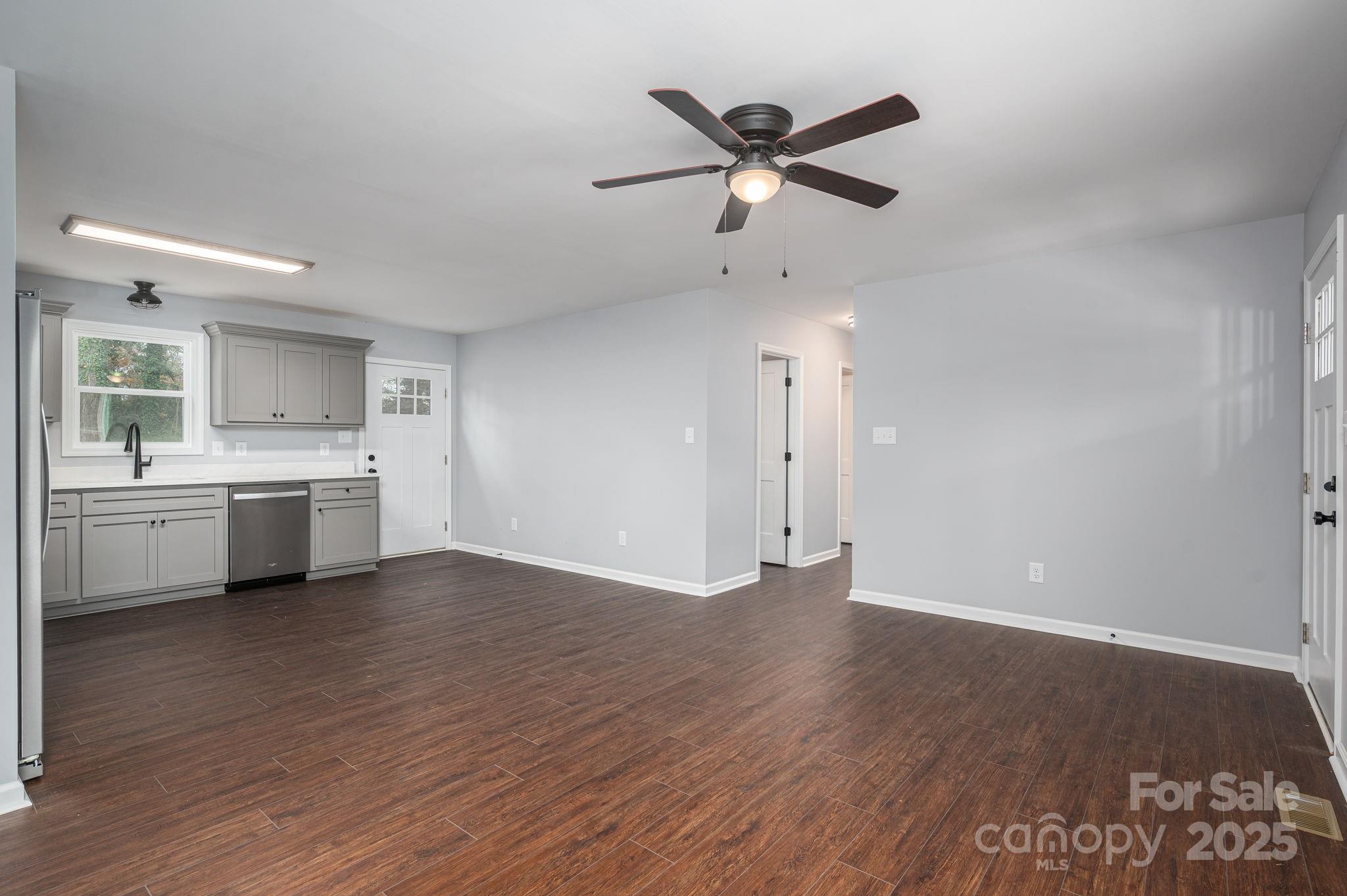 New Construction in downtown Lincolnton with a larger than average backyard! 3 bedrooms and 2 full baths with beautiful shaker cabinets, stainless steel appliances and an oversized driveway for off street parking. With the off street parking you have the option to enter naturally through your front door or utilize the concrete walkway to the back door that goes straight into the kitchen area. Don't let the square footage fool you this house feels bigger than it is and even includes a walk-in primary closet as well as deeper than average bedroom closets. As the white-washed era is ending this house graciously adds some color back to life with welcomed contrasts through darker LVP floors, color washed cabinetry that then gets complimented with the clean feeling of white counter tops. The laundry has its separate room off of the hall.