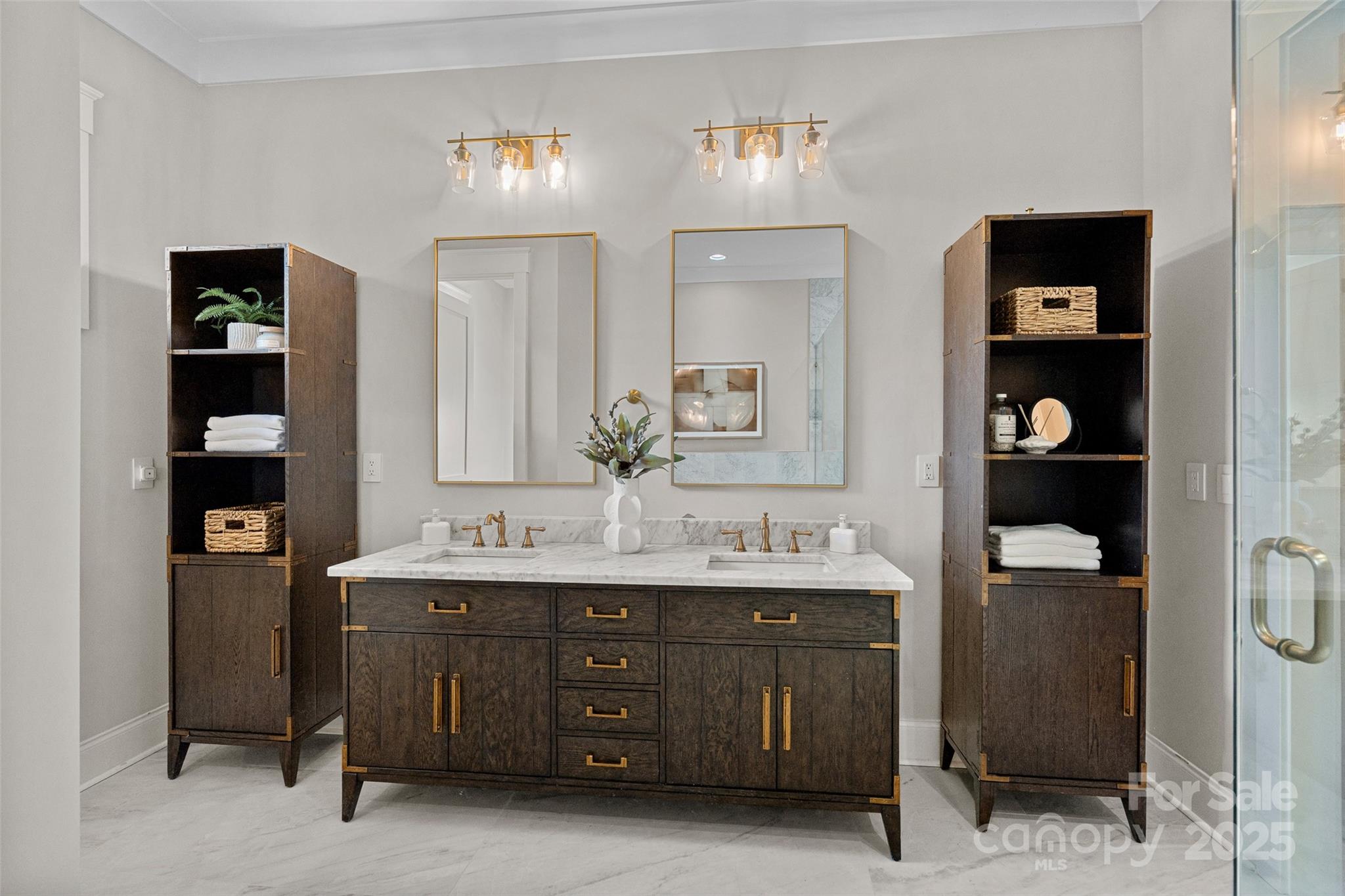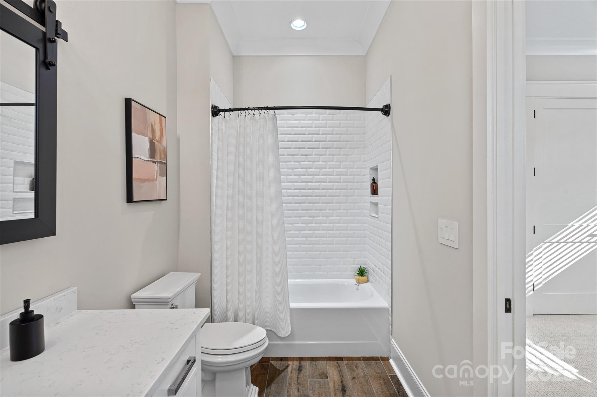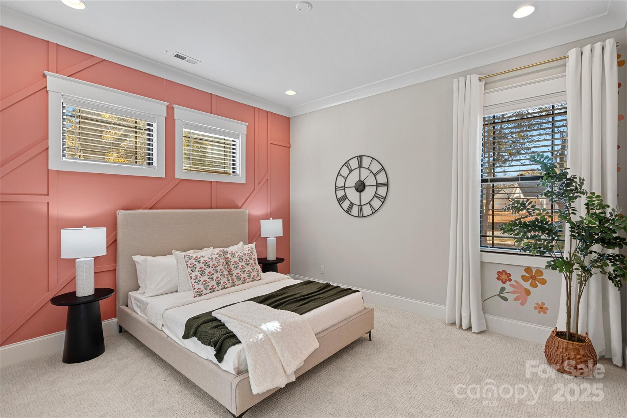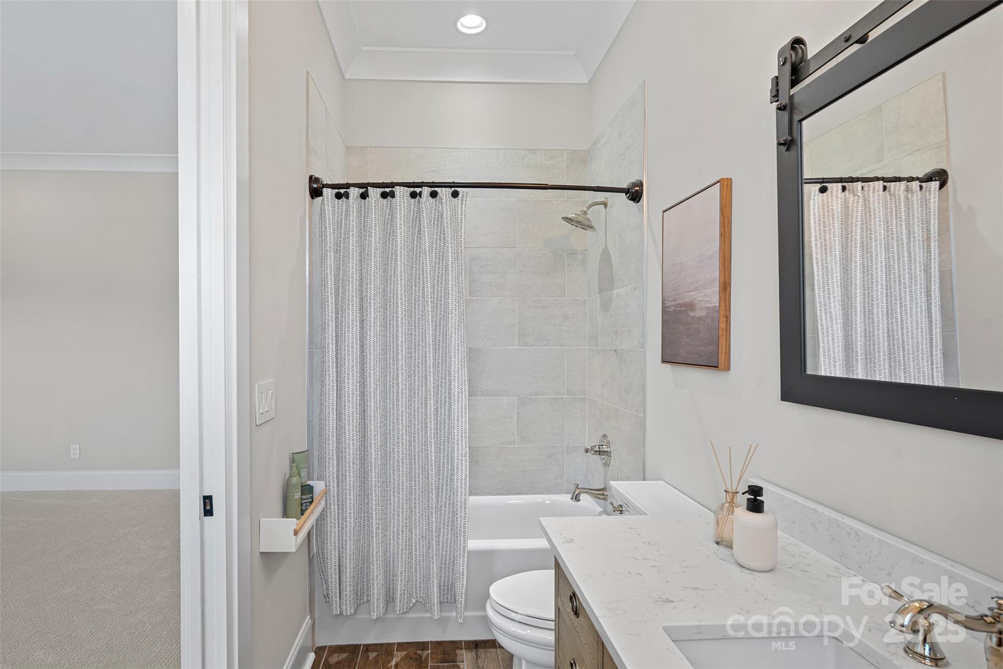 This meticulously crafted custom modern ranch blends elevated design, thoughtful one level living, and resort style outdoor amenities with impeccable craftsmanship and details throughout. Situated on over an acre of private, fenced grounds, the home offers exceptional attention to detail and a layout crafted for both comfort and entertaining. A welcoming covered front porch leads into a light filled interior highlighted by tall ceilings, exposed wood beams, and impressive trim work. The split bedroom layout provides privacy, while an executive office offers a quiet space for work or study. The primary owners retreat features oversized his and her closets and a spa inspired bath with soaking tub, tiled shower, and Restoration Hardware double vanity. Each ample sized secondary bedroom includes its own private ensuite bath. The gourmet chef’s kitchen showcases a large center island, 6 burner gas range, Café Collection appliances, and beautiful cabinetry, all opening to a spacious living area and sunny breakfast room. French sliders extend the living space to a covered patio with outdoor fireplace overlooking the modern heated pool and spa. A dedicated cabana bath provides convenient access from the pool terrace. The finished room above the oversized two car garage is ideal for a gym, flex space, or bonus room. The expansive fenced backyard offers generous room to enjoy the outdoors, with space for entertaining and recreation, pets, or gardening alongside the pool. With privacy, luxury finishes, direct access to the greenway, and close proximity to Davidson, Cornelius, and Northcross conveniences, this home delivers refined living in a premier quiet setting.