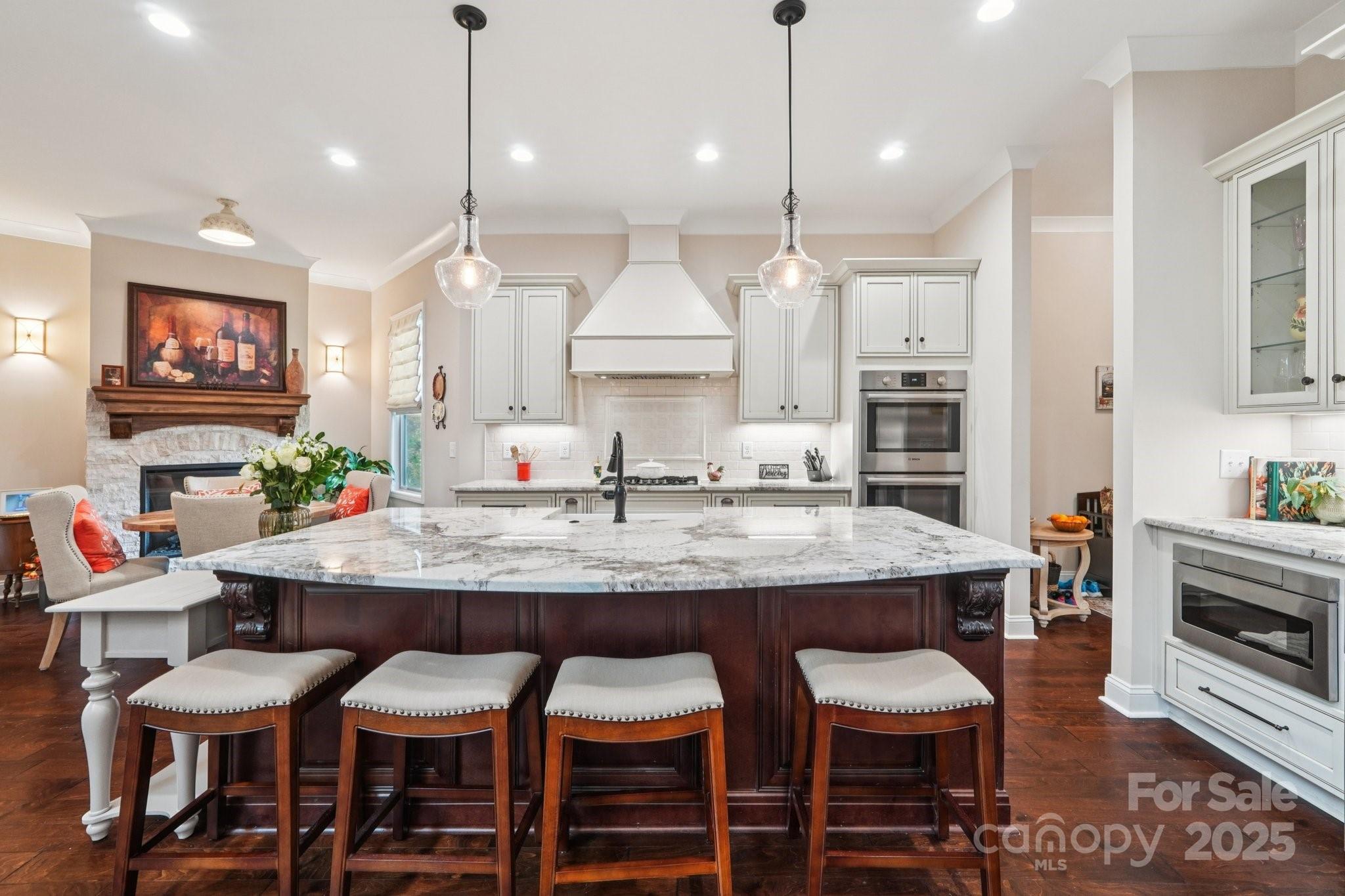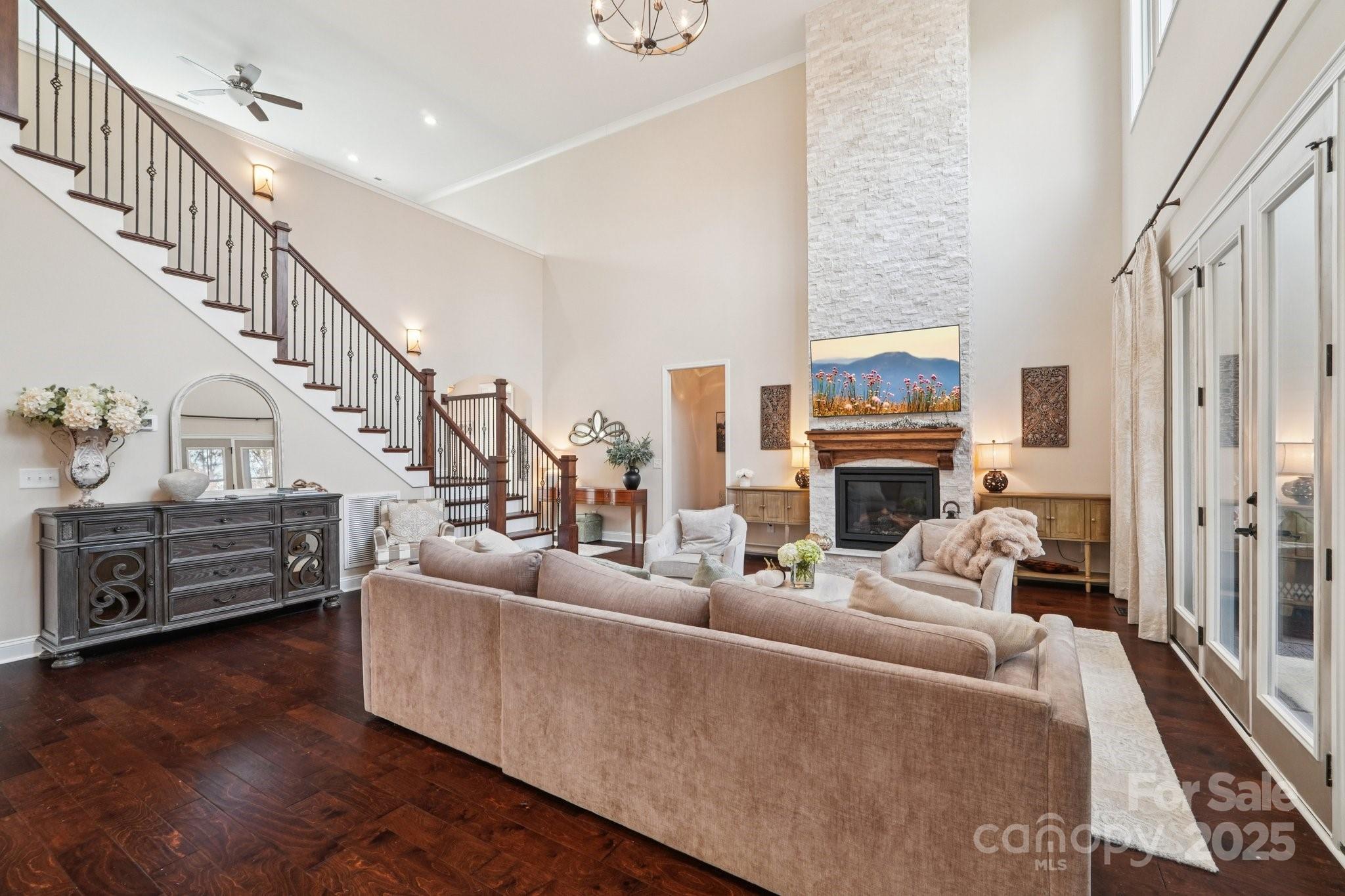 Welcome to refined living in the prestigious gated community of Irongate in Clover. From the moment you step through the grand double doors, this custom-built masterpiece invites you in with soaring ceilings, rich architectural details, and an effortless sense of elegance. The great room makes an unforgettable first impression—its dramatic ceiling height, statement fireplace, and expansive windows create a space that feels both luxurious and inviting. Seamlessly connected, the designer kitchen showcases a curated blend of rich colors, upscale finishes, and exceptional craftsmanship. With an open flow from the great room to the kitchen, dining area, and formal dining room, this home was thoughtfully created for both intimate gatherings and unforgettable celebrations. A spacious walk-in pantry/laundry room offers abundant storage and functionality, perfectly complementing the home’s high-end design. Just beyond the main living areas, a serene enclosed patio provides the ideal spot for morning coffee while overlooking peaceful views of mature trees and the tranquil pond. The main-level primary suite is a private retreat featuring elegant flooring, custom ceiling details, and a spa-inspired en-suite bath that feels like a personal sanctuary. At the front of the home, a beautifully appointed office or flex space—paired with an upscale half bath—provides comfort and convenience for guests or remote work. Up the gorgeous staircase, the second level unfolds into a spacious open loft, perfect for movie nights or relaxing evenings at home. A generous bonus room offers endless possibilities—media room, hobby space, gym, or playroom. Two additional bedrooms share a stylish Jack-and-Jill bath, completing the thoughtfully designed upper level. Nestled on a quiet homesite with calming natural views, this residence offers an unmatched blend of luxury, comfort, and tranquility. Don’t miss your opportunity to experience this private paradise in Irongate.