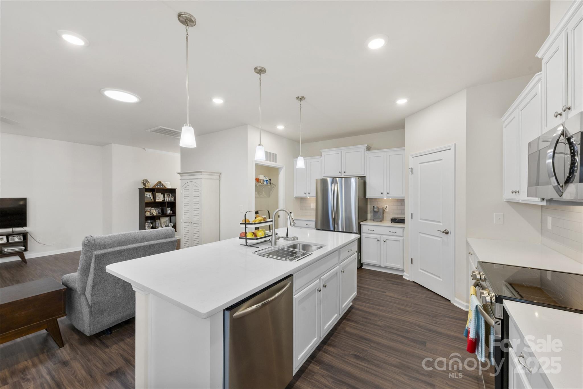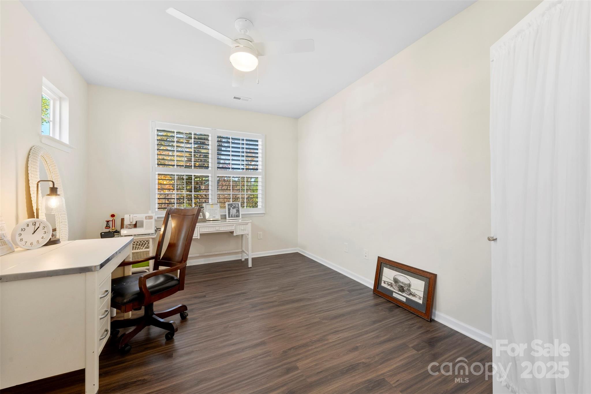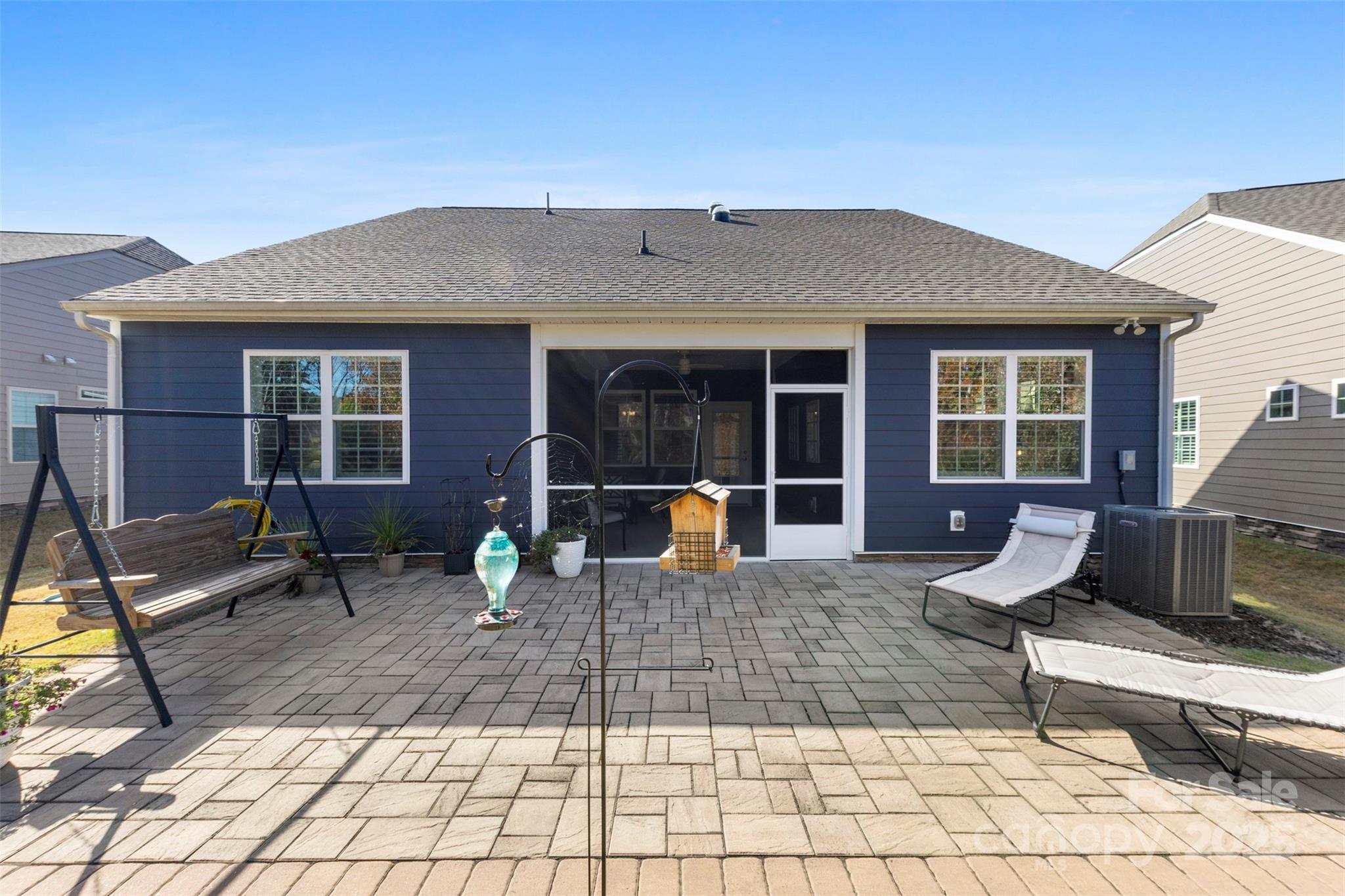 Welcome to Imagery at Mountain Island Lake, a premier 55+ active-adult community offering low-maintenance living and an exceptional lineup of resort-style amenities. This beautifully appointed one-story home is ideally situated in one of the most sought-after lake communities in the Charlotte area. Designed with comfort and functionality in mind, this 2-bedroom, 2-bath home with an office/flex room features a spacious open floorplan that seamlessly connects the living, dining, and kitchen areas—perfect for both everyday living and entertaining. The kitchen showcases quartz countertops, crisp white cabinetry, stainless steel appliances, and a large island with breakfast seating, along with convenient nooks ideal for a coffee or beverage station. A split-bedroom layout offers privacy, highlighted by charming arched walkways leading to each suite. The French-door office provides a bright, quiet space for work or hobbies. The home is filled with natural light and enhanced by plantation shutters throughout for added privacy. Durable luxury vinyl plank flooring spans the main living spaces, with tile flooring in all baths. The serene primary suite features a spacious bath with dual vanities and quartz countertops. Step through the main living area onto a large screened-in porch, then out to an extended paver patio overlooking the community’s wooded walking trails—a peaceful and private outdoor retreat. The generous laundry room provides excellent flexibility, with space for a utility sink, folding station, or extra storage. Living in Imagery means enjoying an unparalleled suite of amenities, including a clubhouse, fitness center, heated resort-style pool (open May–October), lighted pickleball and tennis courts, walking trails, dog park, lake access, kayak launch and storage, plus a network of creative cabins featuring a library, pottery studio, art studios, sewing cabin, and celebration spaces. A full-time Lifestyle Director curates a robust calendar of events, clubs, and activities, creating a vibrant and social lakeside community. A future community dock is also planned nearby. This home offers the ideal blend of comfort, privacy, and active-adult living in a truly exceptional lakefront neighborhood.
