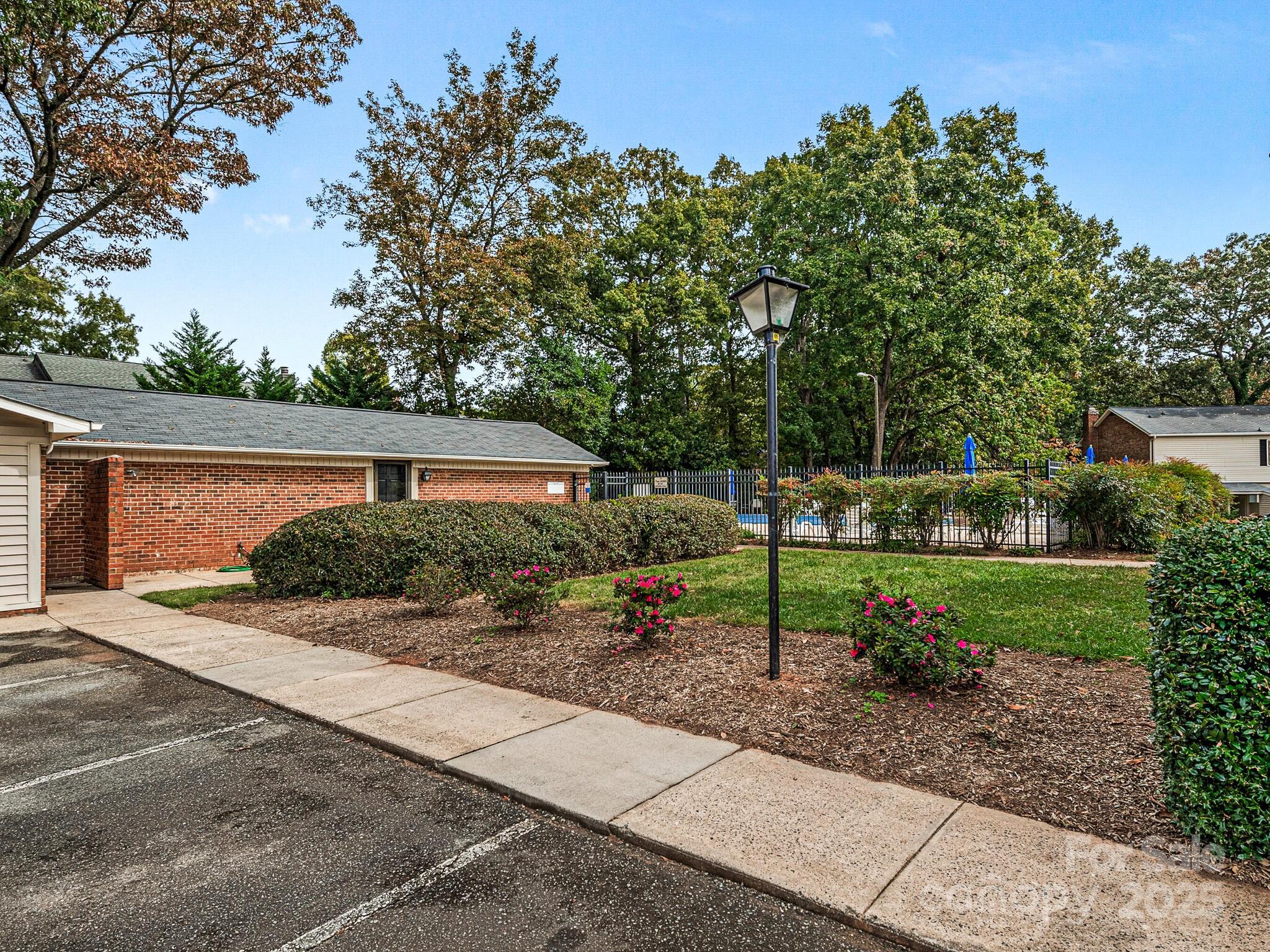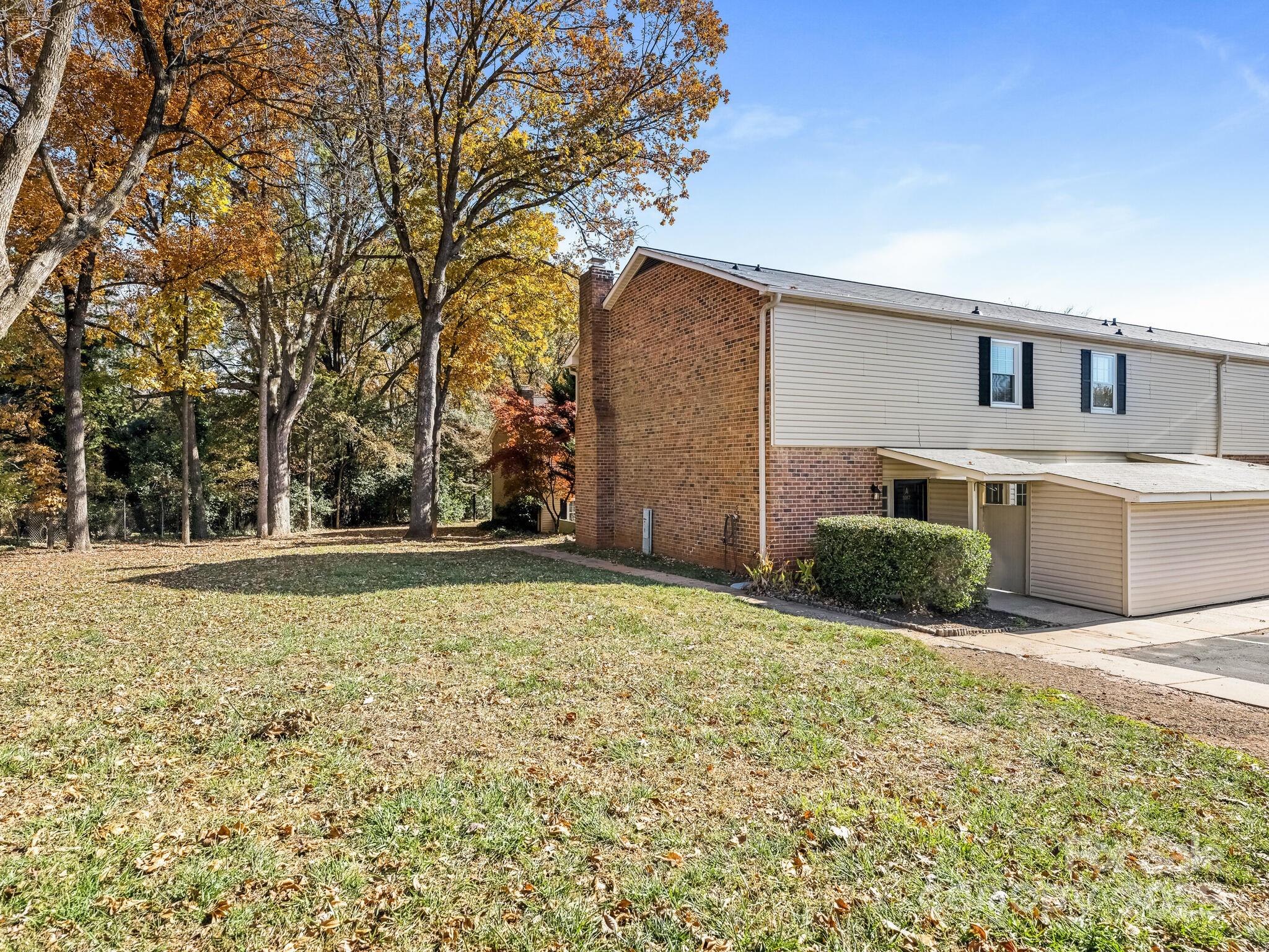 Beautiful move-in-ready SouthPark area end-unit lives like a townhome! Step inside to luxury plank flooring that flows throughout the main level. The light-filled living room features built-in shelving and an electric fireplace — perfect for cozy evenings. Dining room seamlessly connects to a gourmet kitchen boasting granite counters, stainless steel appliances, an abundance of cabinetry, and a large pantry for making your favorite meals. The sunny breakfast nook opens directly to the private patio — ideal for morning coffee and catching up on the news. A stylish powder room, convenient drop-zone entry, and stairwell laundry complete the main floor. Upstairs, three generously sized bedrooms all include ceiling fans for year-round comfort. The oversized primary suite easily fits a king bed and offers a private en-suite bath plus great closet space. The two additional bedrooms share a clean, bright hall bath and enjoy large windows that let in plenty of natural light. A huge walk-in storage closet at the top of the stairs, combined with an exclusive 6×13 lockable outdoor storage unit, gives you more storage than most single-family homes in the area. Two large patios extend your living space outdoors with plenty of room for quiet morning coffee, grilling, or umbrella-shaded dining with your favorite crowd of friends. Dues cover water, sewer, trash, landscaping, pool maintenance, exterior upkeep, and roof. Nearby Charlotte parks and expanding greenway trail network provide endless options to run, bike, walk and relax. Great local shops, top-rated schools, restaurants, bars, and services perfectly complement your vibrant urban Charlotte lifestyle — just 4 miles to Uptown and 12 miles to CLT International Airport. This home and location have so much to offer. Come see it for yourself today!