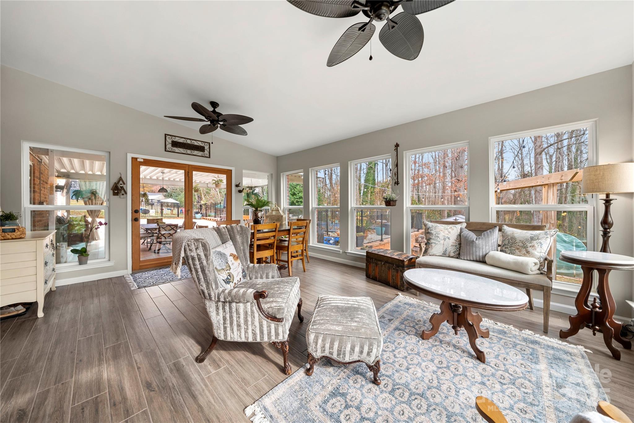 2010 Monticello Drive, located in Monticello Woods, boasts hardwood floors, custom cabinetry, quartz countertops, a walk out lower level with tile floors, in-ground pool, and fenced yards. With more than .42 acres, this property is just what you are looking for. There are 3 bedrooms and 2 bathrooms on the main floor along with a large living room, kitchen and dining room. The lower level includes a great room, bedroom, full bathroom, den/flex room and huge sunroom with walkout access to the carport, pool and rear yard. Kitchen updates include full overlay cabinetry with quartz countertops, stainless steel, kitchenaid appliances, reclaimed brick flooring, large crown molding and new pantry shelving. The solid surface floors on both levels provide ease of maintenance as well as ample room to entertain. With exterior updates in the past five years including french drains, rv parking, pool deck, pool liner, pool pump and components, increased lot size, fenced play yard and pool area; this brick ranch with a walkout lower level is ready for you to call it home. Located off Redbud Drive, this home is minutes from Hwy 74 & 85 and a short drive to 485. Survey, Floor plan, upgrades and disclosures available in mls media and by request. Make an appointment to see 2010 Monticello Drive today.