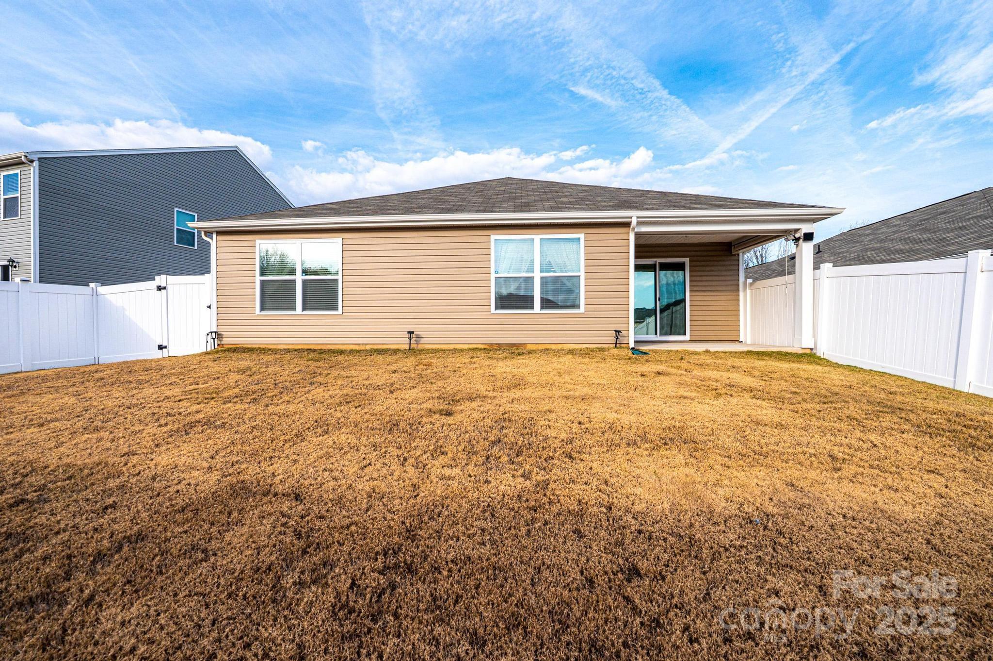 Move-in ready DR Horton home with 1,811 sq ft, all on one level, featuring a fully fenced vinyl backyard, covered patio, and an open-concept layout. The kitchen includes granite countertops, tile backsplash, and a spacious island that flows directly into the living and dining areas. The home offers 4 bedrooms, 2 full bathrooms, and a private master suite set apart from the secondary bedrooms. Upgrades include a screen door on both the front and garage entries, plus an epoxy-coated garage floor. Located on the edge of the Town of Maiden, where you’ll find live music and community events throughout the year. The neighborhood provides a community pool and a small playground, with an HOA of $275 per quarter. A clean, low-maintenance home in a growing area—ideal for anyone wanting convenience, comfort, and modern living.