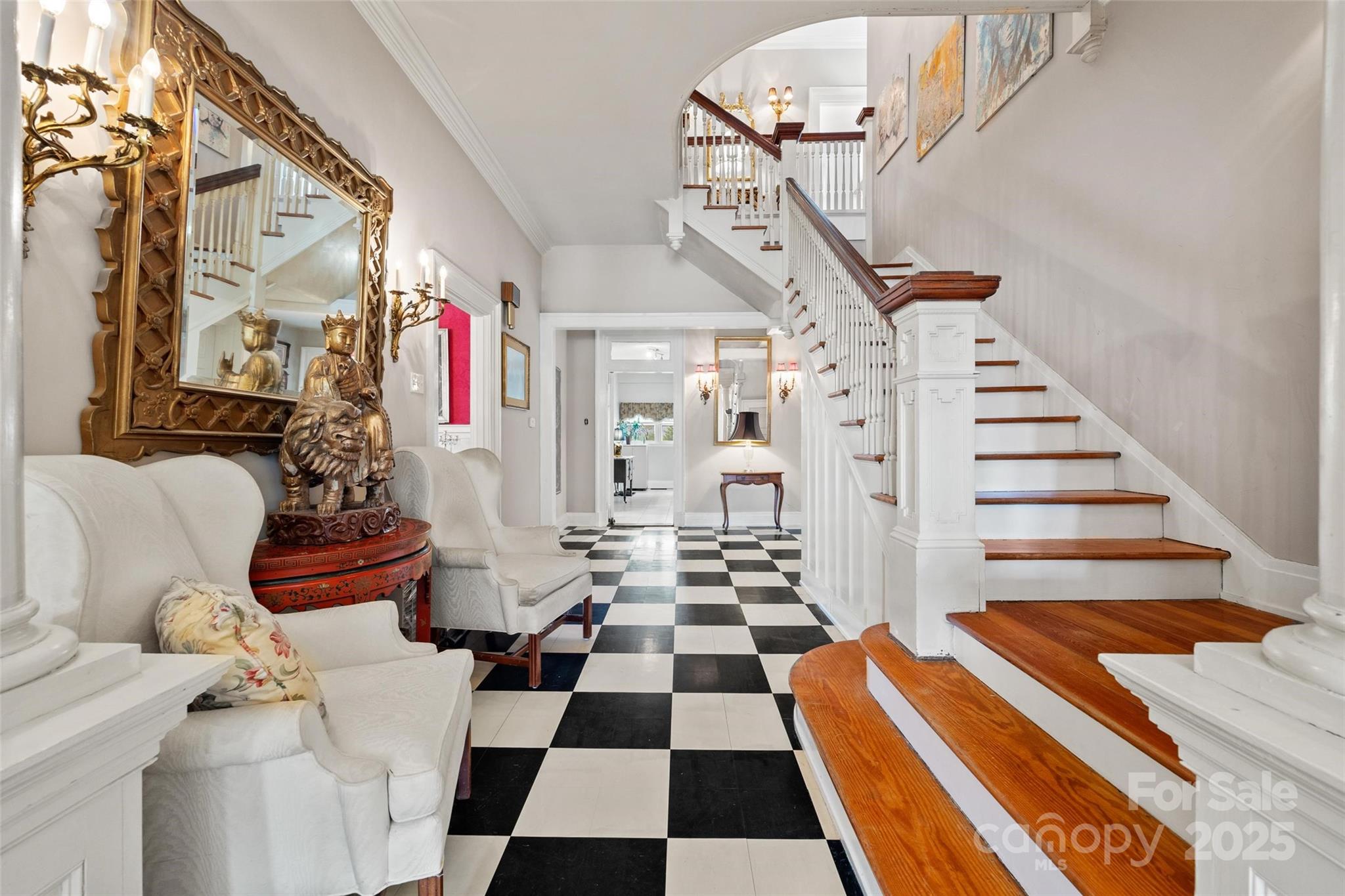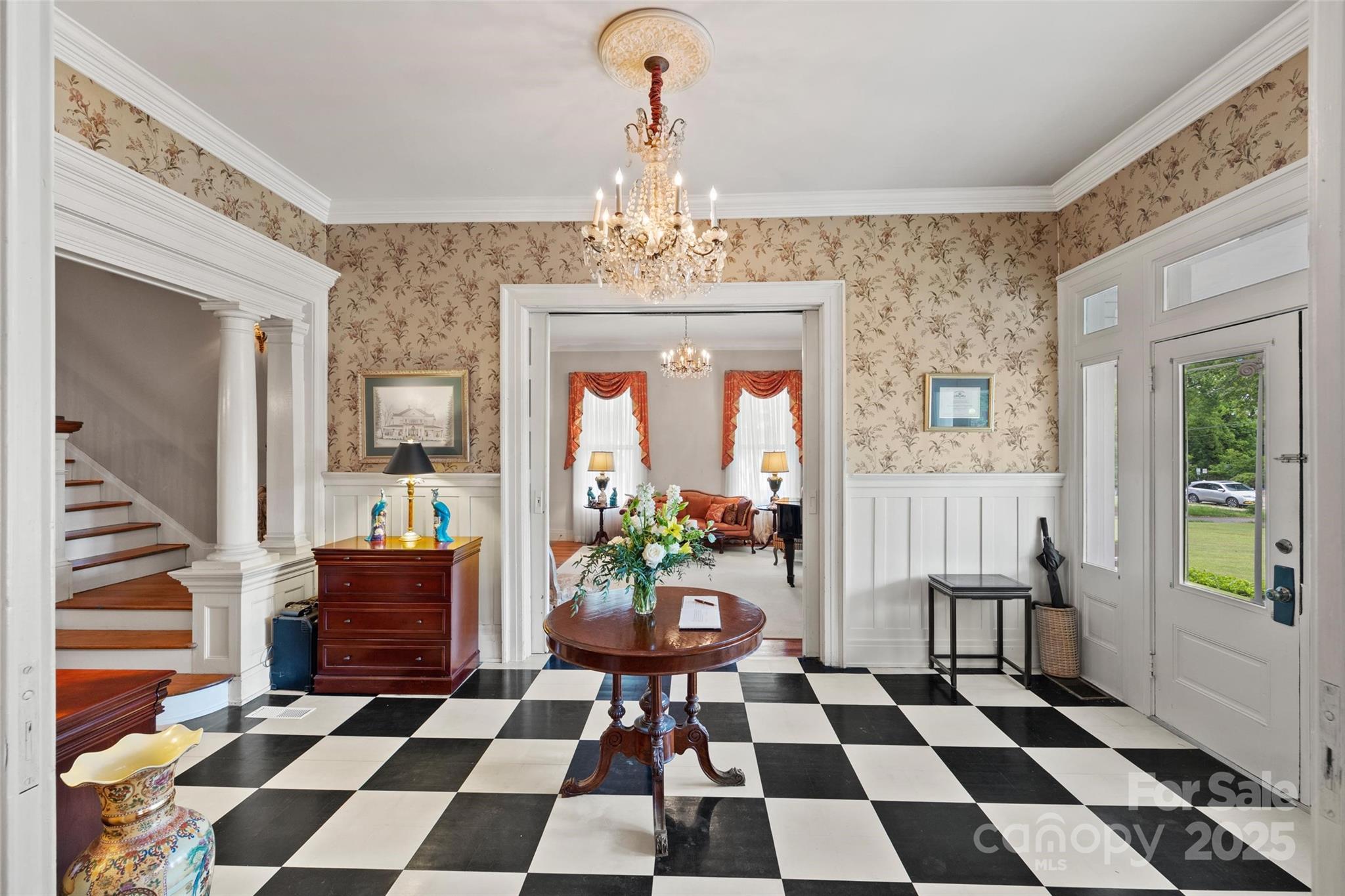 This Neo-Classical historic gem is on The National Register of Historic Places. Enjoy sitting on the wraparound porch with a view of the exquisite landscaping and park across the street. This home has been meticulously maintained while keeping its historic integrity intact. Updated kitchen and butler's pantry with granite countertops, a large island, and a large gas range. Plenty of space for entertaining, with two formal rooms and a large dining room. Upstairs has four bedrooms, two of which are primary suites. Enjoy the conversation in the hall upstairs, leading to the upper balcony. At the end of the hall is a door leading to the staircase to the attic, which has ample storage. Outside you will find a large patio leading to the inground pool next to a large grass area. This large lot has so much privacy and a decent size vegetable garden. The basement has been encapsulated, and a sump pump with a drain has been installed along with a dehumidifier.