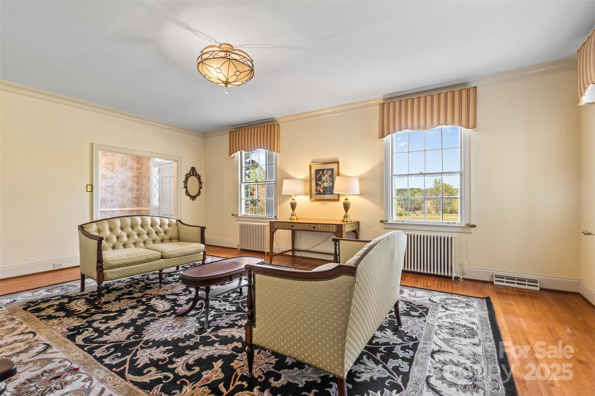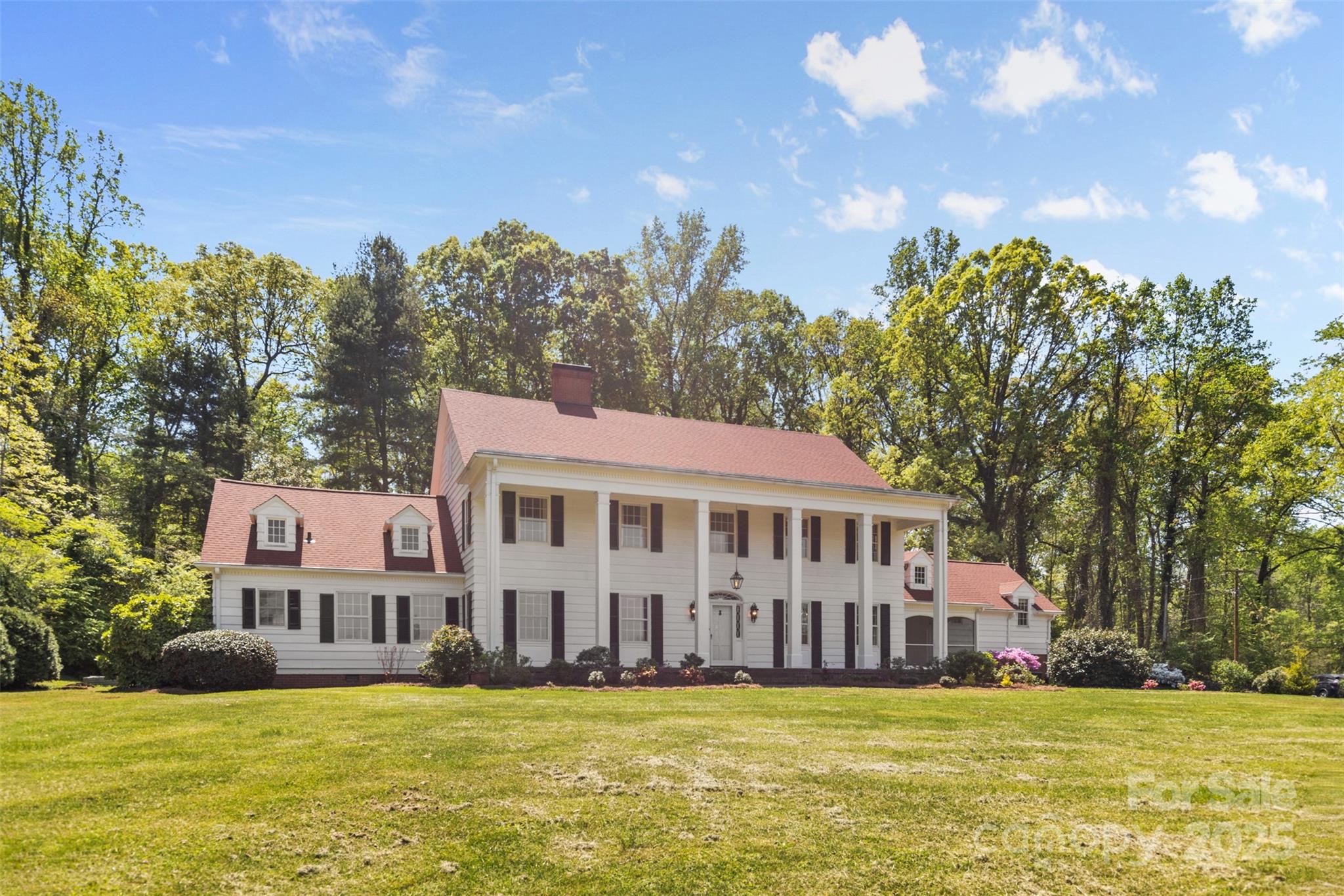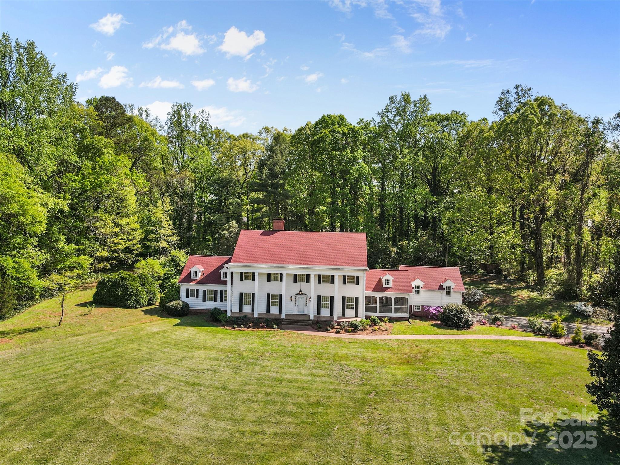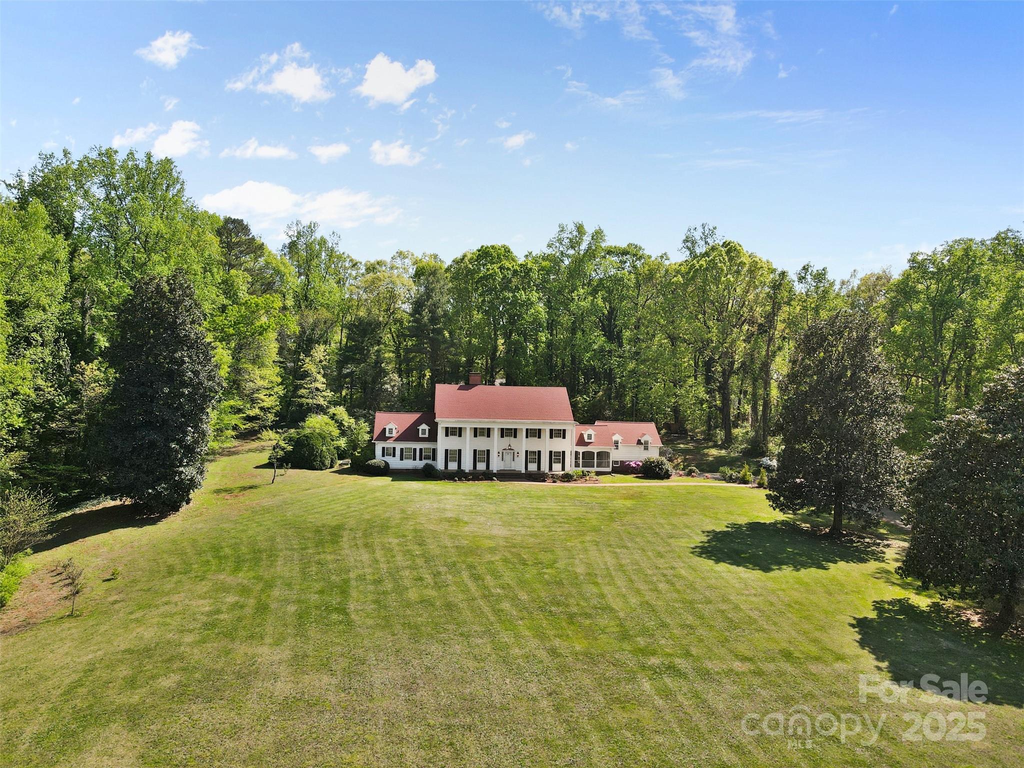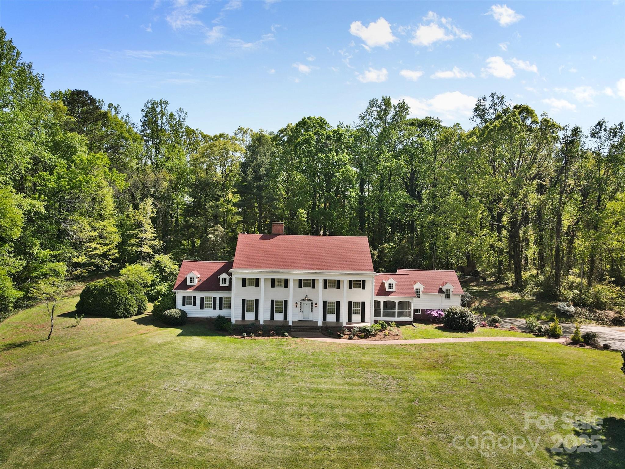 Step into Southern charm with this stunning 6BR/5.5BA Colonial estate nestled on 10 private acres in the desirable Lincolnton Country Club area—just a short drive from Charlotte and Hickory. This beautifully updated home blends classic character with modern upgrades, featuring a spacious screened porch, chef’s kitchen w/ chestnut cabinetry, exposed beams, & granite countertops, plus formal living & dining rooms, a library-style family room & pool room. Dual master baths with sitting area, refinished hardwood floors, oversized rooms, fresh paint, and stylish lighting throughout add to the appeal. A separate 2BR/1BA in-law suite includes a charming clawfoot tub. Ample storage in the basement, attic, & double garage. Beautiful, solid cypress siding, with room to add a pool or host outdoor events.This executive estate sits across from the original site of the historic Lithia Inn—offering timeless beauty, privacy, & incredible potential. Assumable Mortgage Available!