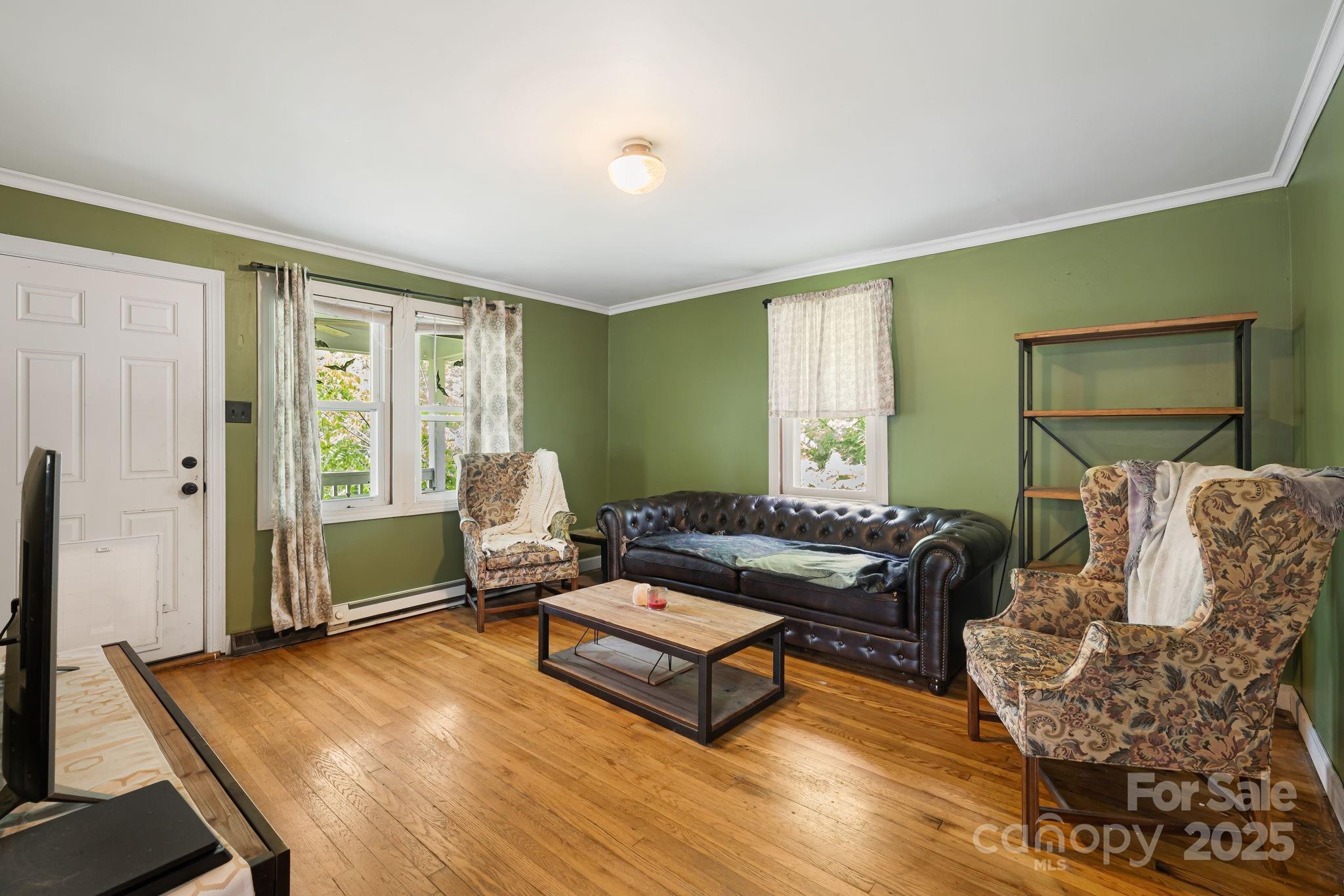 This charming, 2 bedroom, 2 bath 1940's home is situated on a beautiful lot teeming with plant life in a great Fairview location, just minutes from Asheville! This home offers a great combination of vintage charm and modern conveniences such as: an open eat-in kitchen, a welcoming primary suite with a picture window and natural light, and a laundry room conveniently located on the main floor. A basement and detached shed provide additional storage. Come relax on the covered front patio and back porch. Generac PWRcell solar system installed in 2021.
