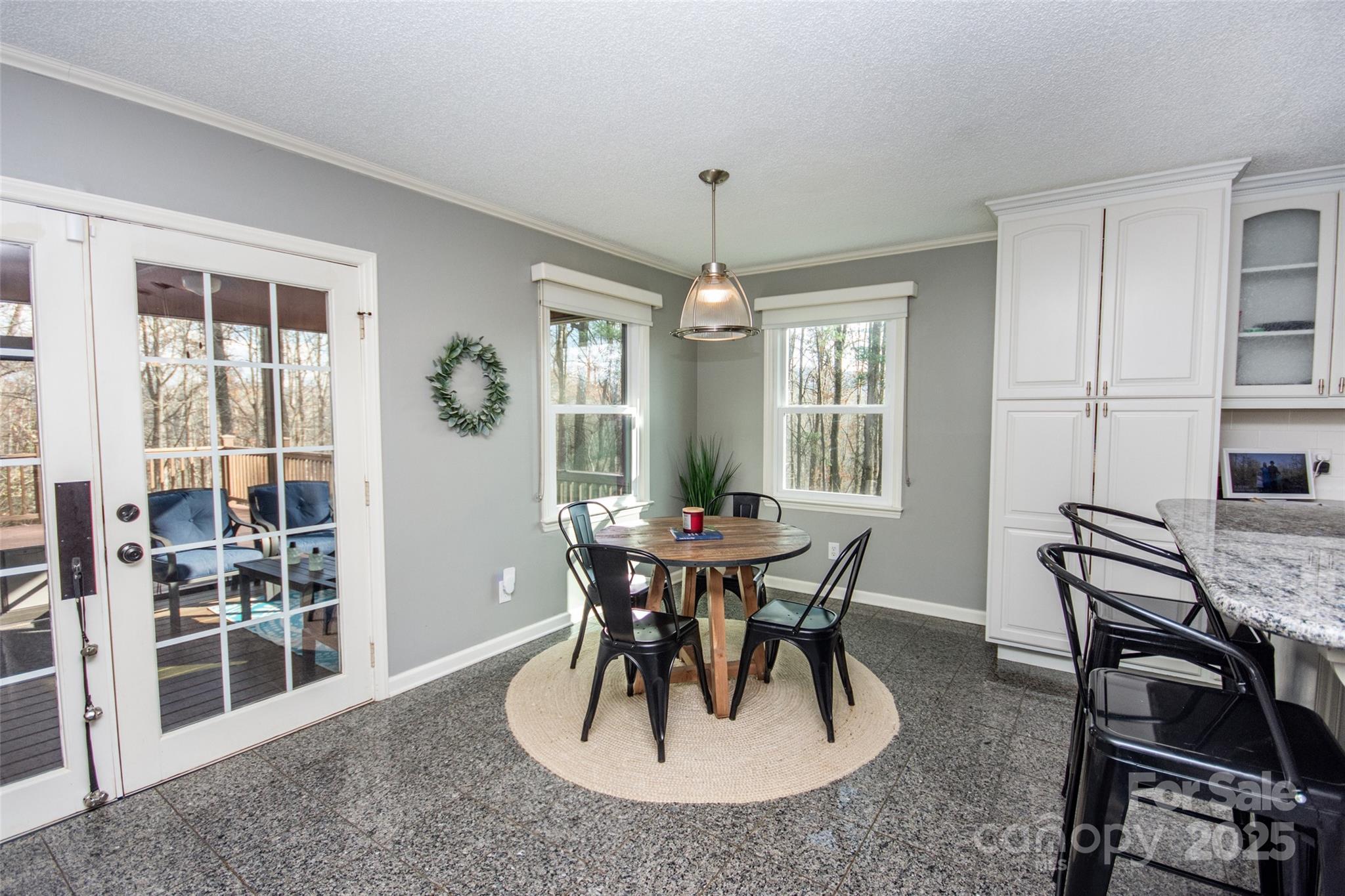 Stunning home in Woodfield Estates with the more private location at a cul de sac! This home offers so much! Entering into an inviting foyer there is an office on the left and a formal living room on the right which is currently also used as a home office. The family room is very relaxing with lots of space, a stone fireplace that has gas logs, and opens into a spacious dining room that has two windows for plenty of daylight. The expansive kitchen offers lots of cabinet space as well as a large island with breakfast bar as well as breakfast area. Stainless steel appliances stay and beautiful granite providing lots of counter space. These rooms are so inviting and great for entertaining! Oversized 2 car garage with shelving leads into a side hall with laundry/mud room, then half bath and then leads to kitchen on left & back to foyer on right. Upstairs offer a massive primary suite along with 4 additional bedrooms and 2 additional baths! Primary bedroom has space for all of the furniture you would like, very spacious walk in closet, and the bath has double vanity, large soaking tub & beautiful tiled walk in shower. The basement offers even more with huge rec area, den, bonus room/storage room, exercise room, utility, full bath & a 2nd kitchen with exterior door. This has lots of possibilities including could be a 2nd living quarters! Beautiful setting & fenced back yard with nothing but forest off of the back. Private & sitting on 2+ acres! Community pool available!