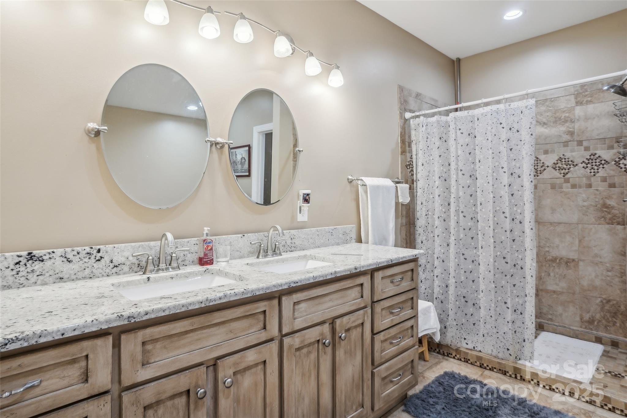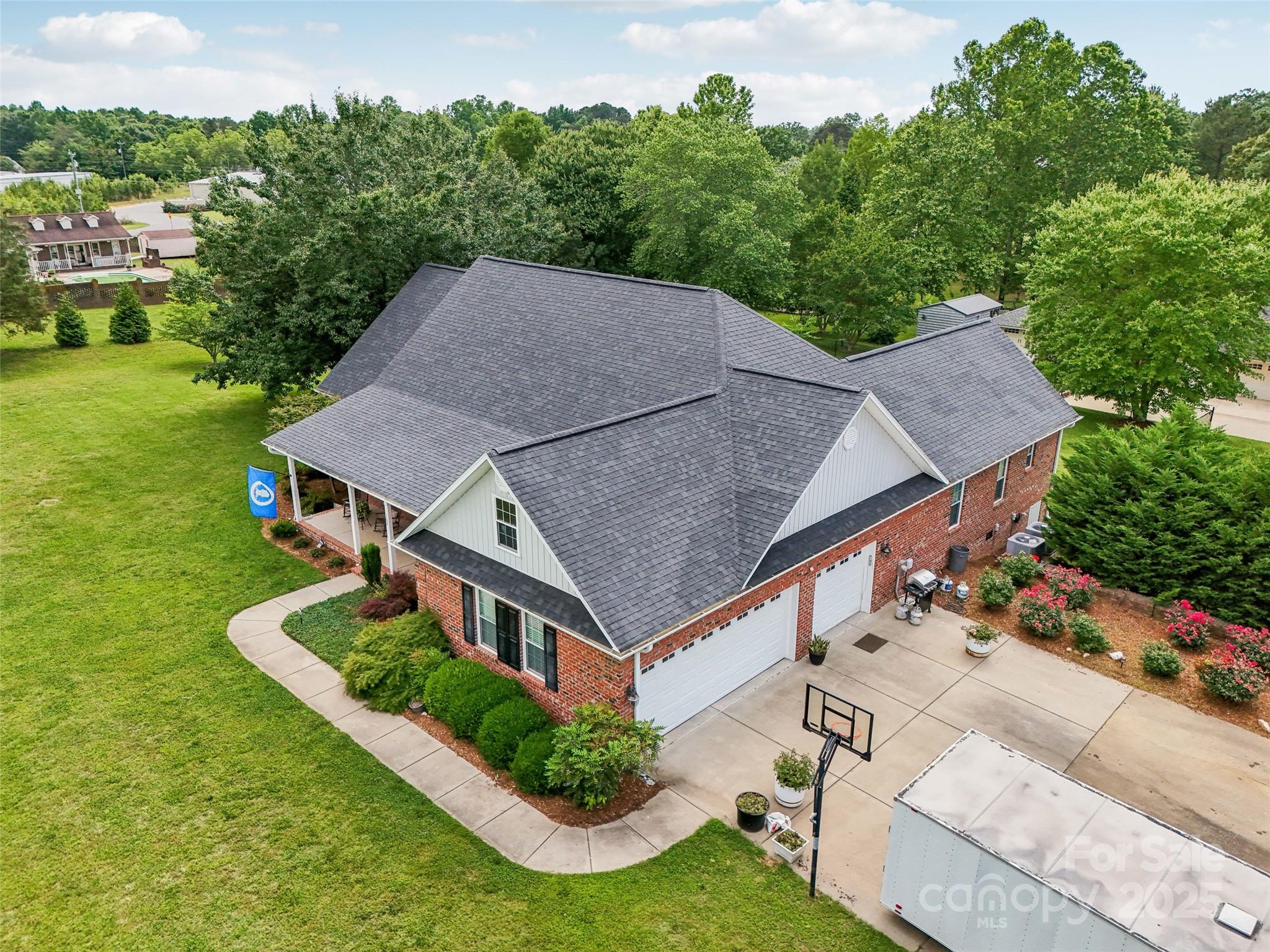 5 MINUTES FROM LAKE, 35 MINUTES FROM CLT AIRPORT, 10 MINUTES FROM CASINO! This 3 bed, 4.5 bath, bonus room, 3 car garage, ample additional parking, 1.18 acre lot residence offers 3,832 sq ft of living/garage space. Enjoy a split bed floor plan ensuring privacy w/ each bedroom featuring its own full bathroom and walk-in closet. Real cherry hardwood floors throughout complemented by tile in the bathrooms. The chef's kitchen boasts granite countertops, soft-close drawers and movable island all custom built while a versatile bonus room includes a full bathroom and closet, ideal for guests, office, entertaining. There are 9-ft ceilings with vaulted in living room and kitchen. Dual HVAC systems ensure comfort on both levels, oversized gutters and 30-year shingles provide durability. Two working wells installed if irrigation is wanted but county water to the home. Septic system is in front yard strategically for future pool. Ample attic storage and customization potential. Home was built in 2016 with all Grade A material including but not limited to all A boards used to build and double insulation on the exterior lower level walls. Home uses county water and bill is less than $16 per month but also has ability to hook up to two additional wells on property. Duke Energy for power and bill ranges about $125 monthly. The washer, dryer, and security cameras do not convey. Recessed lighting throughout, Building in back does convey, Blinds throughout, so much storage in attic and it could be finished if chosen, the garage has height to add a lift if needed. Home is priced over $50,000 UNDER private appraisal value. This home is super convenient to shopping, grocery, theatre, parks, in both NC and SC. No restrictions if you want to park your RV or your boat.