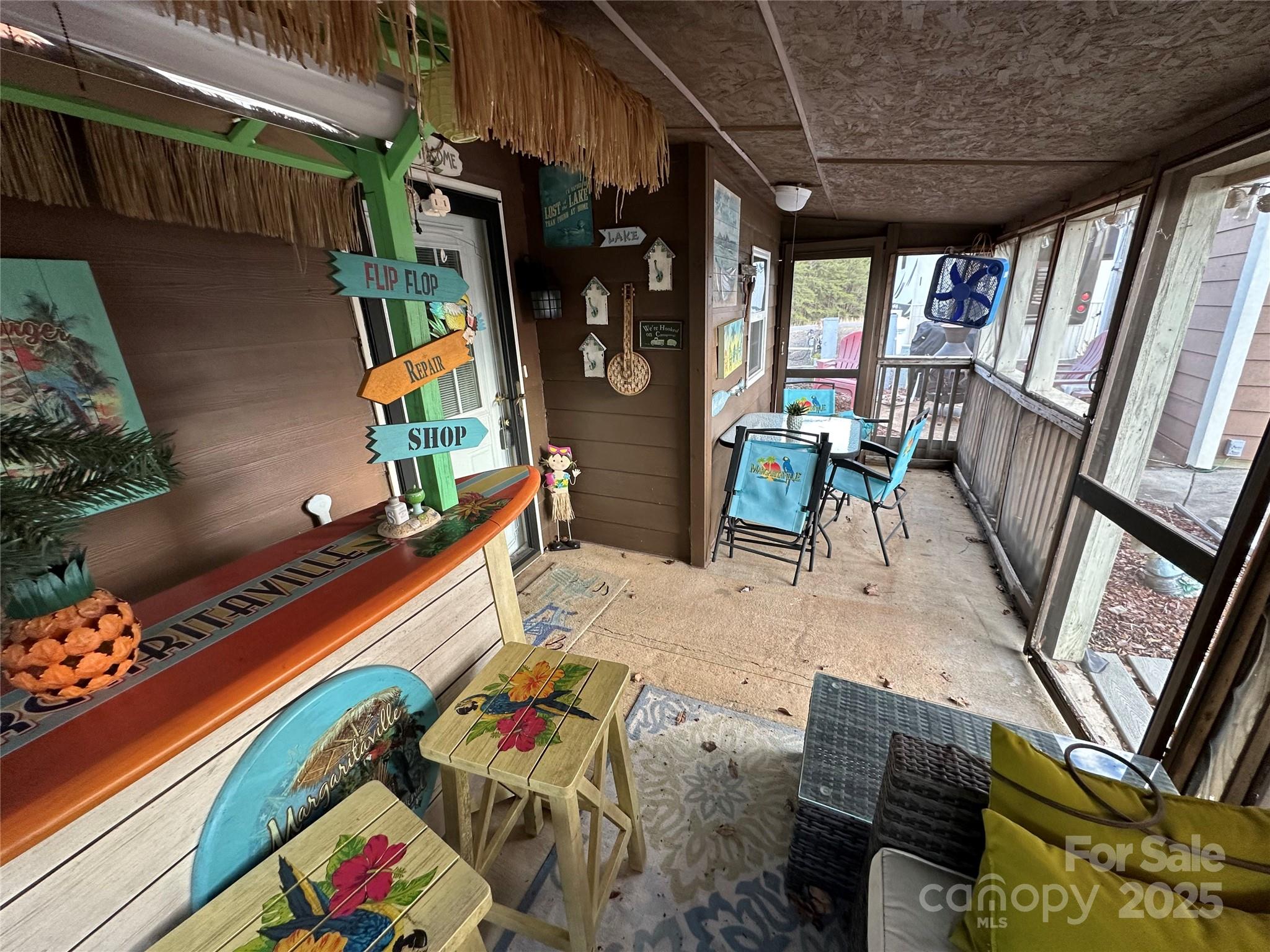 Unique 3-bedroom camper with room addition & screen porch would make the perfect lake get away! Plentiful concrete parking is the first thing you will notice when arriving at this property. A covered canopy area is the perfect spot to park your golf car or a great place to relax & watch the carts go by. Step into the screen porch & you will feel like you are in Margaritaville with the great entertaining space decorated with the Margaritaville vibe. Inside the room addition features a large living room furnished with beautiful vibrant decor, kitchen space with full size appliances, 1 bath & 3 sleeping area. Come enjoy all the amenities that Badin Shores Resort offers, swimming pool, sandy beach & swim area, putt putt, playgrounds, picnic pavilions, clubhouse, fishing pier, waterfront boardwalk, community boat ramp & more. Property comes mostly furnished so bring your clothes & get your lake life started. Side by Side can go with property with acceptable offer.