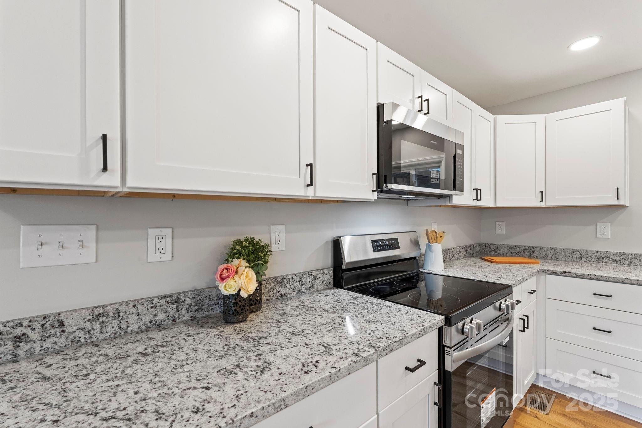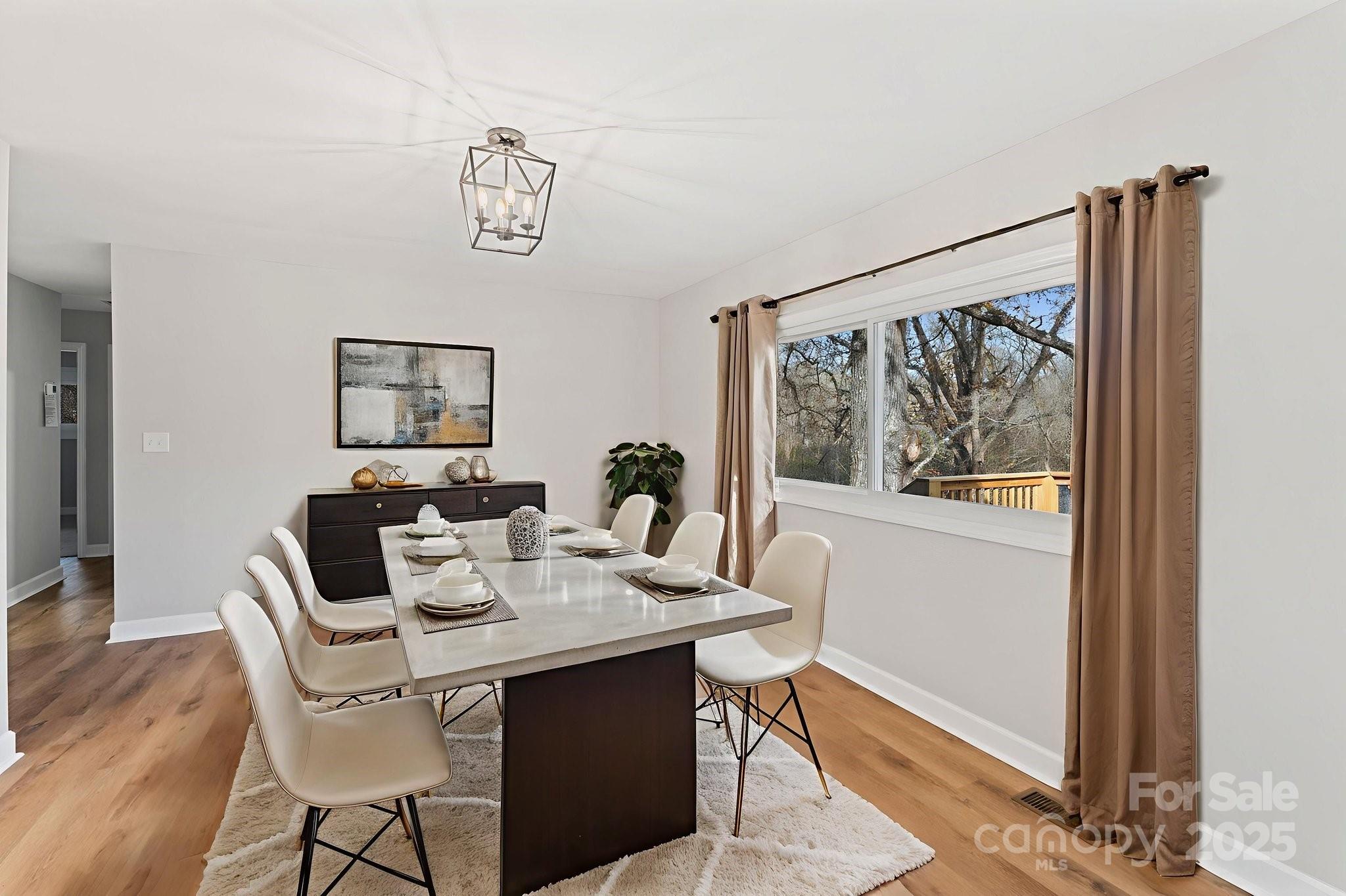 Beautifully renovated 4-bedroom, 2-bathroom home in the heart of Concord! This modern retreat features a stunning brand-new kitchen with white shaker cabinets, granite countertops, stainless steel appliances, and a spacious layout perfect for cooking and entertaining. The bright, open dining area overlooks the new deck and private backyard, offering peaceful wooded views. Both bathrooms have been fully updated with stylish finishes, including a double-vanity in the primary en-suite bath. The home showcases fresh flooring, new lighting, updated plumbing and electrical fixtures, and thoughtful designer touches throughout. Outside, the freshly painted exterior, craftsman-style entry, and expansive new deck provide incredible curb appeal and outdoor living space. Conveniently located near shopping, dining, and downtown Concord—this move-in-ready home is the perfect blend of modern upgrades and natural surroundings.