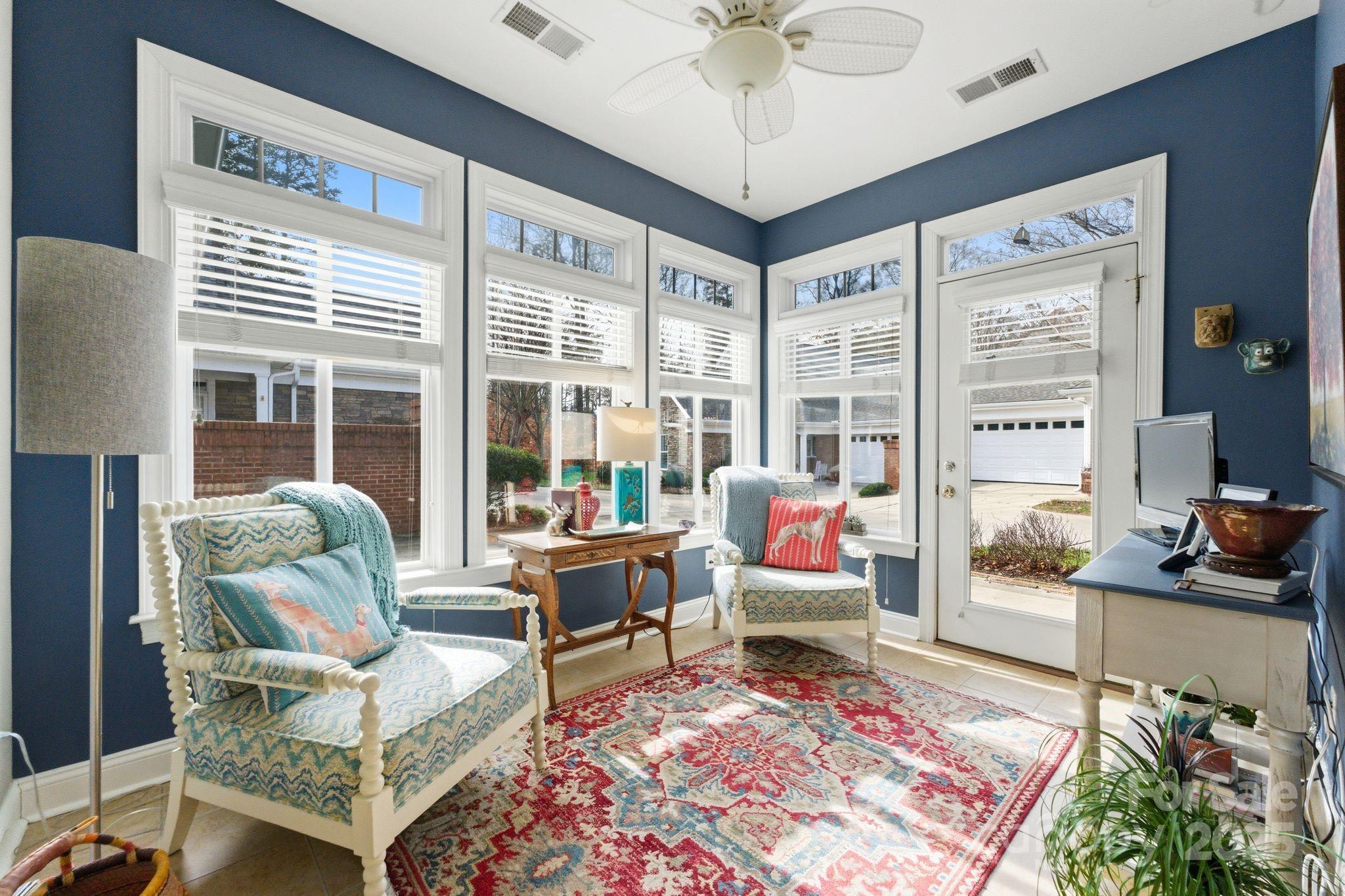 Meticulously maintained, this one-level Patio Home offers effortless living with timeless style and thoughtful updates throughout. Upon entry, you’re greeted by tall ceilings, warm tones, gorgeous crown moldings, and abundant natural light. The inviting living room features a wall of windows, cathedral ceilings, and a cozy gas fireplace, flowing seamlessly into the dining area and kitchen. The kitchen boasts granite countertops, a walk-in pantry, and ample cabinet space, perfect for everyday cooking and hosting. Thoughtful improvements provide added confidence and comfort, such as a new roof (2025), newer HVAC, water heater, appliances, updated toilets, and fresh interior paint. The luxurious primary suite showcases a beautiful tray ceiling, hardwood floors, a walk-in closet, and a spacious bath with a double vanity, separate shower, and garden tub. The homeowner’s favorite space is the sunroom, a bright and cozy retreat ideal for morning coffee, reading, TV watching or relaxing year-round. Additional highlights include a spacious secondary bedroom, wood and tile flooring throughout, a two-car garage, and a patio for outdoor enjoyment. Conveniently located just minutes from Matthews Township Shopping Center, dining, and I-485, this home delivers the perfect balance of comfort, convenience, and low-maintenance living. Bella Sera is an active community offering wonderful amenities including a clubhouse, outdoor pool, pond, and more—a lifestyle you’ll love coming home to.
