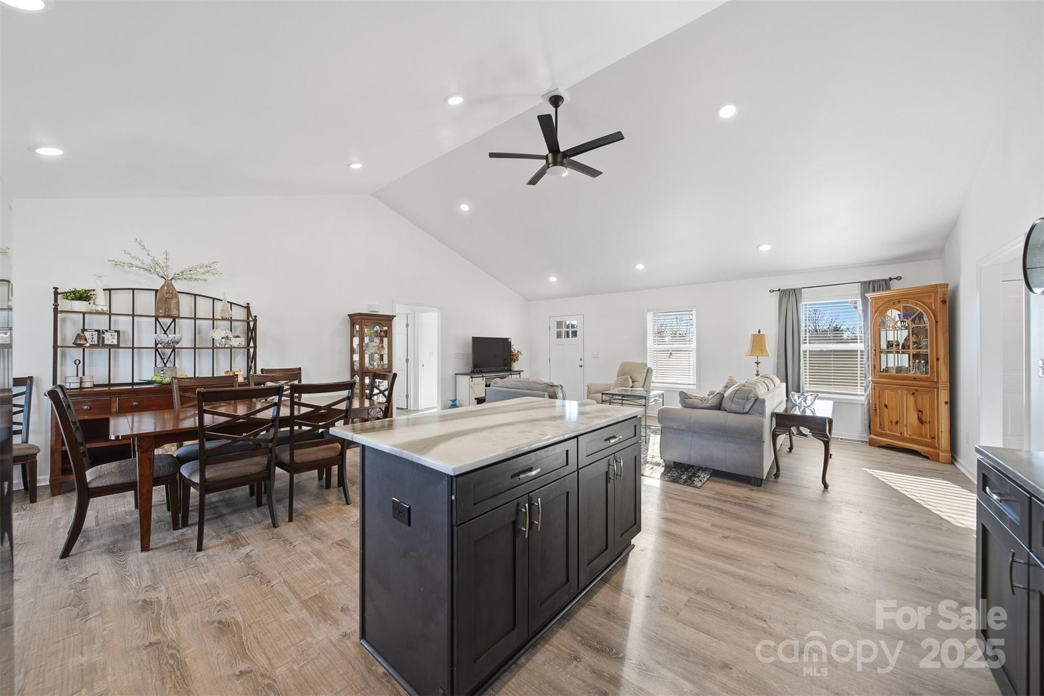 Situated on a quiet street, this almost new home (completed in 2024) blends style, comfort, and craftsmanship in every detail. Designed with the feel of a custom build, the exterior pairs timeless brick with durable engineered wood for incredible curb appeal. Inside, vaulted ceilings and an open layout create a warm, inviting atmosphere. The kitchen is a true standout—crafted with solid wood birch cabinets, gleaming epoxy countertops, a generous island, and a black stainless farmhouse sink. The stainless steel appliances are included for a move-in-ready experience. In the bathrooms, one-of-a-kind epoxy shower and tub panels elevate the space with stunning artistic detail. Throughout the home, luxury vinyl plank flooring offers beauty and durability, while every closet is finished with custom wooden shelving. The primary bedroom sits steps away from the dedicated laundry room with a newer (2024) Maytag washer and dryer included for everyday convenience. Two additional bedrooms are located on the opposite side of the home, and share a full bathroom. Even the 2-car garage is thoughtfully built and insulated, including the door. The garage includes an additional alcove space for a workshop or storage. Underneath it all, you’ll find a state-of-the-art encapsulated crawlspace foundation with a built-in dehumidifier. This home is ready to impress. Don't miss your opportunity to own this gem!