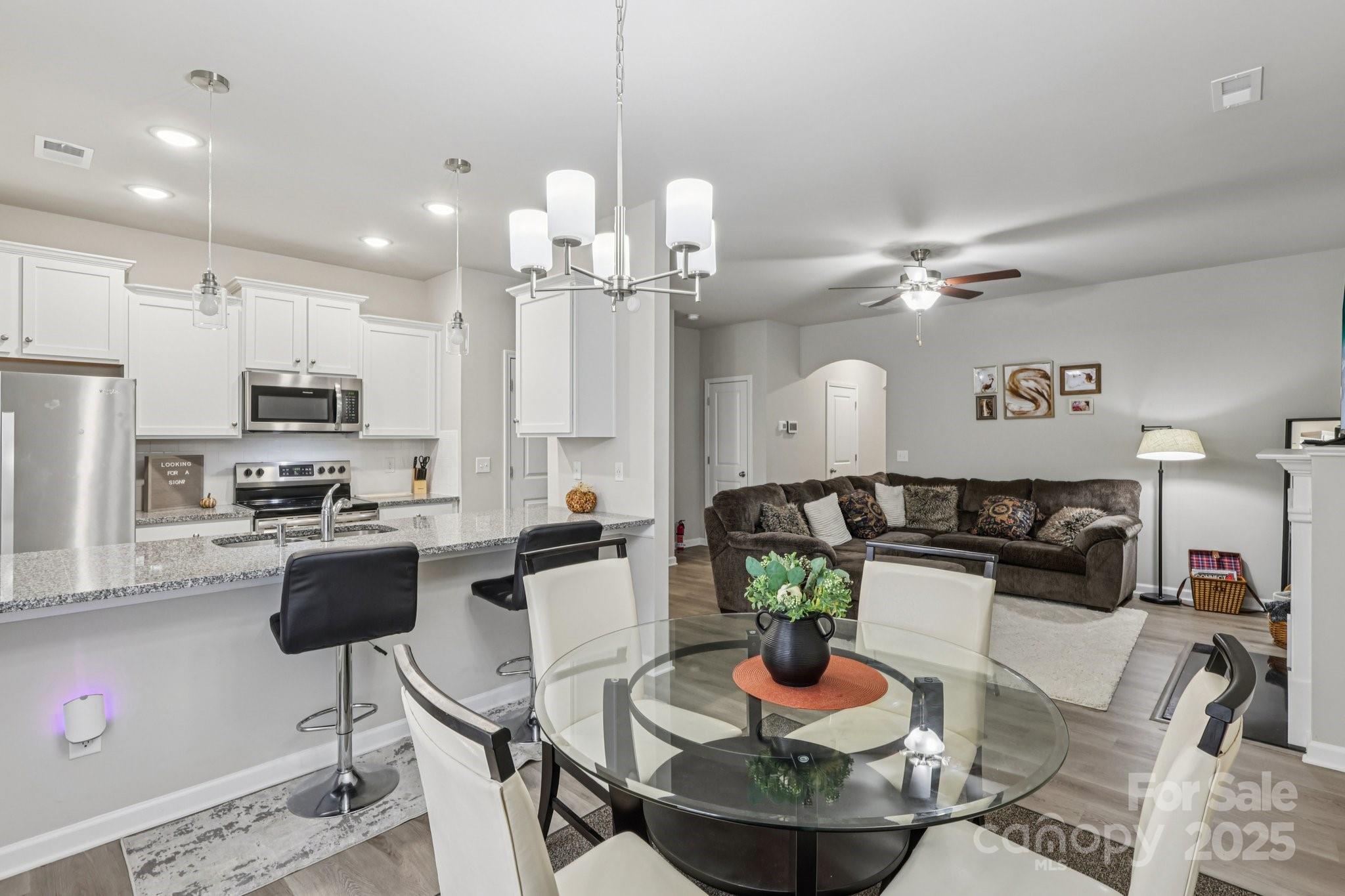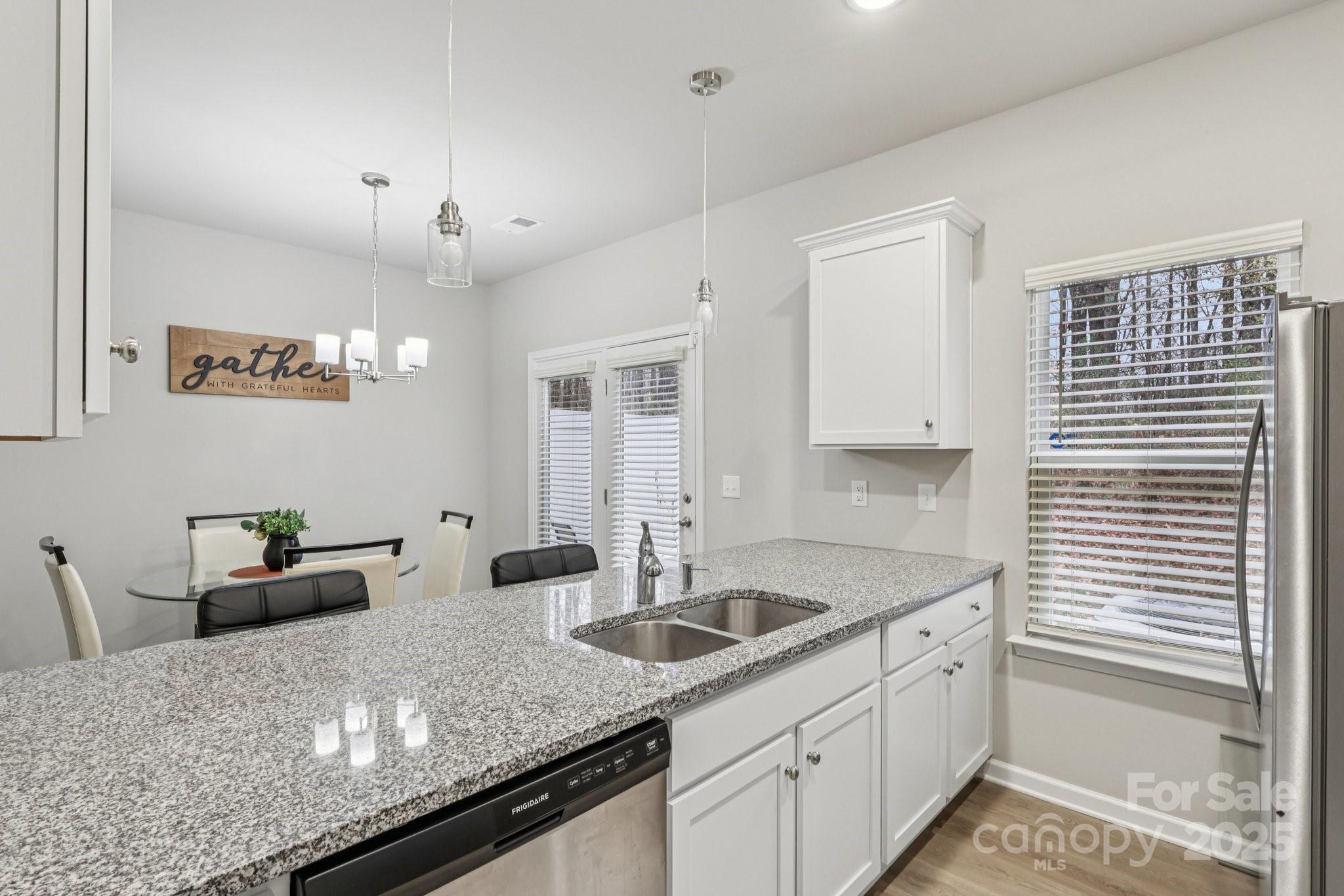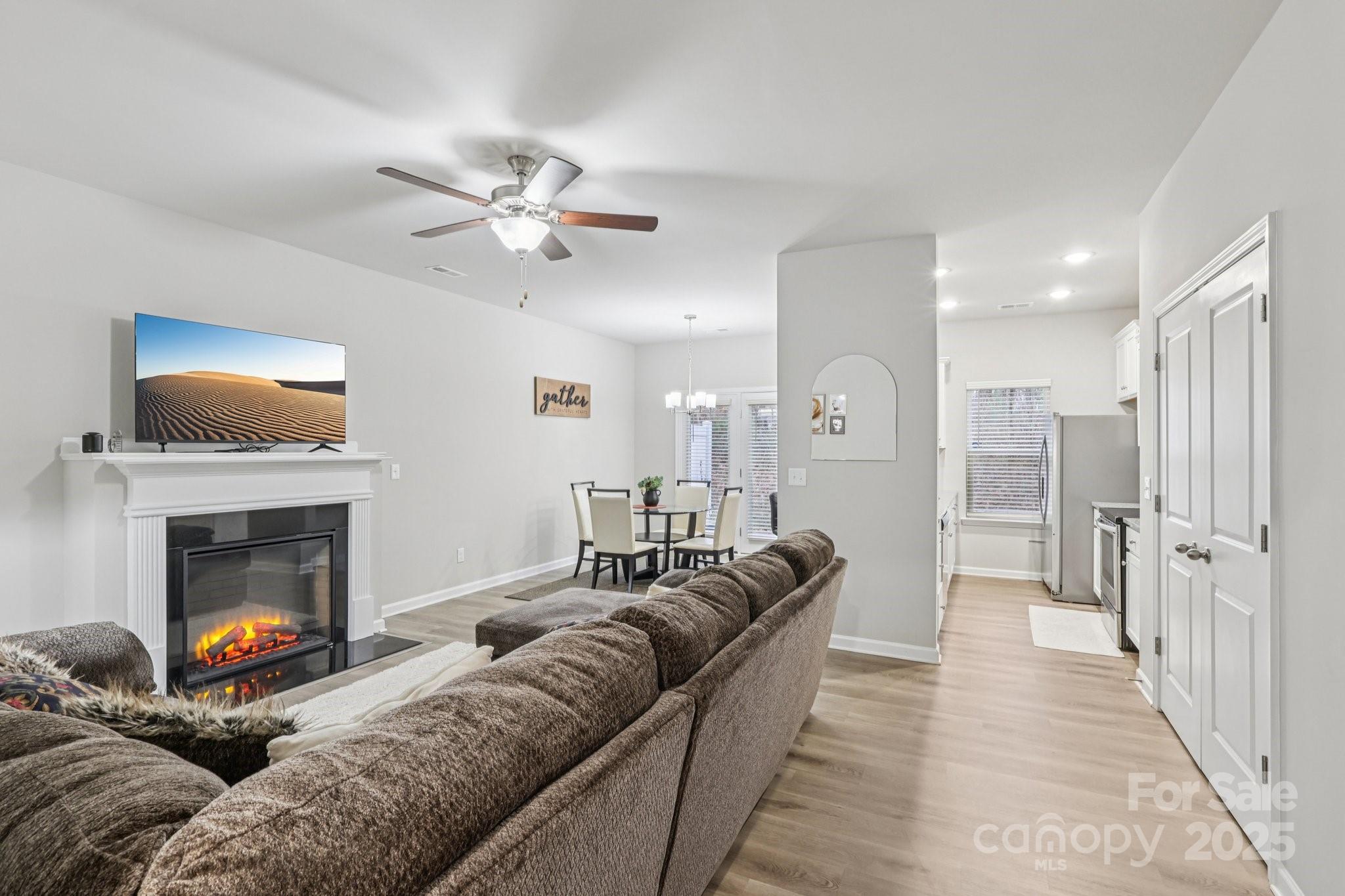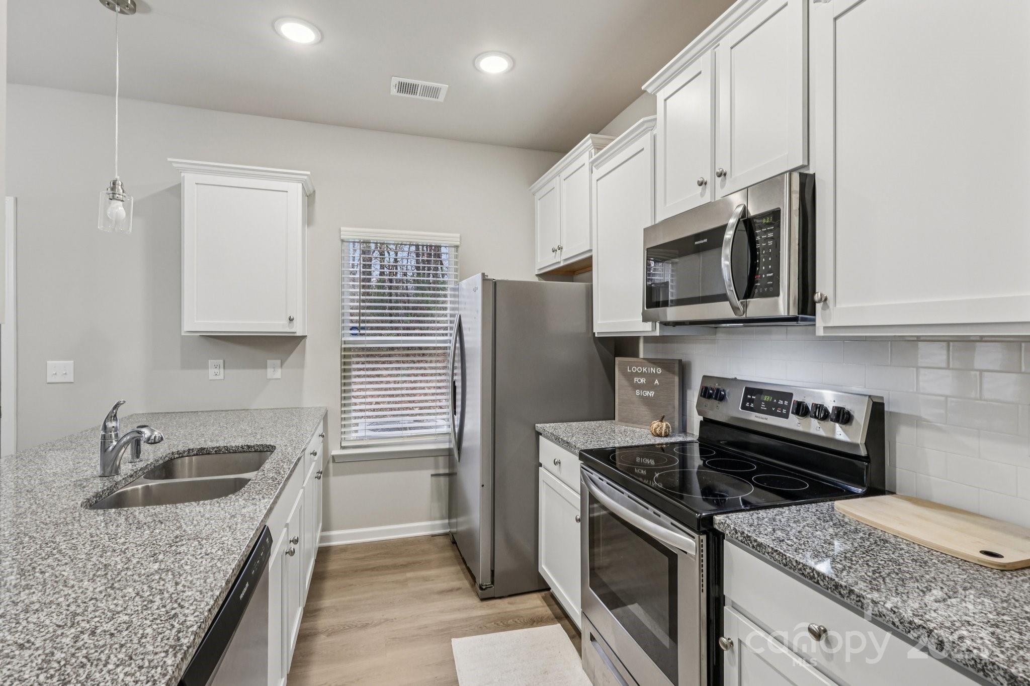 Step inside and you’ll immediately notice the inviting open layout and durable, wood-look LVP flooring throughout the main level. The kitchen is designed to impress with granite countertops, stainless steel appliances, white cabinetry, a spacious pantry, and a breakfast bar. The dining area easily fits a larger table and flows right into the great room, complete with an electric fireplace that creates a cozy focal point. Upstairs, the primary suite offers a generous walk-in closet and a beautifully appointed bathroom with double sinks and an oversized shower. Two additional bedrooms provide great space for guests, family, or a home office and share a full hall bath. The laundry is conveniently located upstairs, along with both a linen closet and a large storage closet. The community of Kingstree offers great amenities including a pool and playground for residents to enjoy. Buyer incentives: • $3,000 toward closing costs when using our preferred lender Virtual tour available
