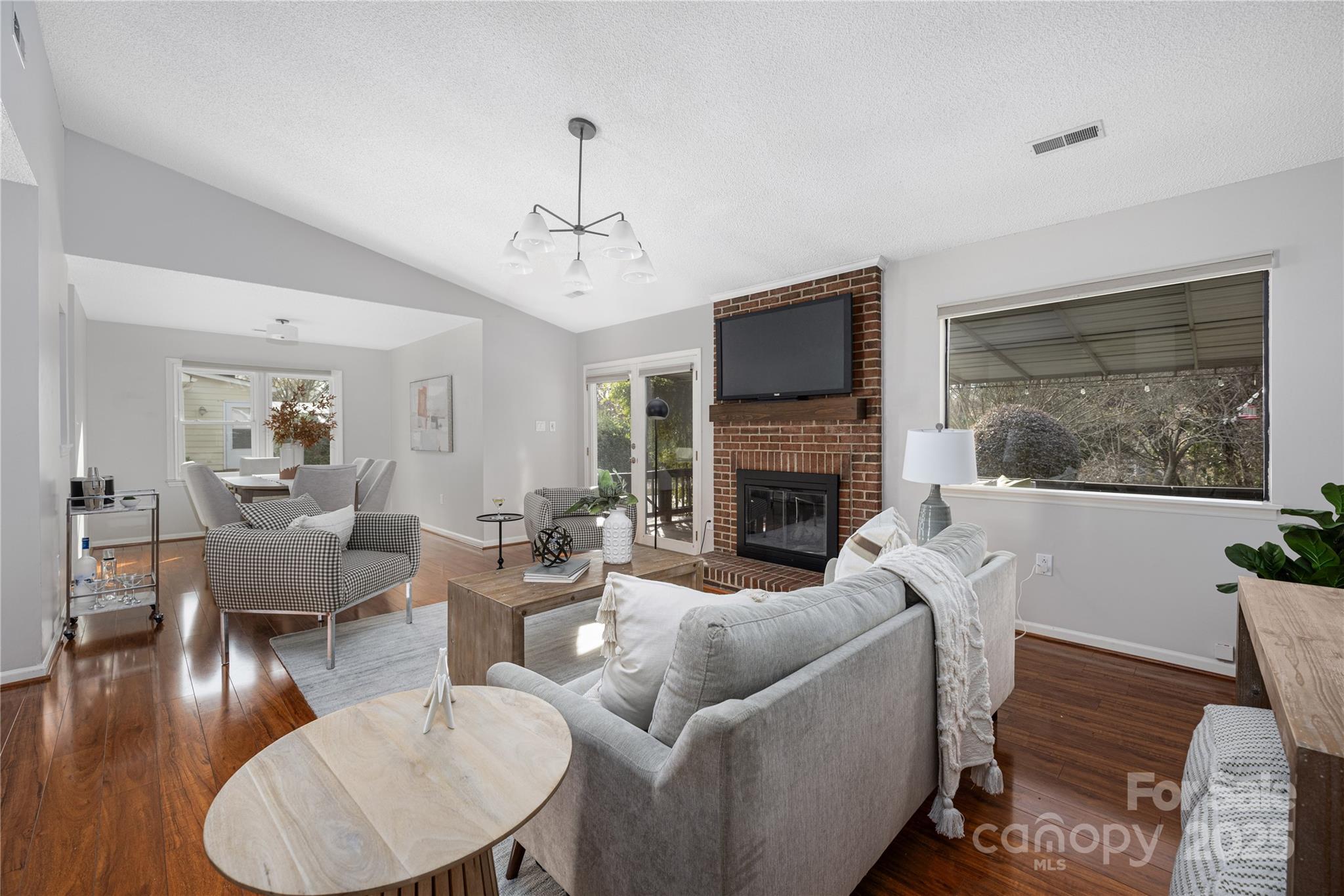 Move-in-ready ranch with outstanding curb appeal in the heart of Brandon Forest! Inside you will find beautiful flooring, a cozy brick fireplace anchoring the living room, and an open, light-filled floor plan. The real magic happens out back with a covered porch overlooks a private backyard. Lovingly maintained, new lighting, a large storage shed, and stainless steel appliances. Nestled in the desirable Brandon Forest neighborhood of South Charlotte, this unbeatable location is just minutes from shopping, dining, and entertainment at SouthPark Mall and Phillips Place. With easy access to major highways like I-77 and I-485, commuting to Uptown Charlotte or surrounding areas is a breeze. Enjoy the perfect blend of suburban tranquility and urban convenience. This one feels like home the moment you pull in the driveway!