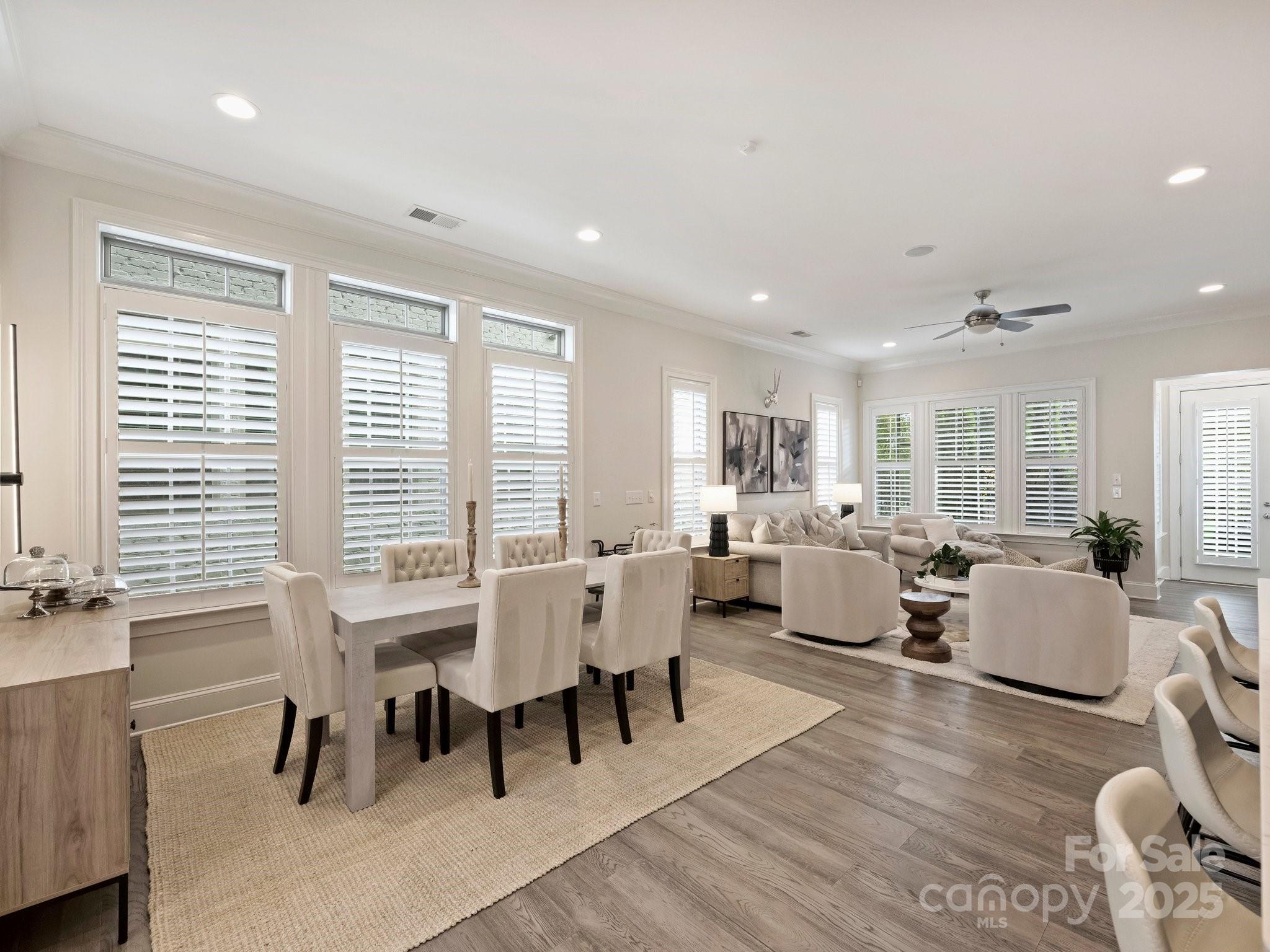 Elegance and convenience in this meticulously maintained townhome, ideally located in SouthPark, close to premier shopping and dining. Enjoy true main-level living with a spacious primary bedroom featuring large walk-in closet, ensuite bath with a beautiful, tiled shower and dual vanities. Open floor plan with gourmet kitchen and dining area. Throughout the home, find upscale finishes, including stunning plantation shutters that add privacy and classic charm. Custom built-in closet systems throughout provide exceptional organization and storage. The upper level offers a huge loft—a versatile secondary living room perfect for a home office, exercise area, media room, or play space. Three additional spacious bedrooms upstairs, one with an ensuite bath. Relax and unwind on your private screened porch. A two-car attached garage and a main-level laundry and drop zone add to low-maintenance lifestyle. Welcome home to Tindall Park!