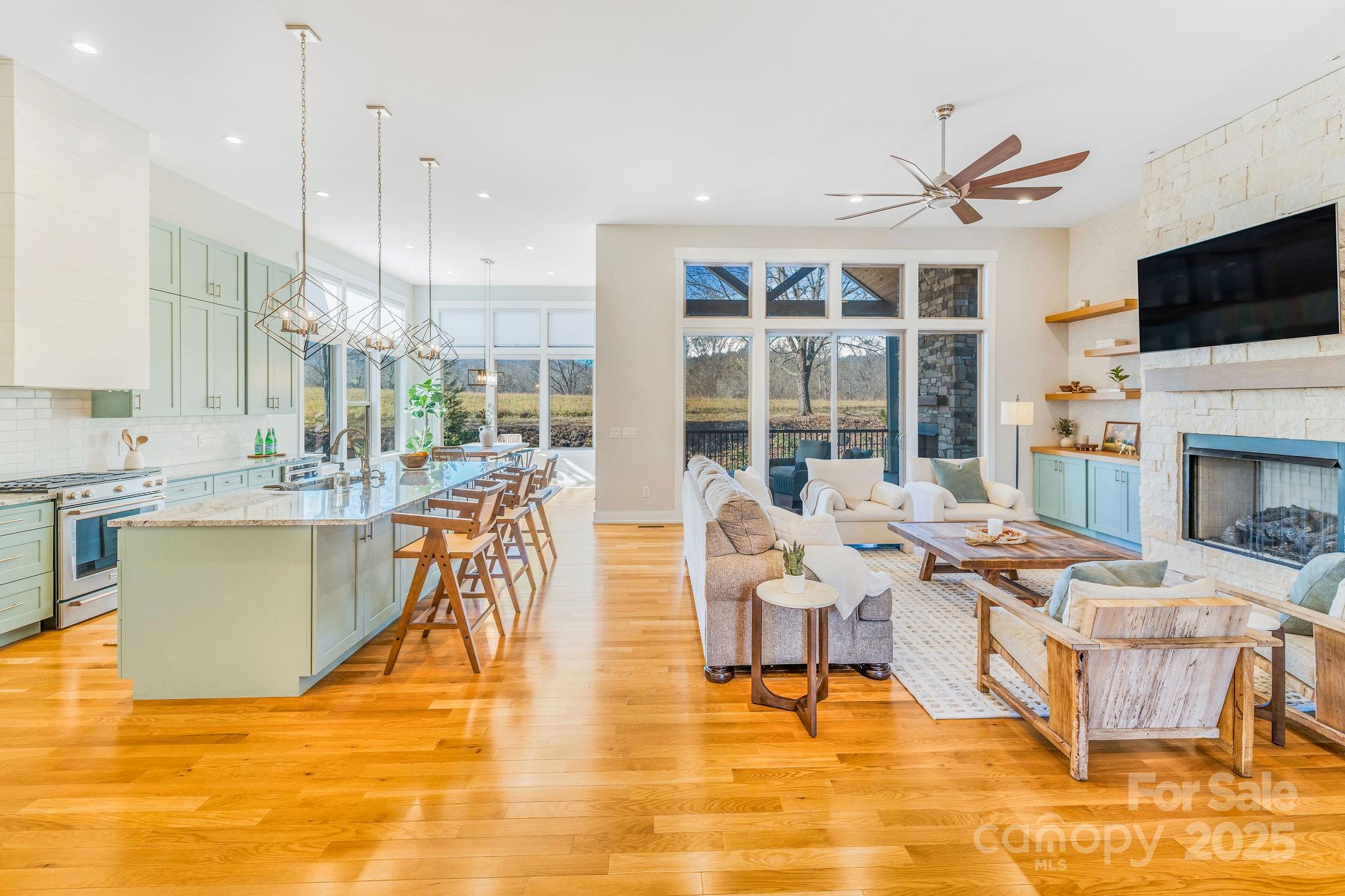 Experience exceptional one-level luxury living at 120 Milana Drive, a refined retreat where elevated design meets everyday ease in one of Mills River’s premier communities. Thoughtfully crafted and impeccably maintained, this home delivers the perfect blend of comfort, sophistication, and mountain-region tranquility. Step inside and you’ll be greeted by soaring 12-foot ceilings and an airy, light-filled layout that flows effortlessly from space to space. At the heart of the home, a limestone fireplace anchors the living area with timeless elegance—offering both a striking focal point and the perfect backdrop for relaxed evenings or refined entertaining. The chef-inspired kitchen offers high-end function and style, seamlessly connecting to the living and dining areas for an intuitive, open-concept experience. The primary suite provides a calming sanctuary, while additional main-level bedrooms and flex spaces ensure comfort and versatility for guests, hobbies, or work-from-home needs. Extend your living outdoors with a beautifully designed screened porch, ideal for morning coffee, quiet reading, or enjoying breezy Carolina evenings without the bugs. The level, landscaped yard adds to the home’s sense of privacy and peacefulness, while the fenced in area is perfect for pets or protected play. Modern conveniences make life here even better: a dedicated electric car charger, a whole-home generator, and thoughtful, low-maintenance features that keep day-to-day living simple and stress-free. Perfectly located between Asheville and Hendersonville—with easy access to breweries, trails, recreation, and all the best of Western North Carolina—this home offers unmatched comfort and connectivity.