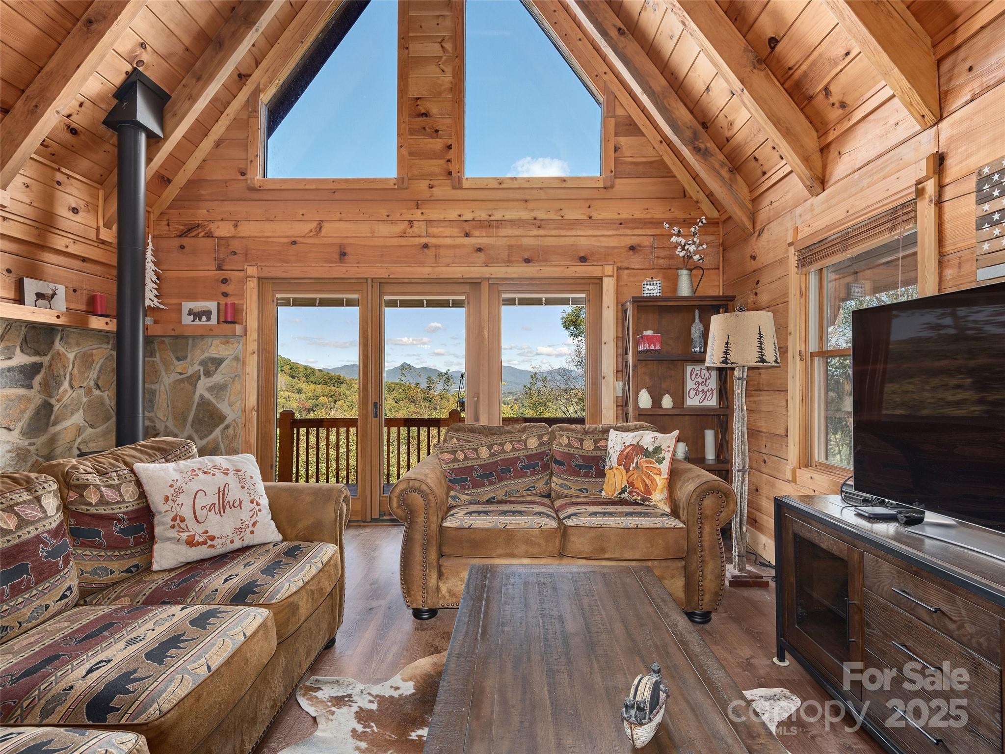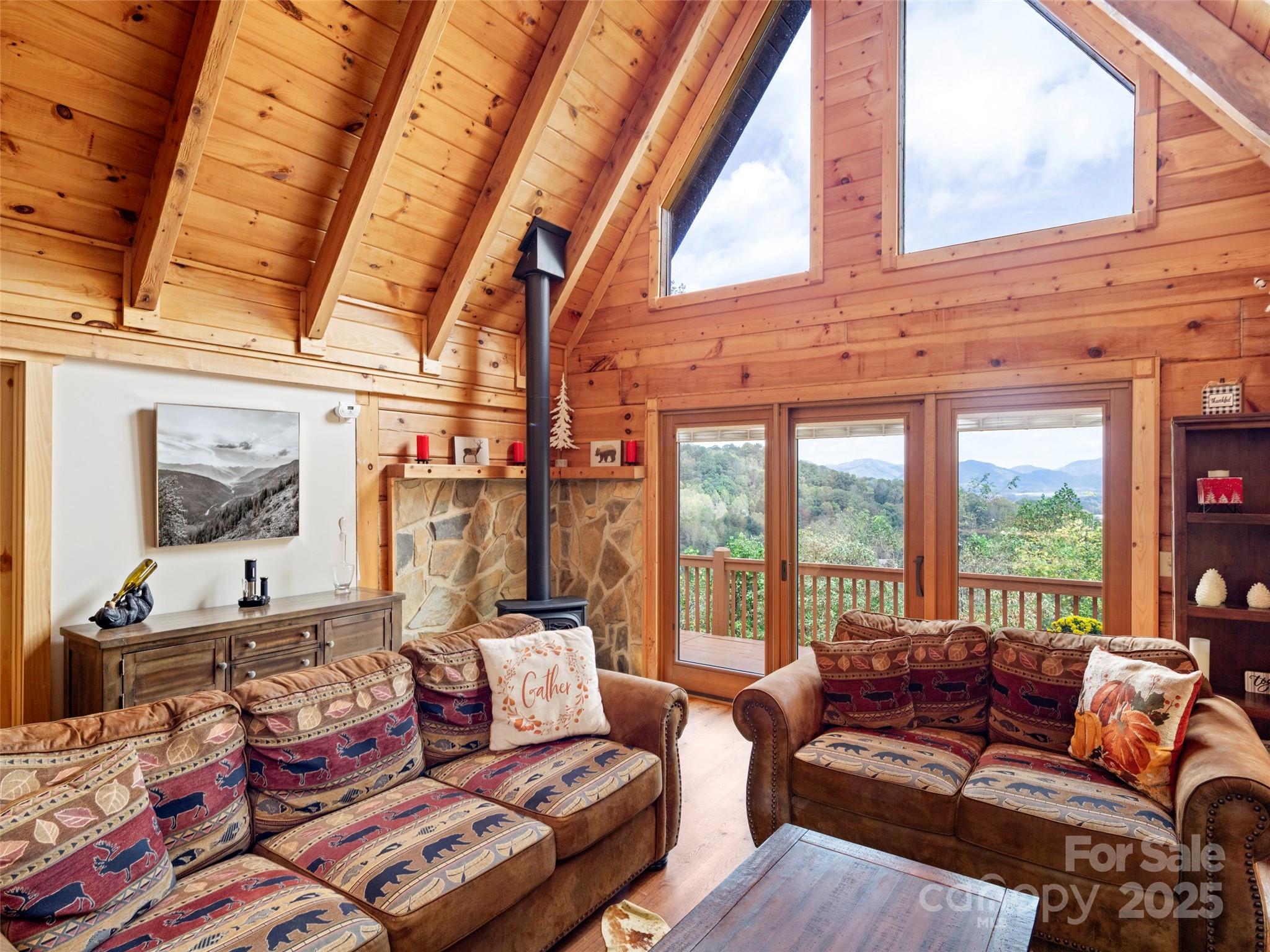 Turn-key and fully furnished log cabin with easy year-round access—your move-in-ready mountain retreat awaits in beautiful Waynesville, NC. This charming updated log cabin offers the ideal blend of rustic elegance, comfort, and convenience, just minutes from Waynesville and Maggie Valley. Whether you’re searching for a fully furnished vacation home, a short-term rental investment, or a peaceful full-time residence, this cabin checks every box. Inside, you’ll find a warm and inviting living space featuring a classic log cabin feel with modern upgrades throughout. A gas-log fireplace, custom walnut entry door, and two spacious decks create the perfect atmosphere for enjoying mountain mornings and long-range views. The beautifully renovated kitchen and bathrooms blend mountain character with fresh, modern touches. The main level offers a comfortable bedroom with an en-suite bath, while the upstairs game room provides additional sleeping or entertaining space—ideal for guests or rental potential. Recent updates include new electrical and plumbing systems, high-speed fiber-optic internet, a high-efficiency Wi-Fi heat pump water heater, and upgraded finishes. Outside, the fresh landscaping and rocking-chair front porch enhance the home’s mountain curb appeal. With turn-key furnishings included, easy paved access, and close proximity to shops, dining, hiking trails, and ski resorts, this move-in-ready mountain cabin offers the perfect escape. Don’t miss this fully furnished, turn-key Waynesville log cabin—ready for you to enjoy from day one.