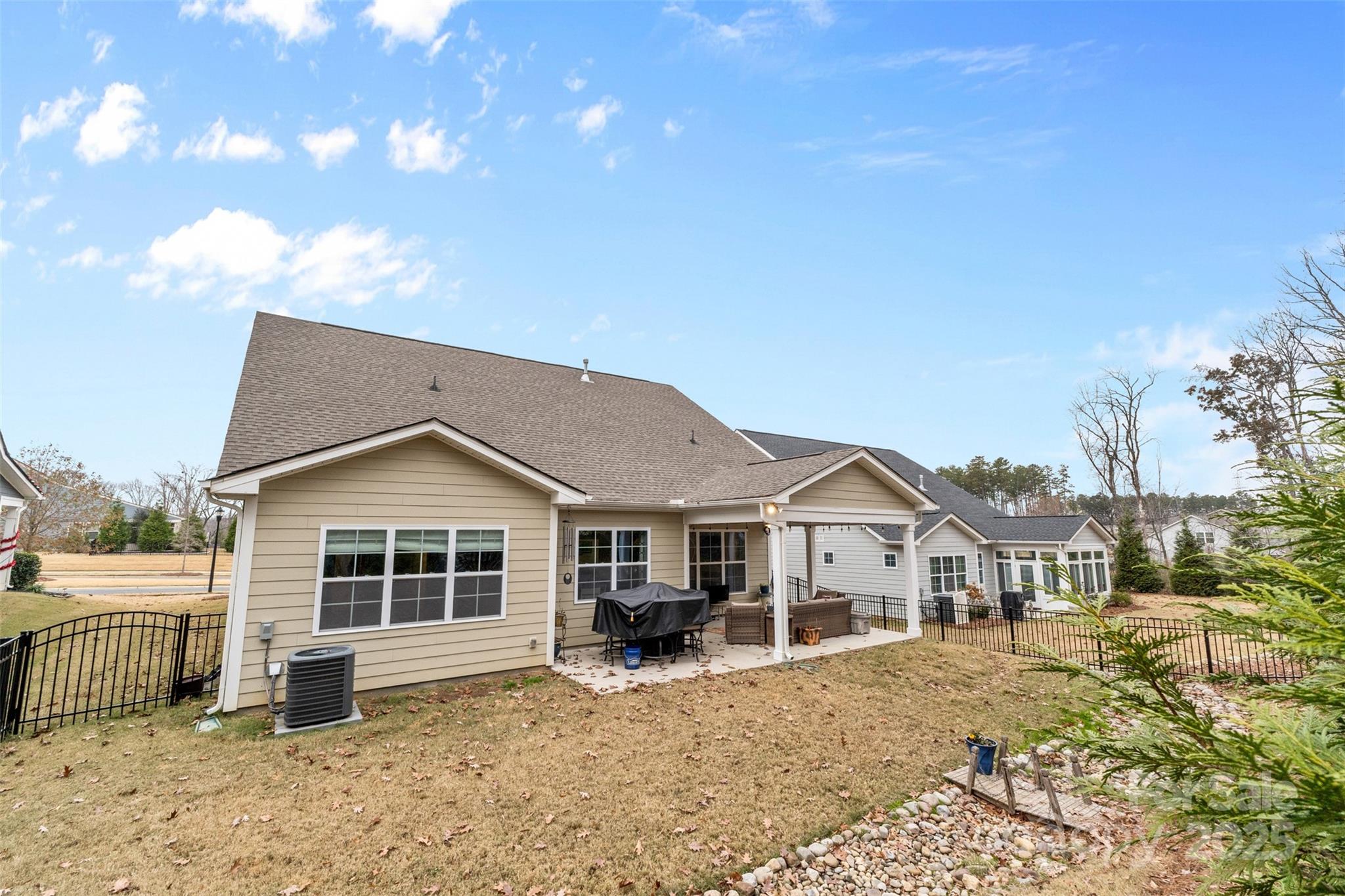 Welcome to Heritage, one of Indian Trail’s premier 55+ active adult communities! Skip the wait for new construction—this 2020 home is move-in ready with a neutral modern palette. The thoughtful plan offers 2 bedrooms, 2 full baths, plus a dedicated home office with French doors off the foyer—ideal for work or flexible guest space. The open main living area features LVP flooring, a cozy gas fireplace, and a stylish kitchen with quartz countertops and an oversized island perfect for gatherings. The light-filled primary suite includes a tray ceiling, extra windows, a walk-in closet, and a beautifully upgraded ensuite bath with tile. Enjoy extra versatility with an upstairs bonus room that provides the ideal space for hobbies, fitness, or visiting guests. Step outside to a covered patio and fenced backyard with a tree buffer for added privacy. Heritage offers a fantastic lifestyle with a clubhouse, pool, walking trails, and included lawn maintenance—all in a prime Wesley Chapel area location close to shopping, dining, and everyday conveniences!