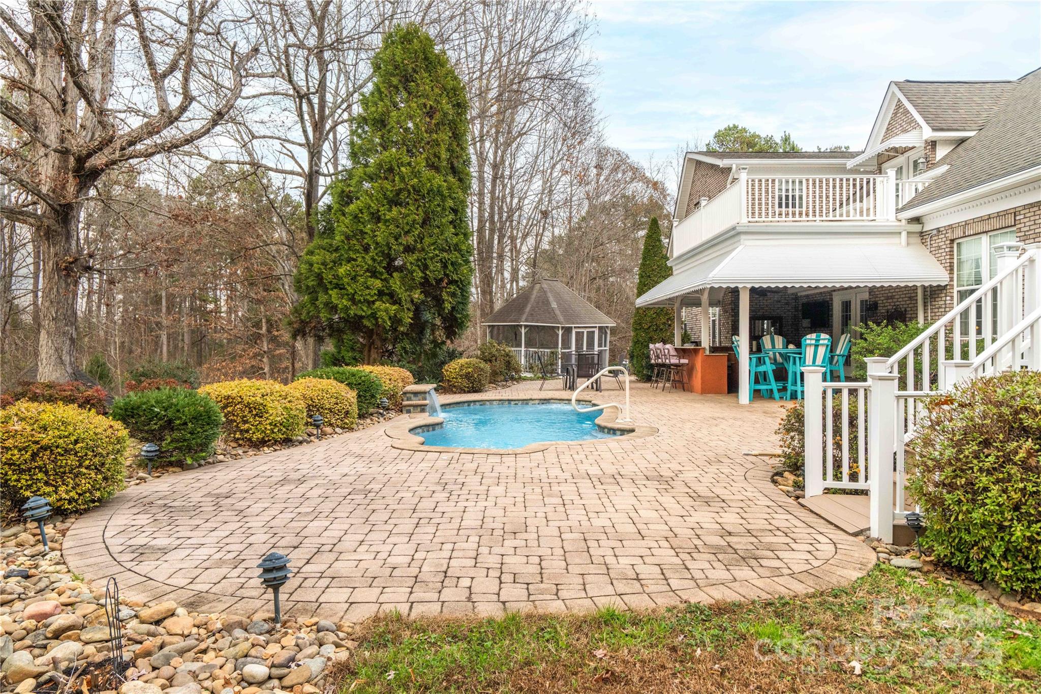 Welcome to this beautifully appointed four bed, three and a half bath home set on a full acre, offering the perfect blend of comfort, function & outdoor enjoyment. Inside, the updated kitchen flows effortlessly into a huge dining room fit for hosting a banquet. The main level primary is spacious with en suite spa like bath. Two living areas offer endless space with cathedral ceiling and cozy fireplace. Three bedrooms, two full baths and a bonus room on the upper level which also includes a second laundry room and walk out deck. Step outside, to your very own backyard retreat with saltwater pool, covered outdoor kitchen space and charming gazebo, all tucked beneath mature landscaping and inviting you to enjoy peaceful evenings and time by the pool. This magnificent property is the definition of privacy but close to everything you need for modern convenience. Live like you are at a resort every day of the week! Refrigerator, and downstairs washer convey. Schedule your tour today!