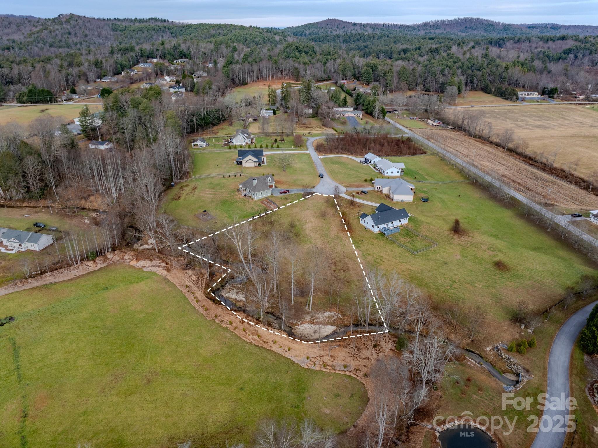 Lot 5 in Red Maple Farms is a unique 1.5-acre property located between Hendersonville and Brevard. It’s just 7 minutes from Jeter Mountain Farms, 10 minutes from DuPont State Forest, 20 minutes from the entrance to Pisgah National Forest, and 30 minutes from the Asheville Regional Airport. The southern boundary includes more than 400 feet of year-round waterfront along Mud Creek, and access is easy via the private paved road, Walnut Valley Lane, directly off Walnut Cove Road. The lot is cleared and ready for your build, offering wide, year-round mountain views from nearly every point. Power and wired AT&T internet are already available at the property; a well, septic system, and propane will need to be installed. While the property is part of a planned community, there is no active HOA. Call today for more information or to schedule your showing!