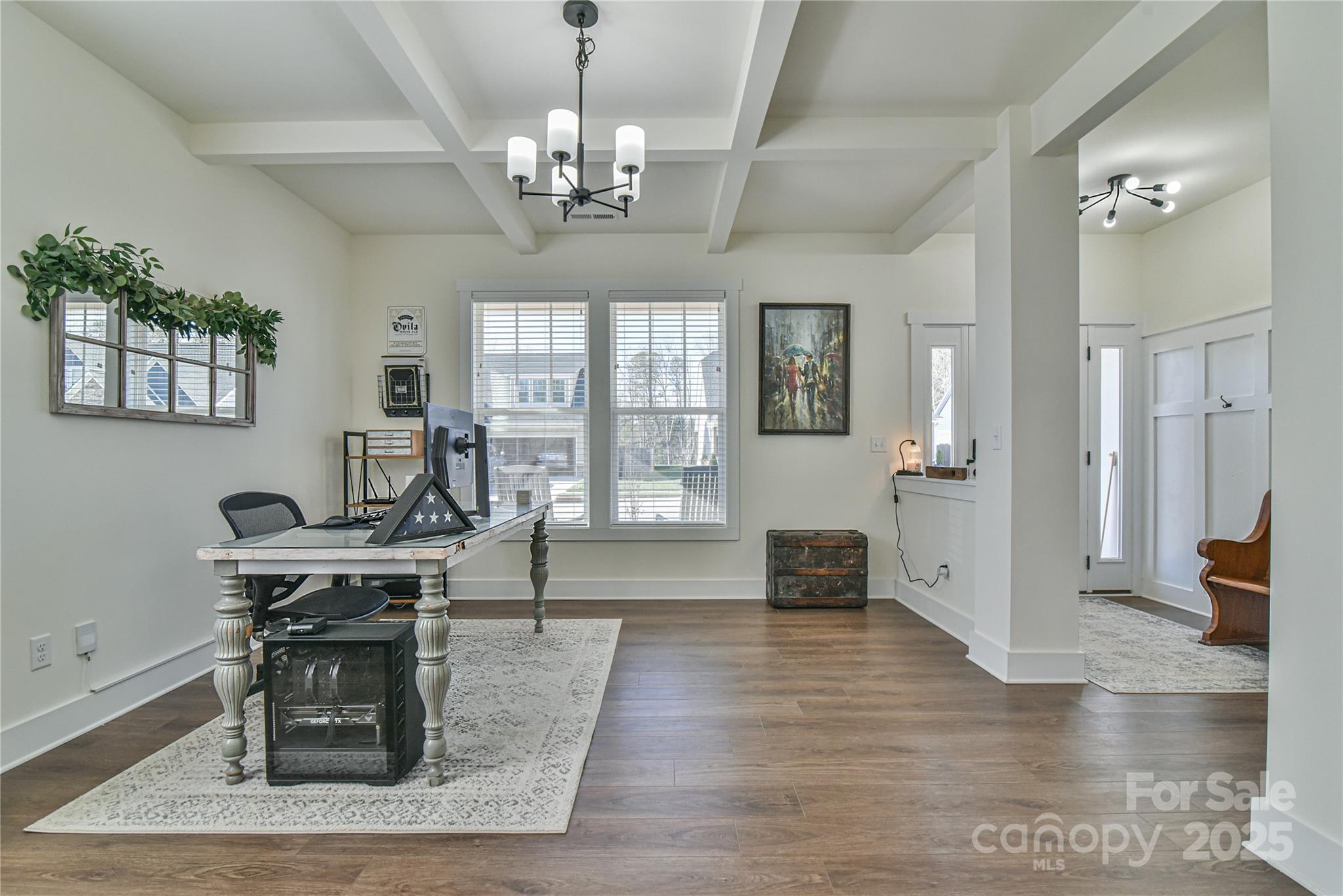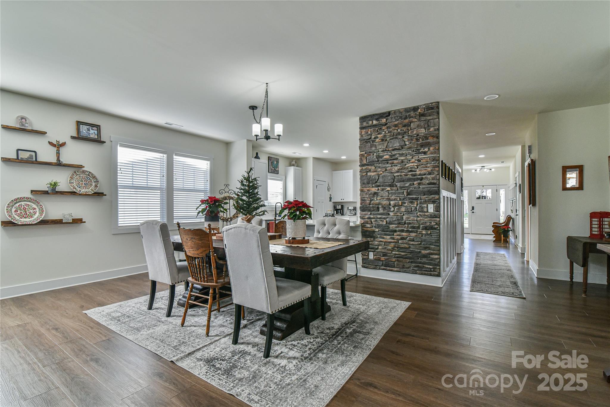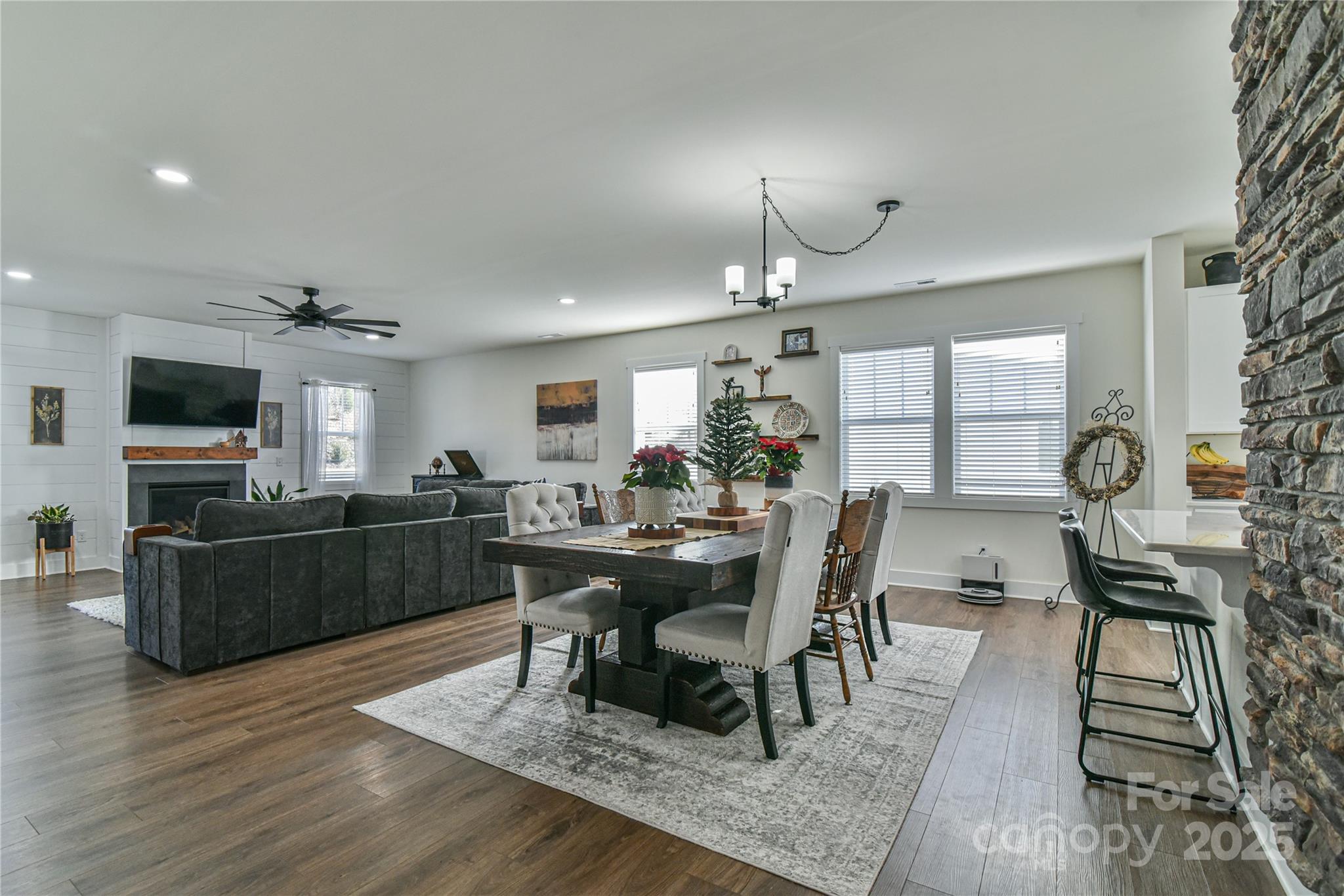 Welcome to this stunning home with the largest floor plan available in the neighborhood. As you drive up you are greeted with a clean exterior with a pop of stone, board and batten elements and a great front porch for relaxing. Once inside, there is an open floor plan with engineered hardwood throughout the lower level. Ample natural light coming in helps accentuate the beautiful shiplap covering the fireplace in the Great Room and the stone wall by the Dining table. The Kitchen and rest of the downstairs are lightly colored to help increase the spacious feel of the already large-sized home. Out back there is a hand-laid patio with a covered sitting area perfect for entertaining guests, relaxing on your own, or grilling out during the BBQ season. The owners also added a leveled garden area perfect for growing your own herbs and vegetables or adding additional greenery to the landscaping. The primary bedroom is on the lower level with plenty of space, a walk-in closet, and a custom barn door to add to the rustic feel. Moving up the stairs there is a lovely grid-style decorative panel as you make your way to the sizable loft, currently used as a theater room with raised seating and surround sound hookups. The remaining upper level boasts three large bedrooms and two full bathrooms, as well as the laundry room. Light fixtures have been upgraded throughout the home and chair railing added to many areas for improved elegance. This home is minutes to Airport Rd as well as Hendersonville Rd for quick access to many shopping and dining areas. The subdivision will not begin building again until the Spring of 2026, so this is the best chance to get a stunning home at a great price for this area. Take a look at the video tour to get a better feel for 52 N Christie Ct and book a showing today!