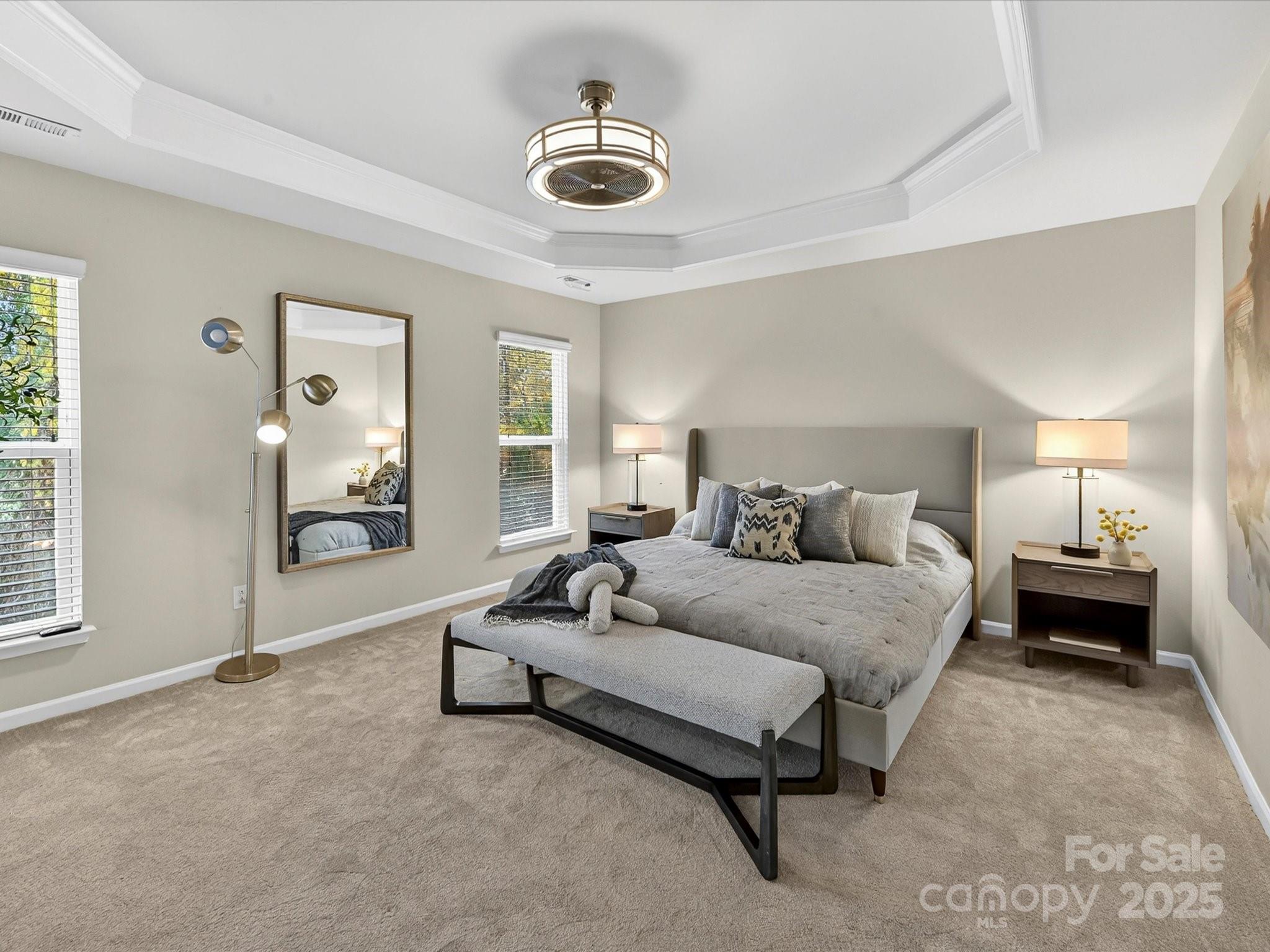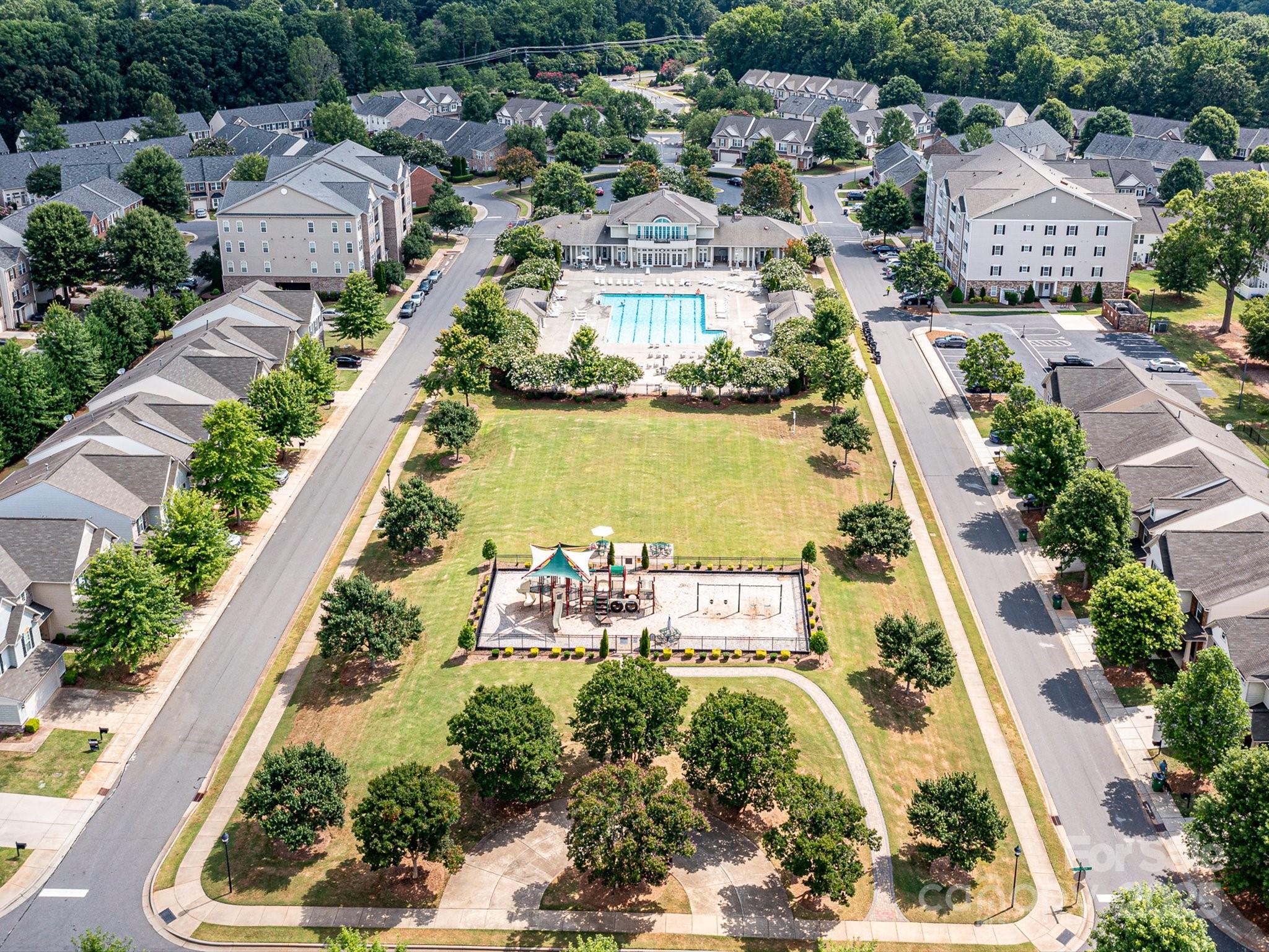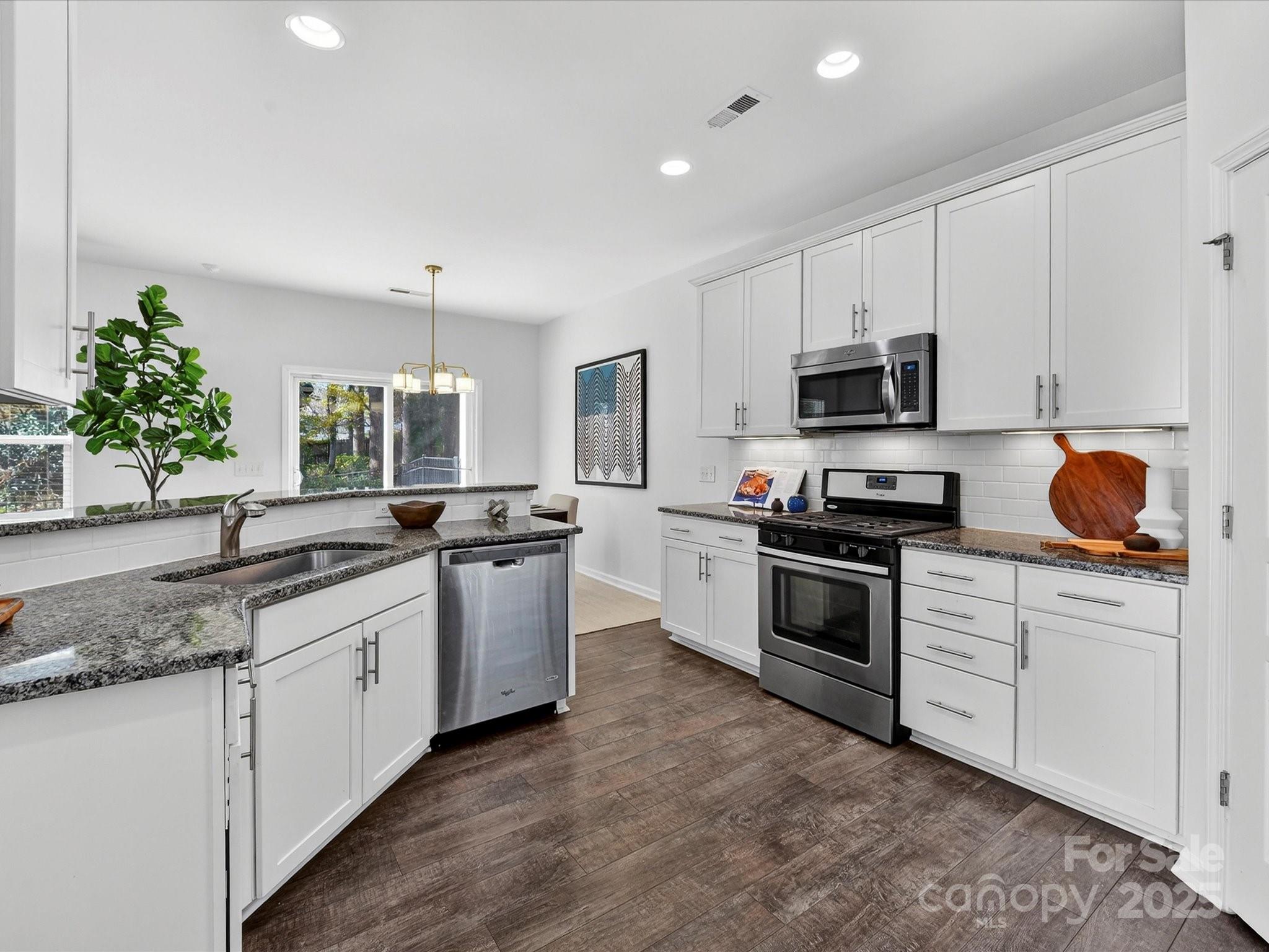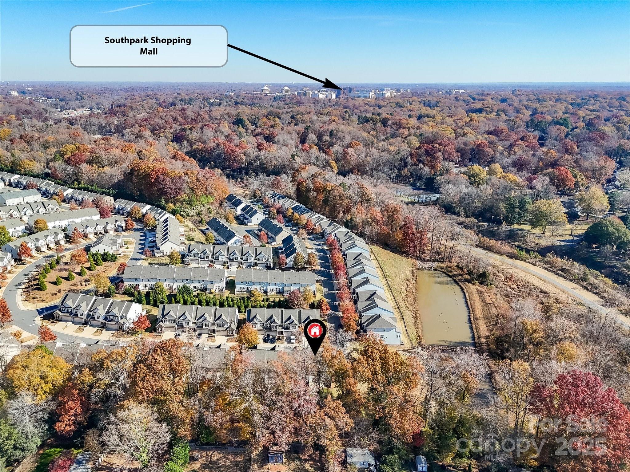 Enjoy a lifestyle with views and exceptional privacy! This coveted END-UNIT townhome overlooks Little Sugar Creek Greenway, a peaceful pond and backs to mature trees – making it one of the most scenic and private locations in gated Park South Station. East/west sun exposure delivers an abundance of bright, natural light into this modern townhome with upgrades galore. There’s even room for fur babies! A pet sanctuary underneath the stairwell boasts its own lighting and HVAC vents. Luxurious laminate flooring is both gorgeous and impressively durable. Custom lighting. Spacious great room with fireplace and inviting dining area. Gourmet kitchen offers farm style sink, pantry, breakfast bar, white kitchen cabinetry with under-counter lights and granite counters. Whirlpool stainless steel gas range, microwave, and refrigerator with water/ice dispenser. Upstairs: 9-foot ceilings. Loft is ideal for a perfectly-organized desk. Primary bedroom suite offers a tray ceiling, huge custom walk-in closet and spa-like bathroom with shower, dual vanities. a private water closet, and an extra storage closet for bed linens, towels or collectibles. Two generously-sized secondary bedrooms enjoy access to a hall bathroom with wide vanity and tub/shower. Upstairs laundry room offers beautiful washer, dryer and cabinetry. 2-car garage. 2 extra parking spaces for guests are conveniently located adjacent to the unit. Fully fenced private backyard with festive lighting and oversized patio. Resort-like amenities abound in popular Park South Station: clubhouse, fitness center, dog park, outdoor pool, playground and sidewalks. Park South Station is moments away from SouthPark Mall, the airport, major highways and uptown.