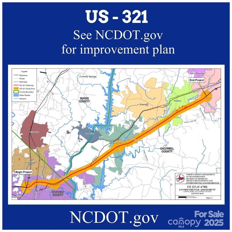 High Traffic, High Visibility Location, zoned Highway Business on Hickory Boulevard. 5.6 acres with 336' of road frontage of busy highway. Located between Hickory and Lenoir, NC. See Caldwell County GIS mapping for a visual of property lines. Land is currently part of a forestry program that changes the property tax amount.