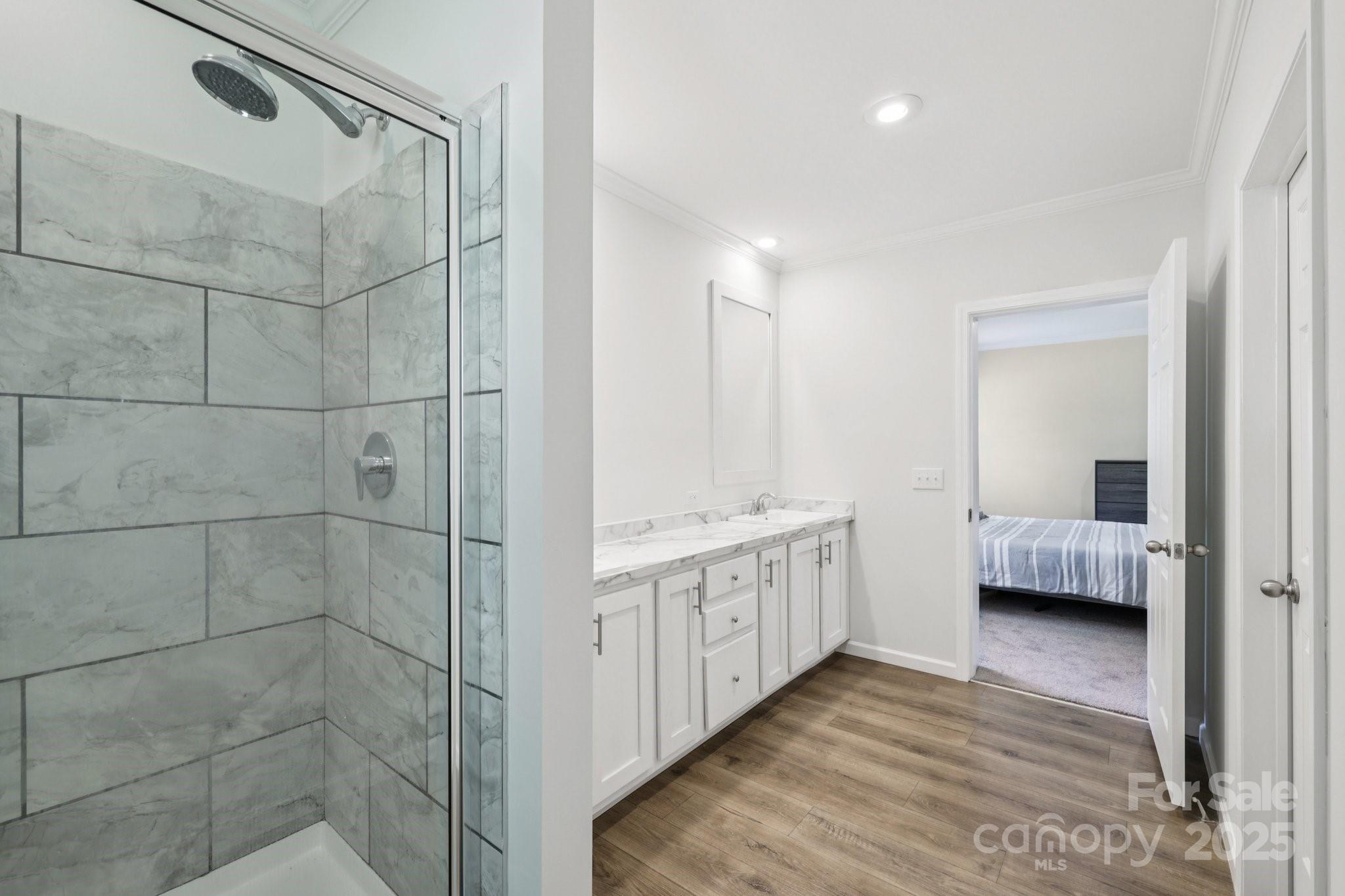 Freshly painted 3BR/2BA home in Holly Ridge on a .73-acre lot, just 5 mins from I-77, 10 mins to Statesville, and 30 mins to Mooresville. Open-concept layout with spacious kitchen featuring new stainless appliances, farmhouse sink, white cabinetry, and oversized accent island. Owner’s suite spans the back of the home with dual vanities, tiled shower with glass door, private commode room, and walk-in closet. Two additional bedrooms offer great flexibility. Low-maintenance LVP and carpet throughout. 2-car garage with new opener. Exterior includes vinyl siding, shake accents, and architectural shingles. County water and brand-new septic. Quiet country setting with modern updates—move-in ready!