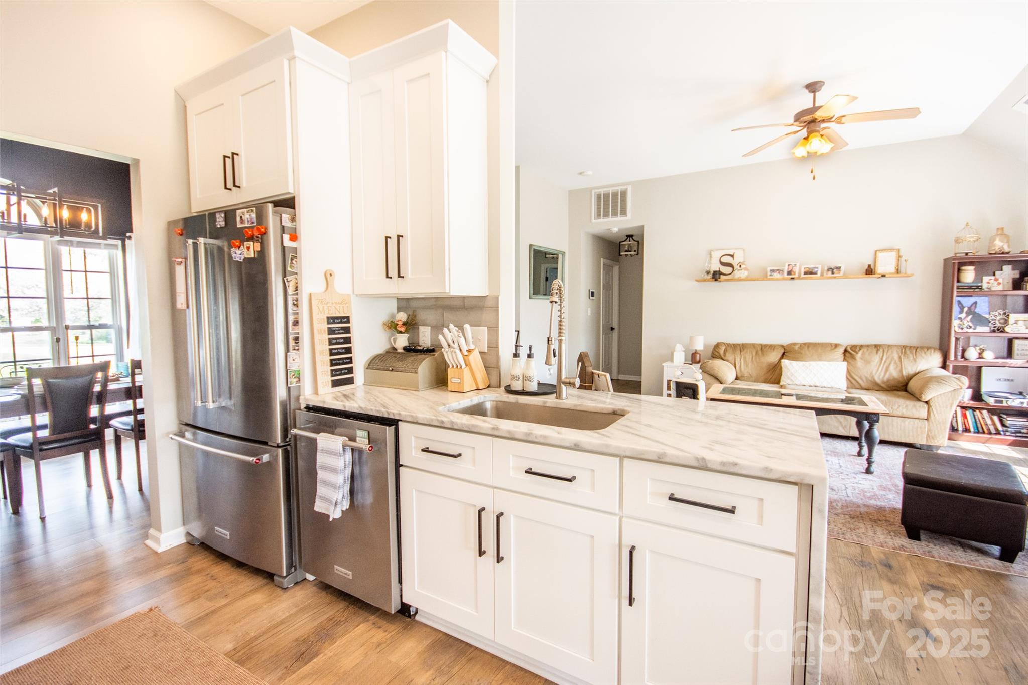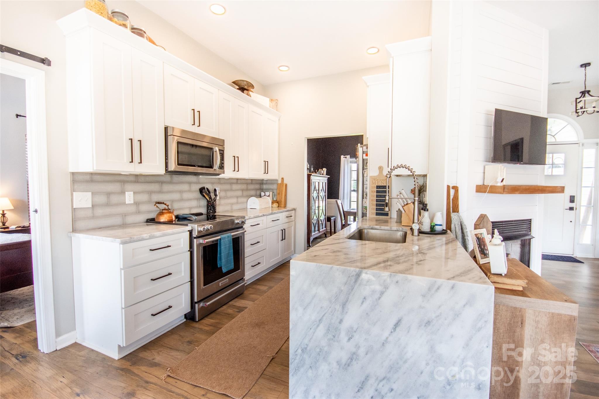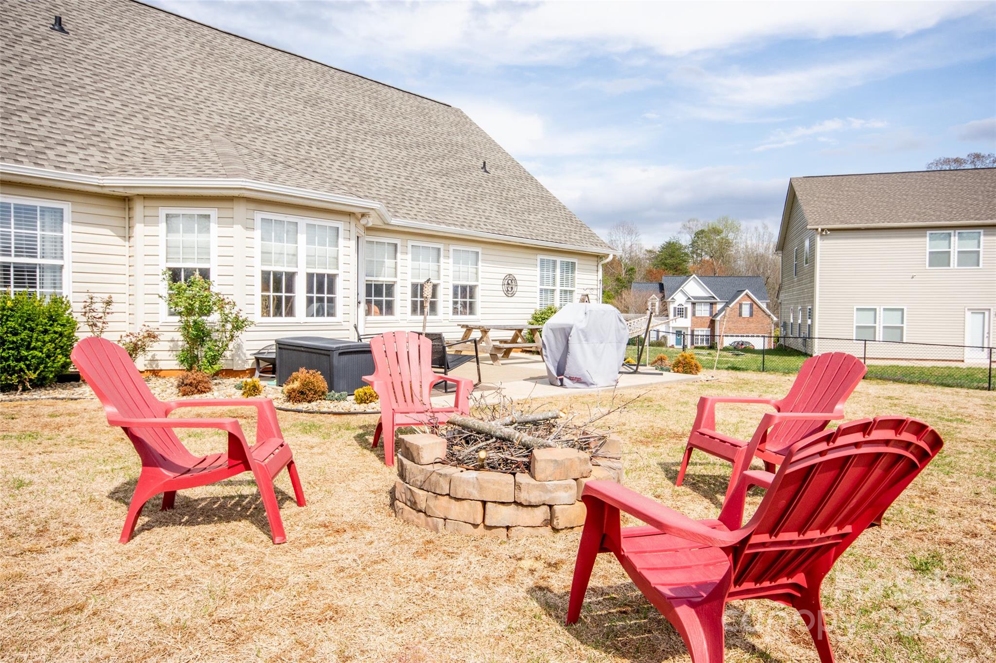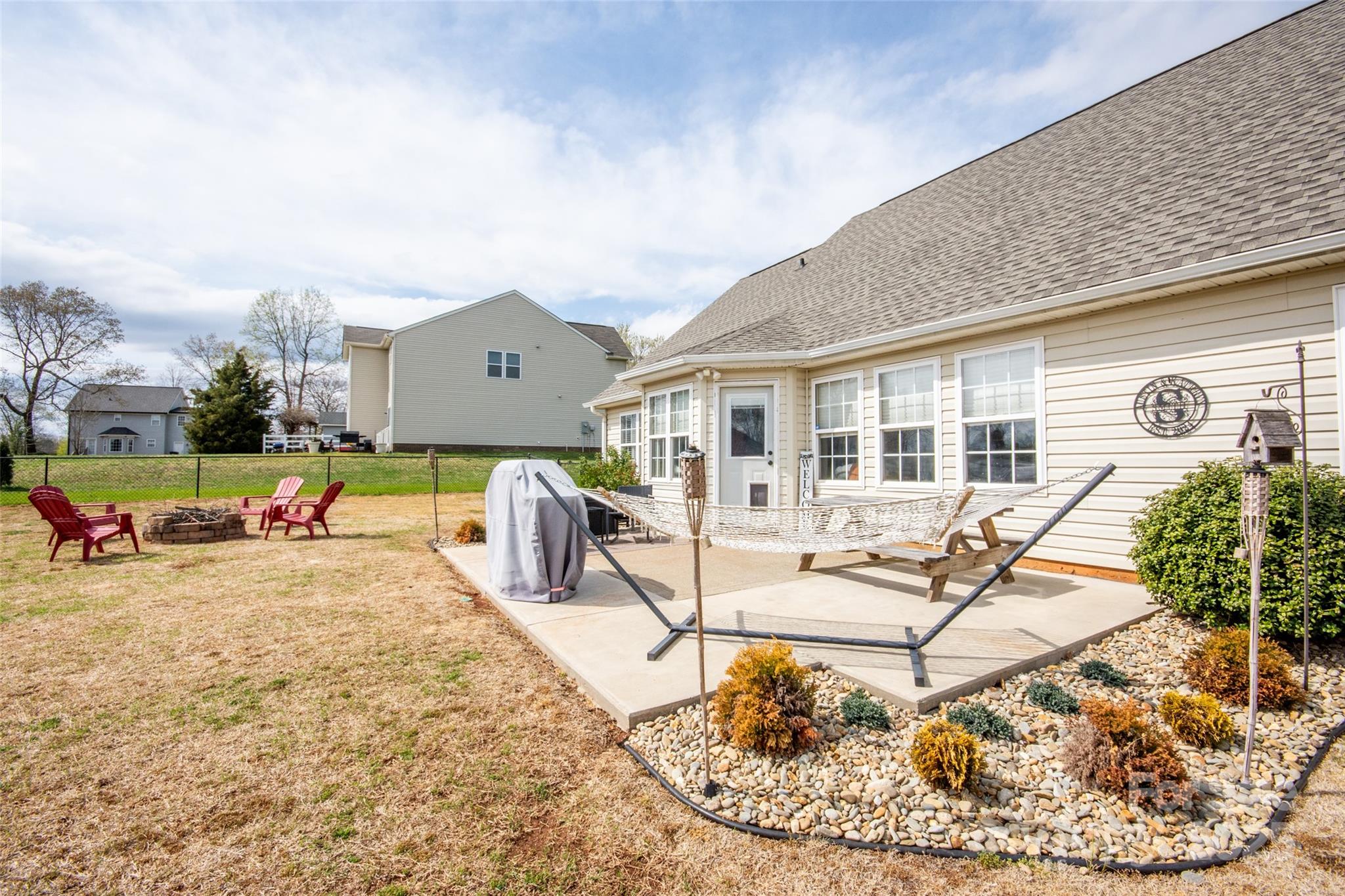 Updated Price! Beautifully updated home in The Landings! So many features including updated kitchen, newer cabinets w/soft close doors/drawers, flooring throughout, granite countertops, lighting fixtures & recessed lighting, shiplap wall accents, plumbing fixtures, vanities in baths, tile floorings in baths. Primary bath features updated tile shower & separate soaking tub & walk in closets! Primary bath has cathedral style ceiling & barn door. Breakfast nook looking out into the back yard & patio, living room w/cathedral ceiling & gas log fireplace. Two additional bedrooms. Updated main bathroom. Awesome great room w/tons of space & a bar feature. Room is painted dark w/light canceling curtains perfect for "theater" type room & has exterior door as well! Nice concrete patio out back & firepit all within an already fenced yard! Good sized storage/outbuilding at the back of the yard. Roof 2023,HVAC 2021, kitchen appliances Dec.2022. Great curb appeal and ready for you! Come check it out!
