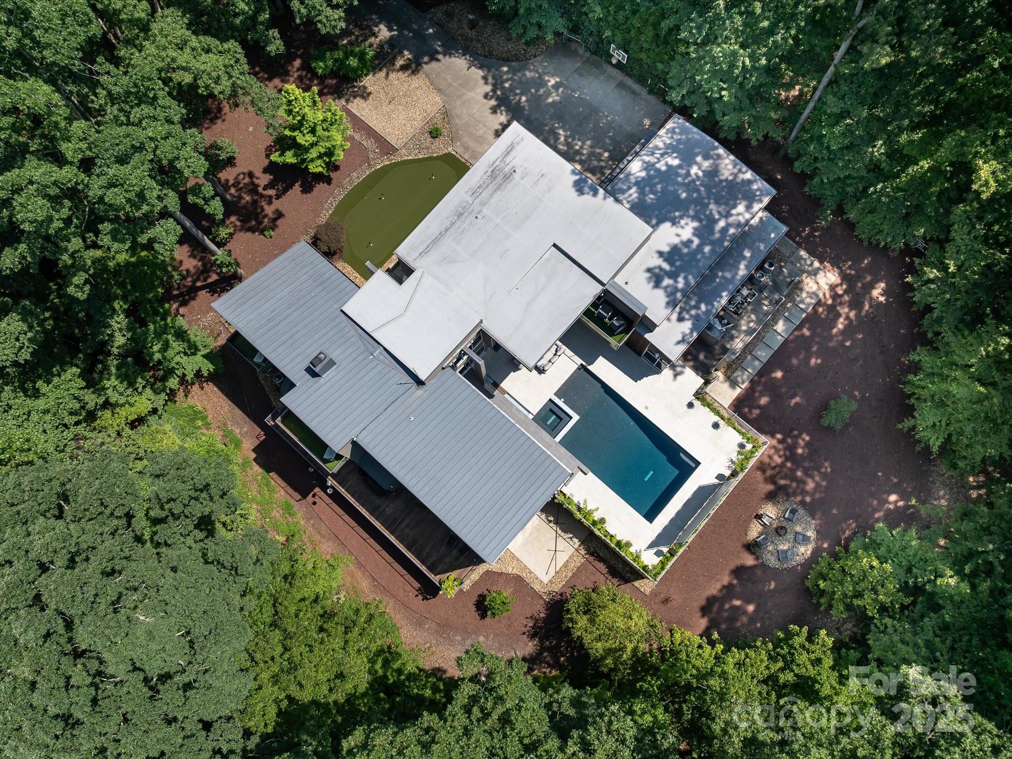 The epitome of luxury and modern living, meticulously crafted by Peadon Finein harmonizing contemporary design w serene tranquility. This architectural gem offers an oasis of peace and elegance, highlighted by abundance of light-filled spaces. Family room boasts impressive floor-to-ceiling windows, a seamless connection to the stunning natural landscape. Exquisite pool and spa, complemented by IPE decking and outdoor movie screen. Reclaimed redwood accents on walls/ceilings, adding warmth and character. Sleek gourmet kitchen a culinary haven w spacious island, quartz countertops, custom cabinetry, Sub Zero appliances. Striking 125-gallon floor aquarium. Owner’s suite w two generous walk-in closets, luxurious bathroom w soaking tub, zero-entry shower, private balcony adorned w new turf (2025). Four additional secondary bedrooms w ensuite baths. Dedicated craft room, theater room, exercise room, and wine cellar for approx 300 bottles. Enjoy your outdoor putting green, spacious garage!