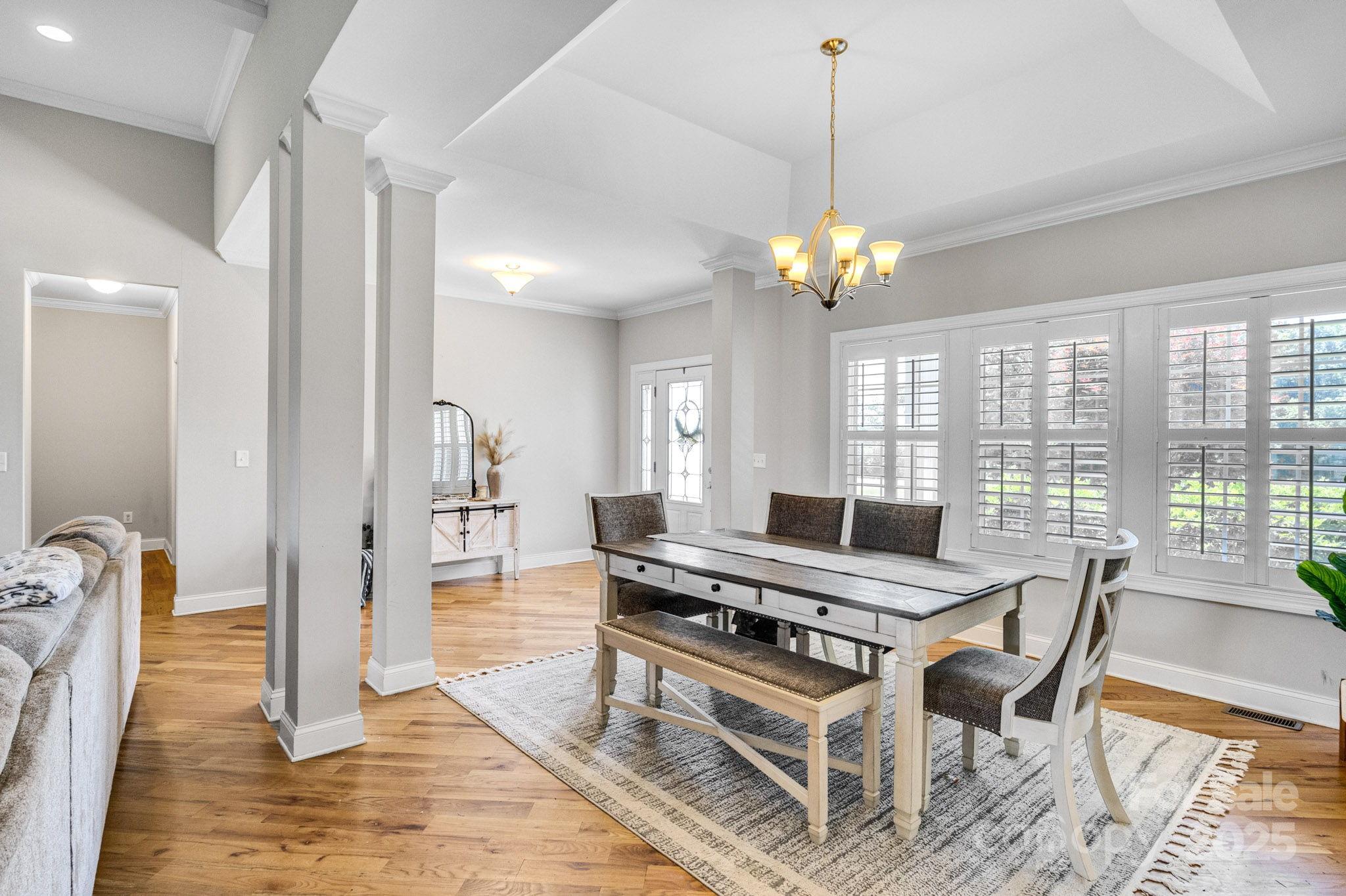 A luxurious all-brick 4-bedroom ranch perfectly positioned in a peaceful, no-HOA setting. This custom-built beauty showcases rich hardwood floors, designer tile, and high-end finishes throughout. The open, light-filled layout centers around a gourmet kitchen with a sprawling island, gleaming granite countertops, and premium stainless steel appliances—ideal for both everyday living and entertaining. The elegant dining room sets the stage for memorable gatherings, while covered front and back porches invite you to enjoy quiet mornings and relaxing evenings. A smartly designed drop zone off the garage keeps life organized. The spacious owner’s suite offers a true retreat, blending comfort and sophistication. Located in the sought-after North Lincoln Middle and High School district, this home delivers upscale living with style, convenience, and lasting value.