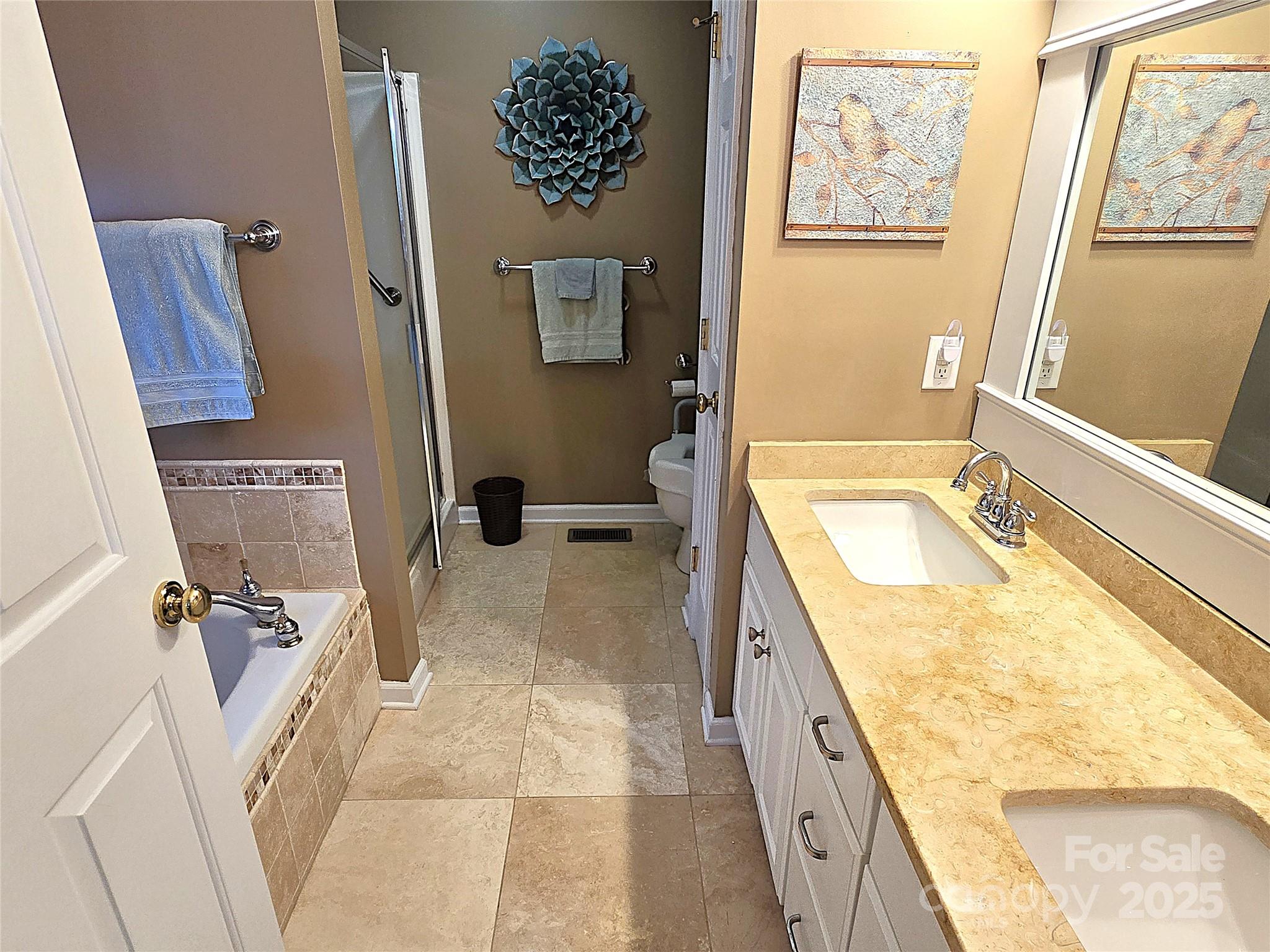 Welcome to this charming and well-maintained all-brick 3 bedroom, 2 full bath home offering both comfort and functionality. Tucked in a desirable neighborhood, this home features a spacious great room perfect for relaxing or entertaining guests. The split bedroom plan ensures privacy, with the primary suite thoughtfully separated from the additional bedrooms. You'll enjoy both a formal dining area for special occasions and a cozy breakfast nook just off the kitchen for everyday meals. The primary suite features a walk-in closet, double-sink vanity, jetted tub and walk-in shower. Upstairs, a bonus room/4th bedroom over the garage provides flexible space—ideal for a guest room, home office, playroom, or media room. Step into the oversized garage, complete with a utility sink and plenty of room for a potting station or extra storage. This home offers the perfect blend of practical design and livable space—don't miss your chance to make it yours! Schedule your private showing today!