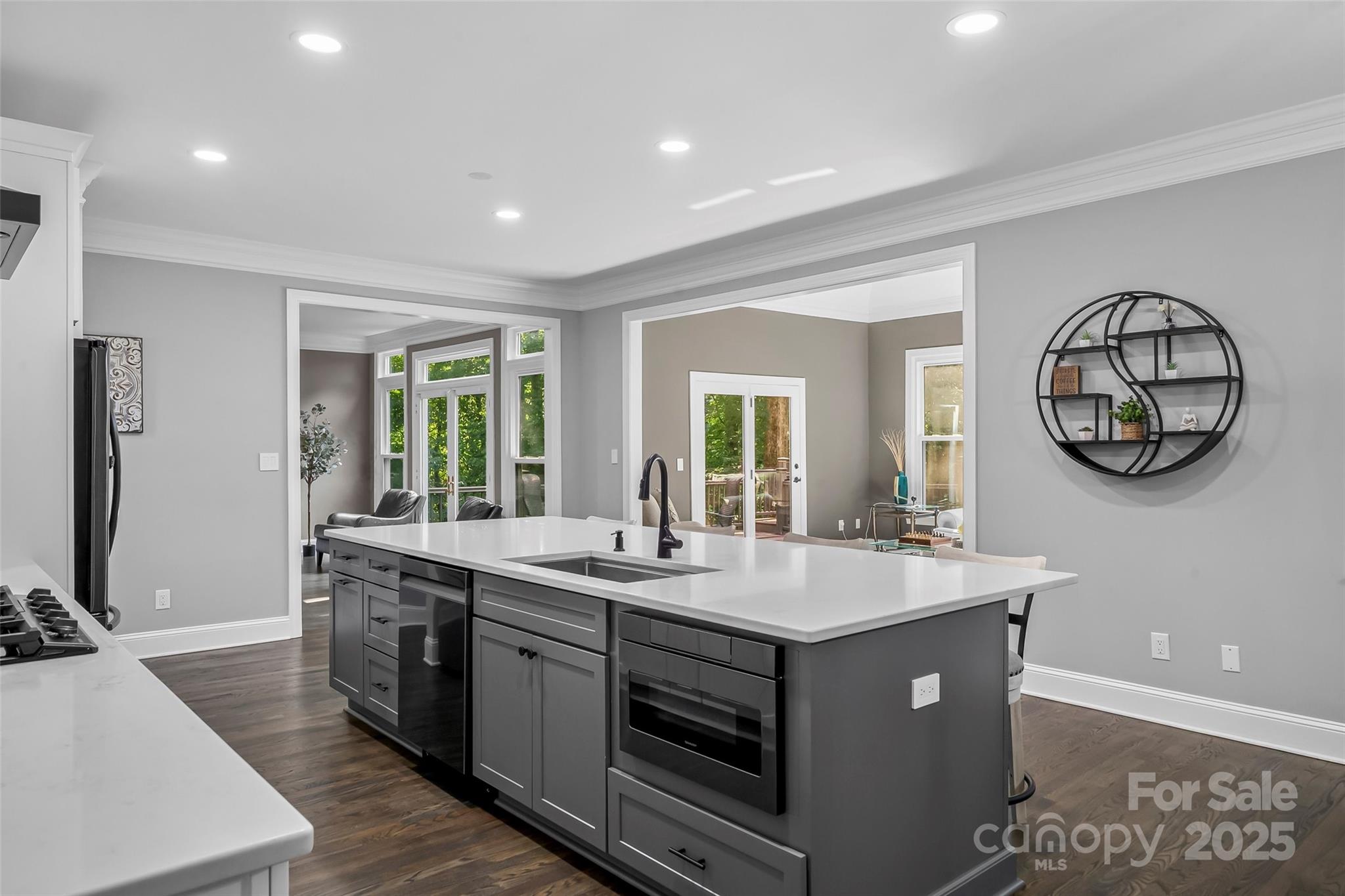 Discover a serene retreat in this 5BR/4.5BA home, w/ updated interiors, breathtaking outdoor spaces & a finished basement. Sophisticated kitchen is fully updated w/ smart appliances, center island w/ bar seating, modern cabinetry, spacious eat-in area, wine fridge, gas stove, double ovens, walk-in pantry, & is open to the dining room. Keeping room is ready for entertaining as you cook. Living room w/ built-ins, fireplace & large, bright windows. Hardwoods on main & second level refinished. Primary bedroom on main w/ sitting area. Primary bath fully remodeled w/ new cabinetry, tiled shower, new tile floor, rainfall shower head, walk-in closet. Expansive deck wraps around to a screened porch, overlooking mature trees. Second level offers three bedrooms, two updated en suite full baths, walk-in closets w/ built-in shelving. Full, finished basement offers a fireplace, storage closets, bedroom w/ en suite bath & opens to the large covered patio. Updated light fixtures & smart home system.