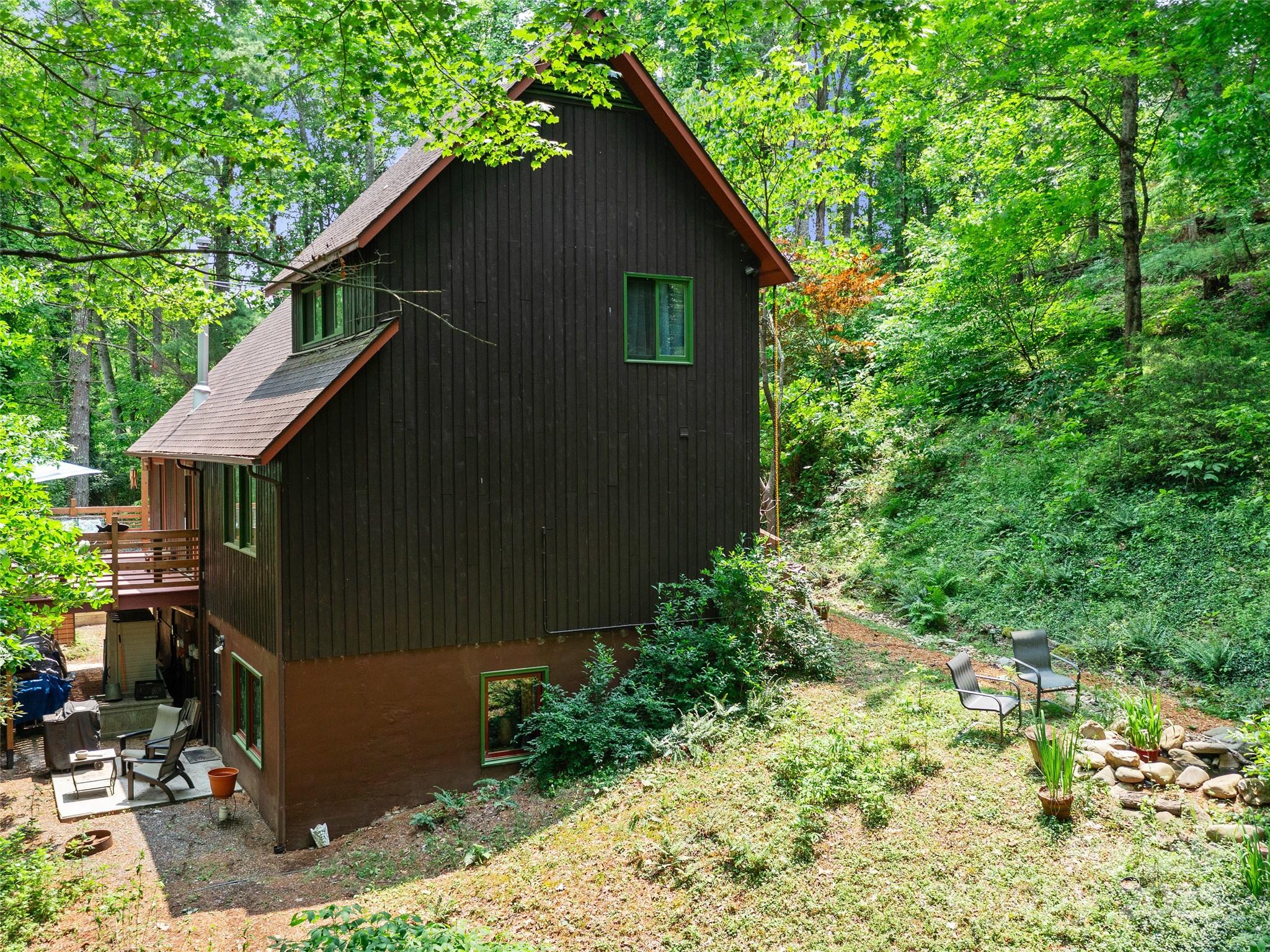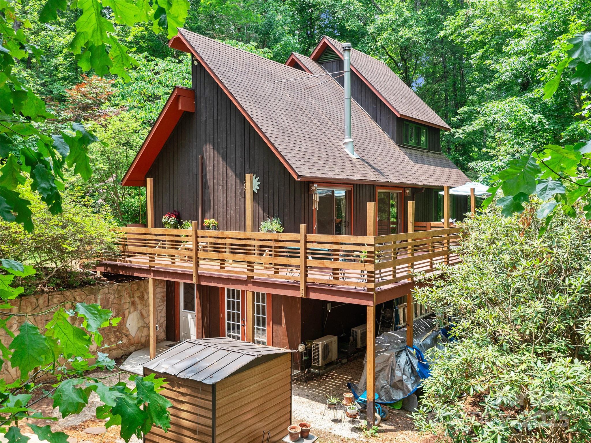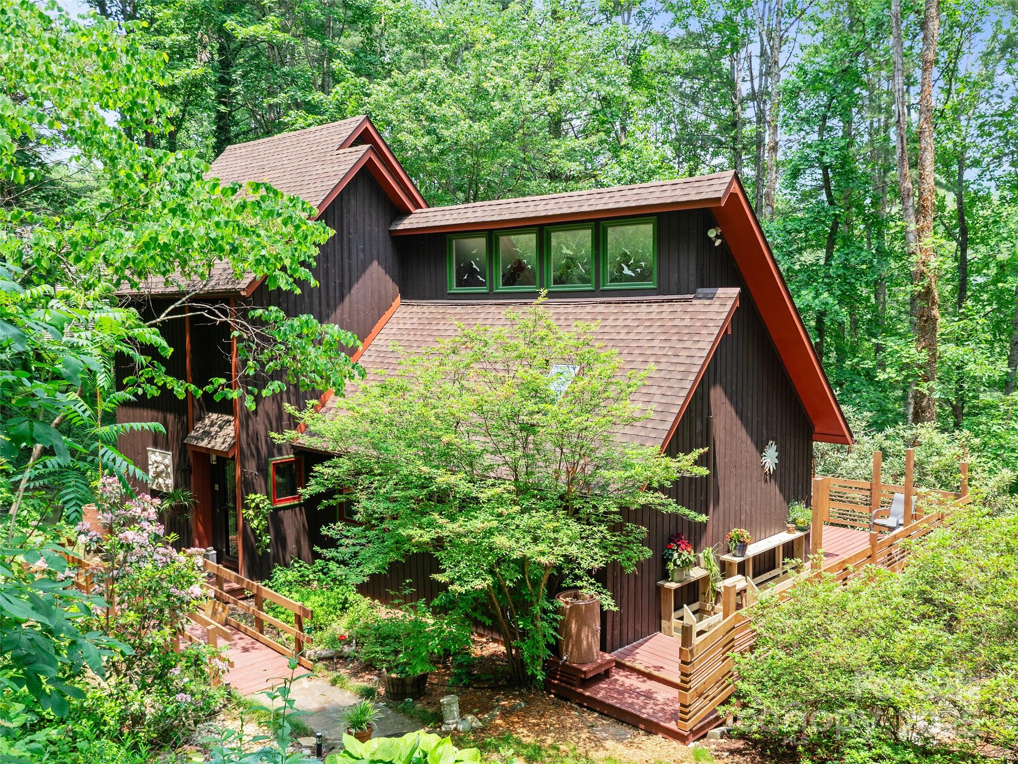 NEW PRICE • RENTAL INCOME POTENTIAL • CLOSE TO DOWNTOWN BURNSVILLE! This artistic, contemporary home offers exceptional value in a beautiful, storybook setting. Just 0.5 miles from Downtown Burnsville, this thoughtfully designed residence blends modern comfort with mountain charm. A renovated basement apartment provides outstanding flexibility - ideal for rental income, a private in-law suite, or guest accommodations. Nestled in the desirable Sunrise Village Subdivision, the property features mature landscaping, lush native plants, and established trees. Inside, the efficient floor plan maximizes space, showcasing a remodeled kitchen with new cabinetry, stove, and dishwasher. The wood stove adds warmth, while mini-split systems ensure year-round comfort. Step through the sliding glass doors onto a newly built wraparound deck with custom window boxes - perfect for morning coffee or evening entertaining. A dry creek bed channels rainwater to the fish pond, adding both beauty and function. Move-in ready and beautifully maintained - a rare find at this new price!