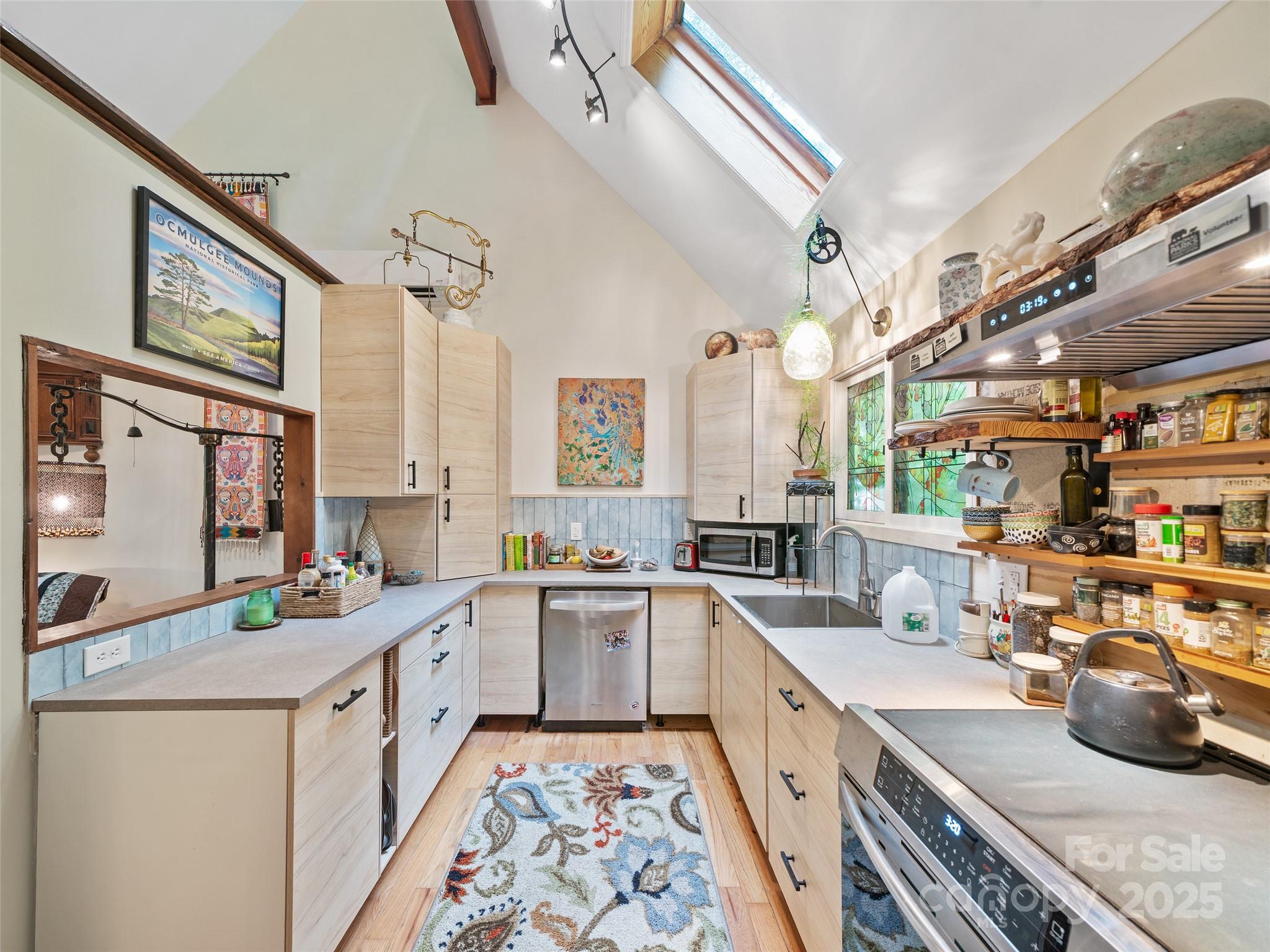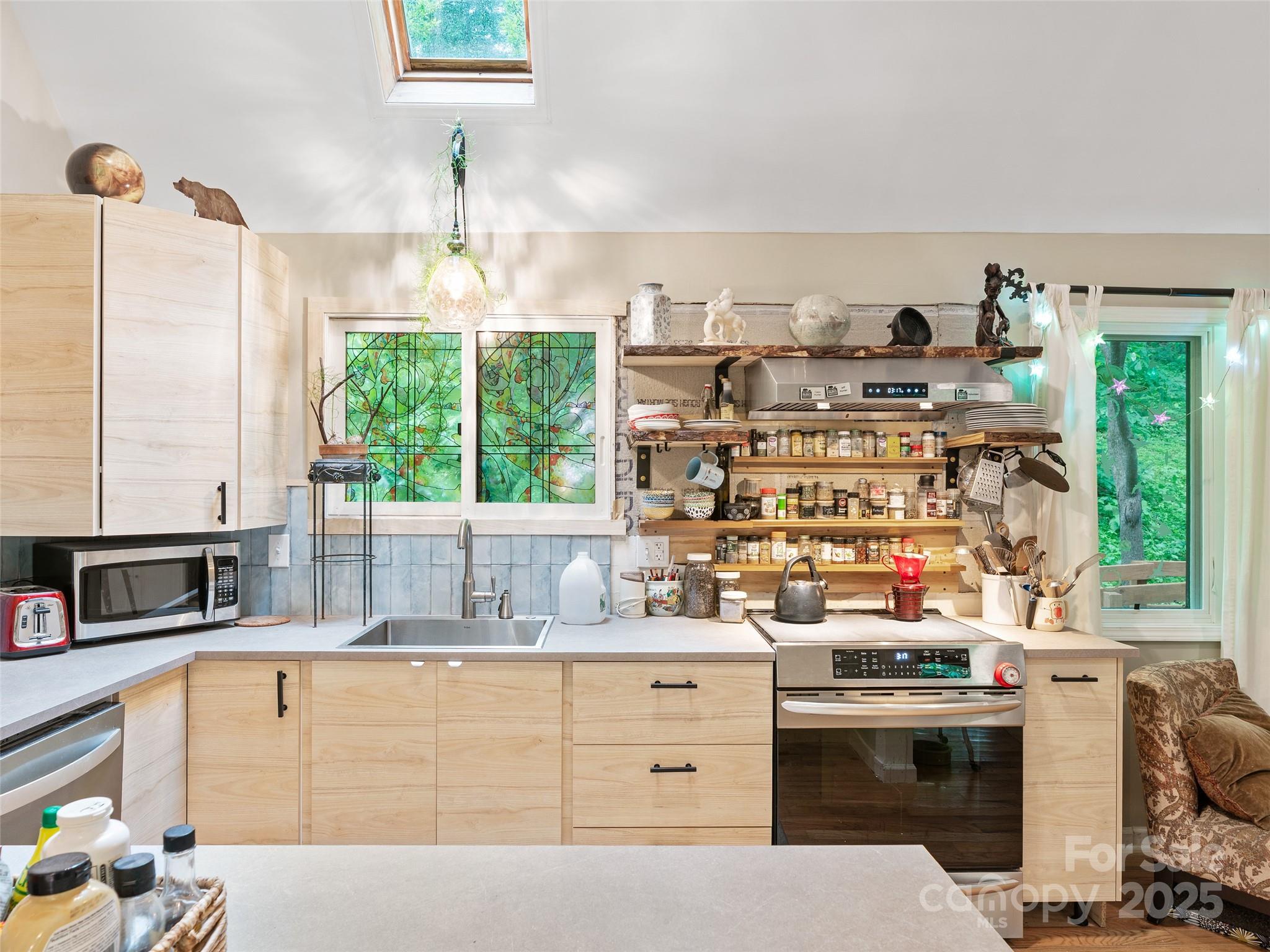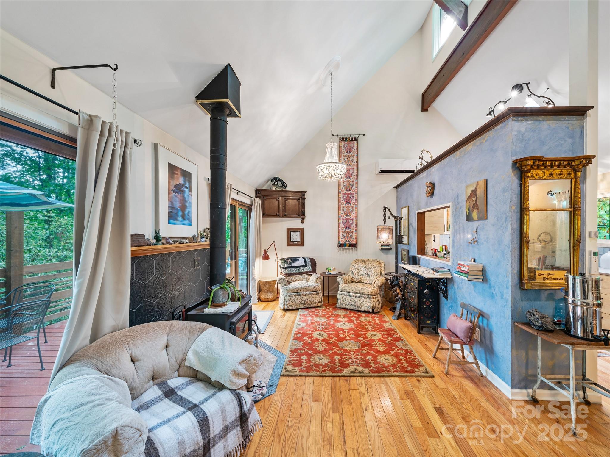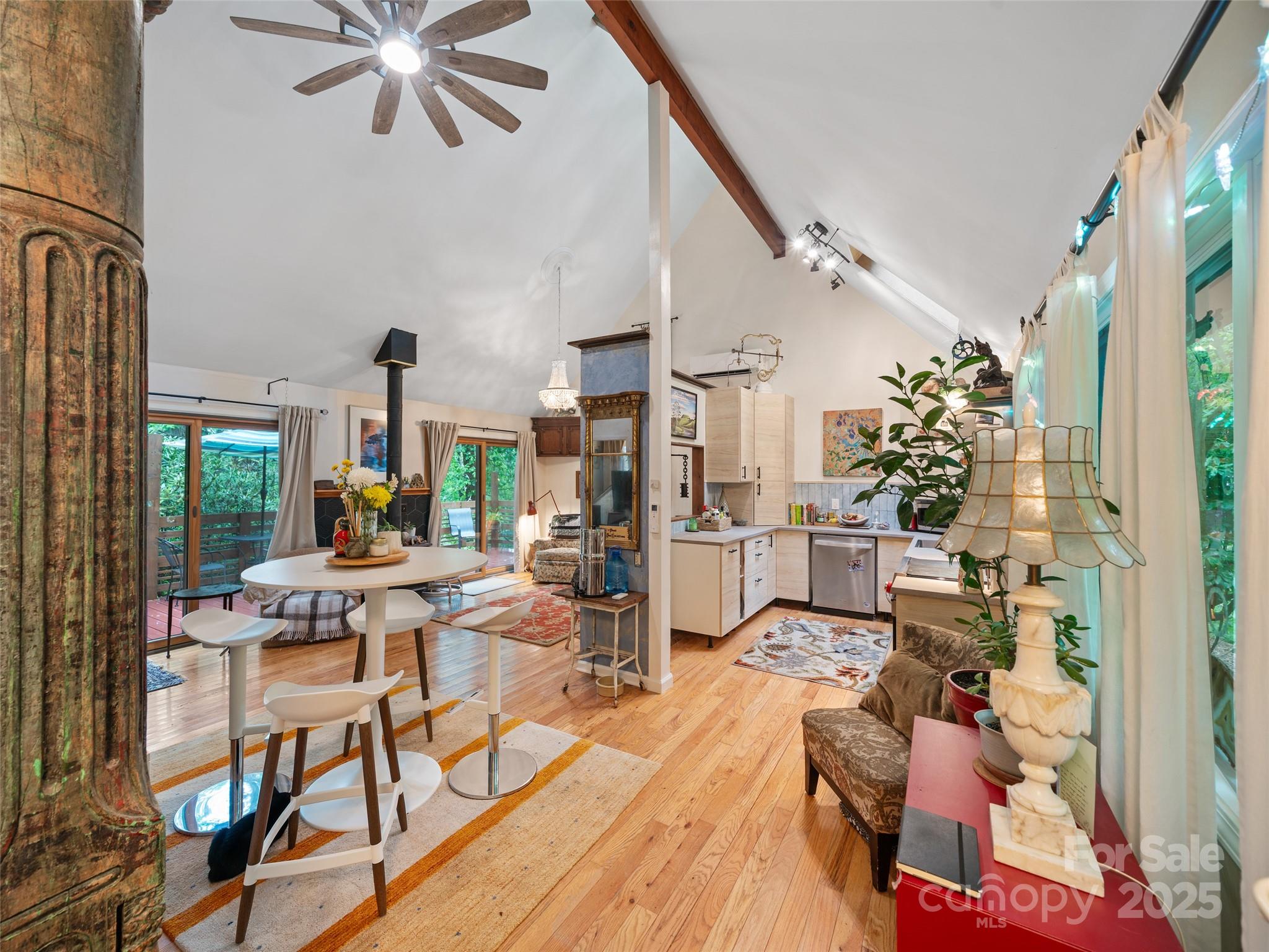 NEW PRICE • RENTAL INCOME POTENTIAL • CLOSE TO DOWNTOWN BURNSVILLE! This artistic, contemporary home offers exceptional value in a beautiful, storybook setting. Just 0.5 miles from Downtown Burnsville, this thoughtfully designed residence blends modern comfort with mountain charm. A renovated basement apartment provides outstanding flexibility - ideal for rental income, a private in-law suite, or guest accommodations. Nestled in the desirable Sunrise Village Subdivision, the property features mature landscaping, lush native plants, and established trees. Inside, the efficient floor plan maximizes space, showcasing a remodeled kitchen with new cabinetry, stove, and dishwasher. The wood stove adds warmth, while mini-split systems ensure year-round comfort. Step through the sliding glass doors onto a newly built wraparound deck with custom window boxes - perfect for morning coffee or evening entertaining. A dry creek bed channels rainwater to the fish pond, adding both beauty and function. Move-in ready and beautifully maintained - a rare find at this new price!