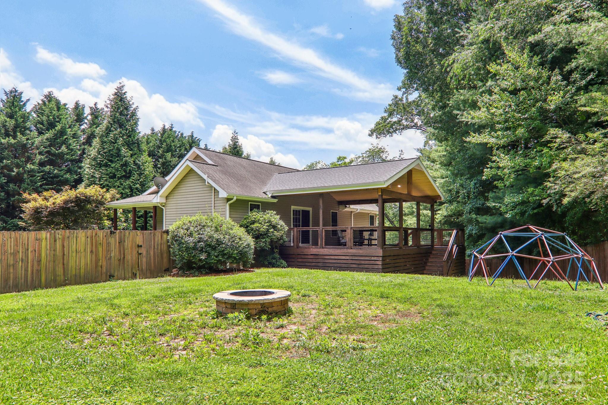 New Price! Experience refined mountain living in this stunning home, ideally located in the highly sought-after Mills River community and within a top-rated school district. Thoughtfully designed with elegant stone accents and a welcoming wrap-around covered front porch, this home offers both privacy and comfort. Enjoy outdoor living at its finest on the expansive covered rear deck with soaring cathedral ceilings—perfect for entertaining guests or relaxing in a hot tub while overlooking the peaceful surroundings. Set on a spacious .63-acre lot, the property features an oversized, partially fenced yard with mature landscaping and plenty of room for play, pets, or gardening—all with no HOA restrictions. Inside, the main level boasts an open and airy floor plan with three bedrooms, including a generous primary suite, two full baths, and a convenient main-level laundry. The chef-inspired kitchen features custom cabinetry, fantasy brown stone countertops, and a breakfast bar that flows seamlessly into the dining and living areas—ideal for gatherings and everyday living. The lower level offers a versatile bonus space—perfect for a media room, home gym, or guest quarters—and opens directly into a large, attached garage with an extra room for a workshop or storage. Located in the West Henderson High School and Mills River Elementary School District and less than 30 minutes from both Asheville and Hendersonville, this home combines modern comfort, timeless design, and a fantastic location. Come see why this Mills River gem is truly one-of-a-kind!