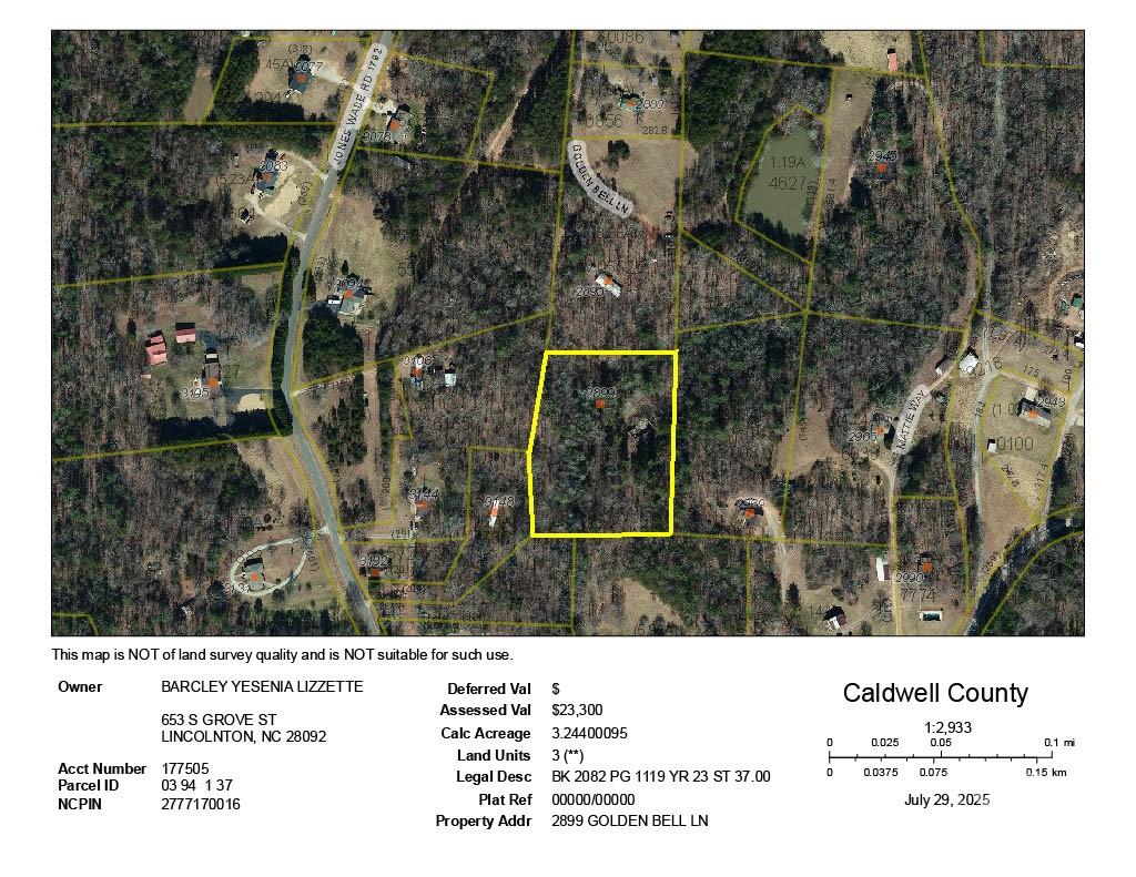 Discover 3.24 wooded acres on Golden Bell Lane, offering privacy and tranquility on a quiet dead-end street in Hudson, NC. This private, parcel offers a peaceful natural setting—ideal for building your custom home or a weekend retreat. A concrete foundation from a previous home remains on site; check if suitable to be built on. Property requires Perc test. Make sure to ask Buyer to establish property lines and boundaries. Just a short drive to town, shopping, and schools.