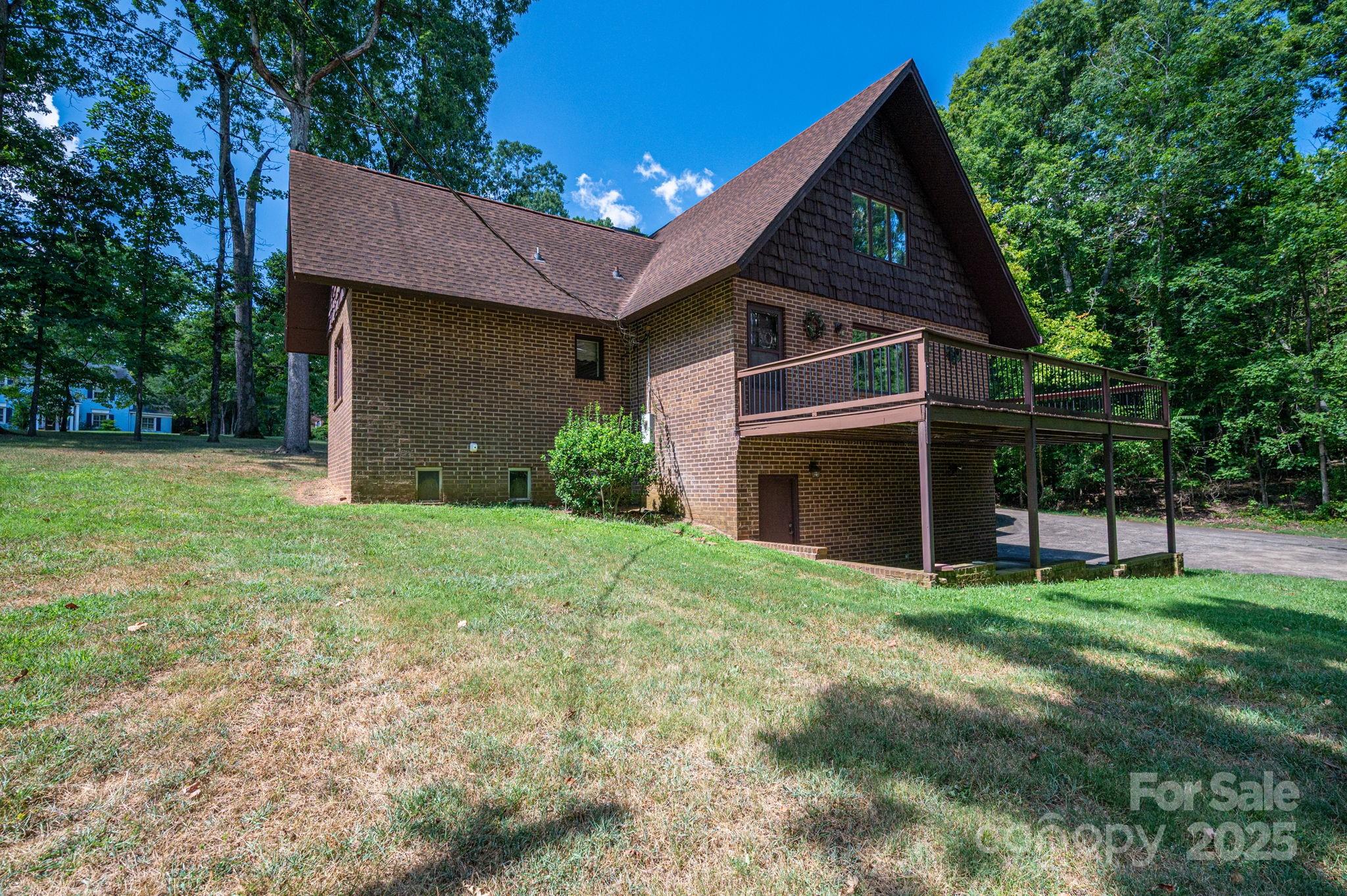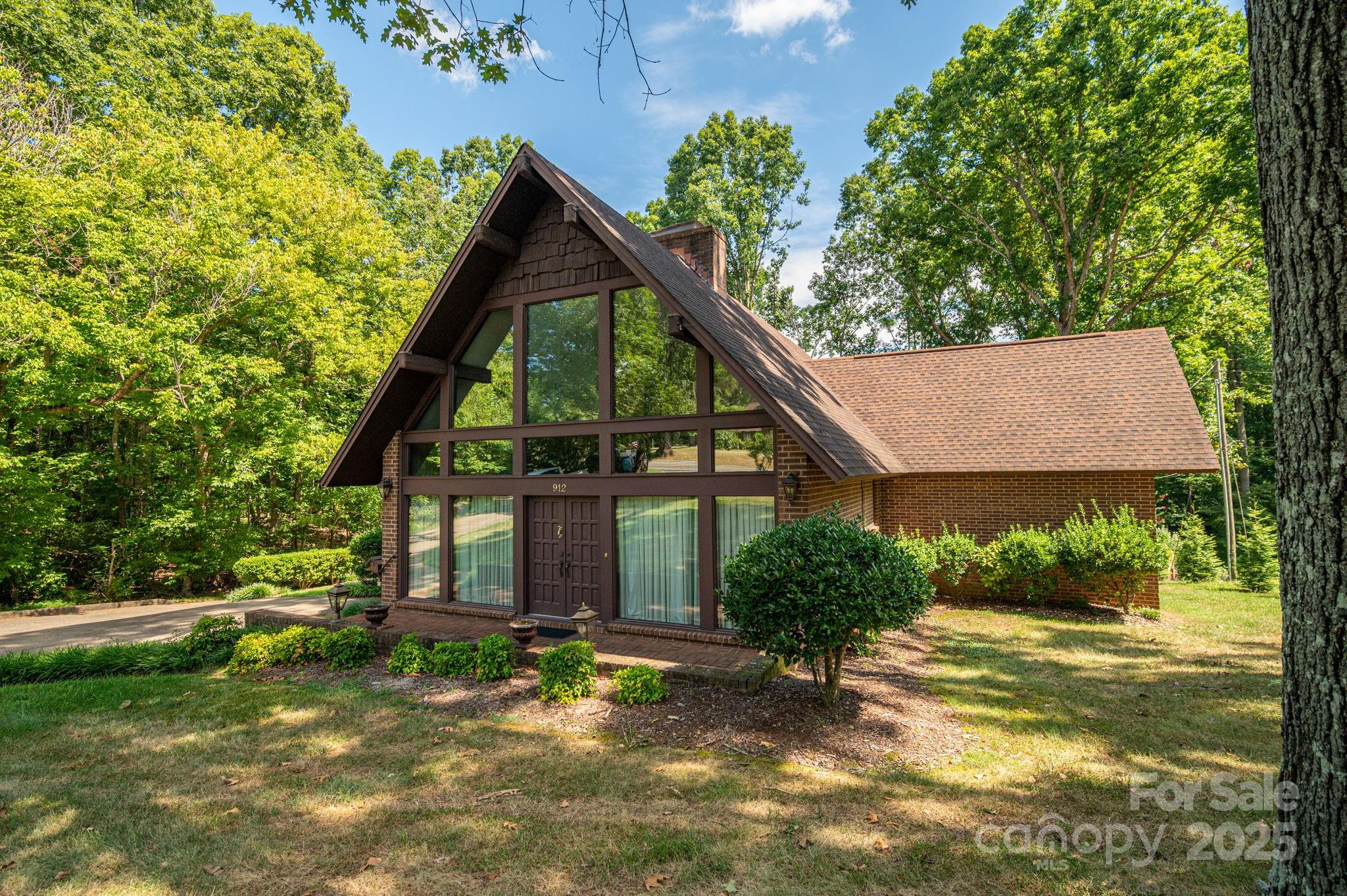Iconic 4BR/4BA brick 1 1/2 story A-frame with basement. This one owner home features loads of built-in storage and closets. Family room with fireplace, large dining room, Kitchen with double oven, cooktop and eat-at bar, large primary bedroom and bath with updated shower, guest room and full bath. Upstairs has additional bedroom, full bath with additional sink, Large bedroom/bonus room with access to balcony overlooking family room. Basement offers additional space for expansion or storage, has sink, toilet and shower. Access to single car garage and separate storage/work shop. Single car parking under back deck. Property includes a Home Warranty for a year. This is the home you have driven by and said "Look how nice that home looks". Now it can be yours.