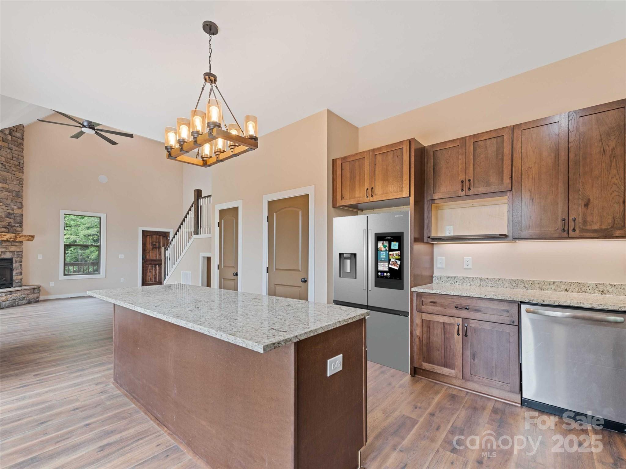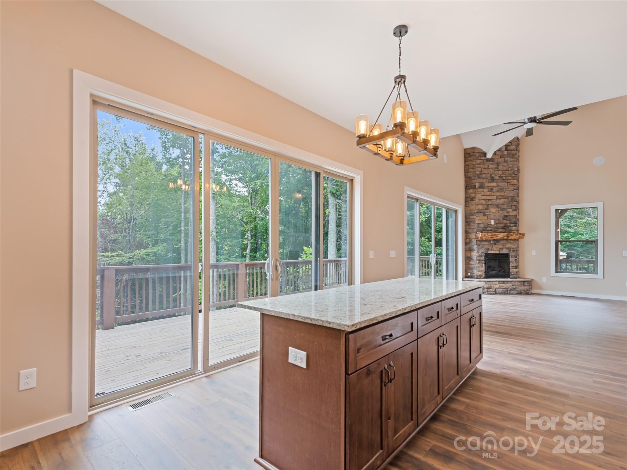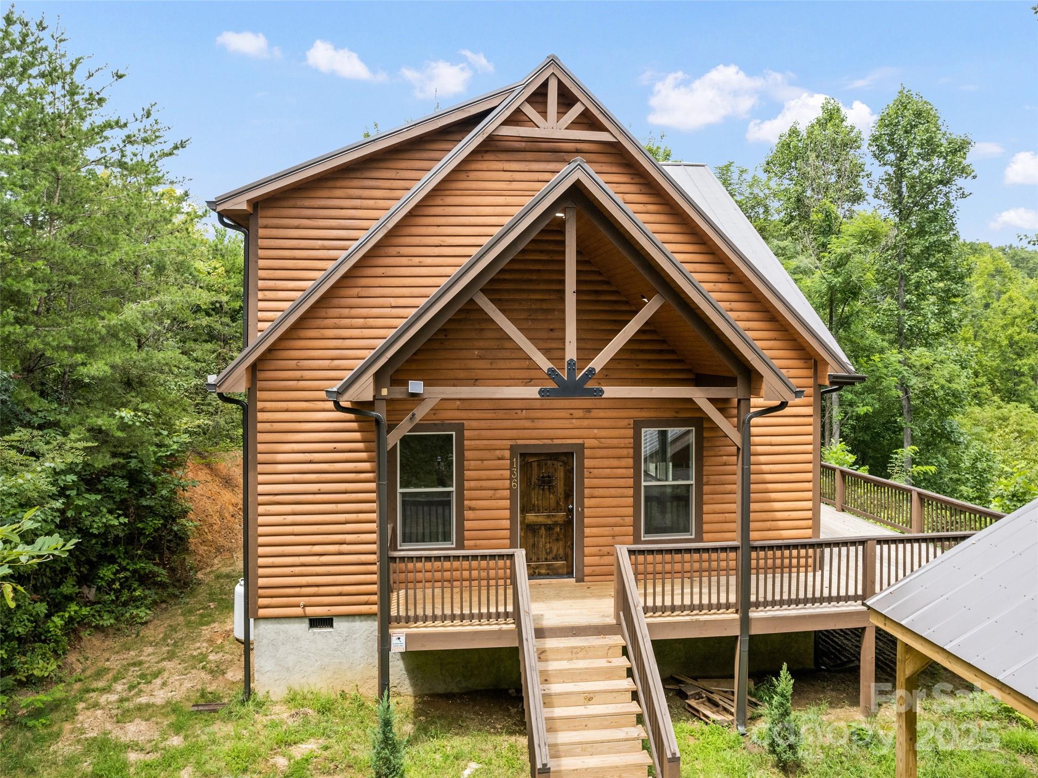 LOCATION, LOCATION, LOCATION! Just 10 mins to Harrah’s Cherokee Casino and 5 mins to river rafting & trout fishing—perfect for a high-income Airbnb. Enjoy stunning long-range mountain views from the deck of this brand-new (2024) custom home. The open floor plan features a spacious great room with floor-to-ceiling windows, a stone gas-log fireplace, and cathedral ceilings with recessed lighting. 10-ft glass doors connect the great room and kitchen to the deck for seamless indoor-outdoor living. The kitchen boasts stainless appliances—refrigerator, range, hood, and dishwasher. The primary suite offers a soaker tub, walk-in shower, and double vanity. Level yard, 1-car carport, and easy-access driveway complete the package. Laundry room on the main floor. The open, beautiful staircase leads up to the second floor, featuring three bedrooms with a full bath. Two of the bedrooms have private entrances to the bathroom. The home is positioned to take advantage of the mountain view.