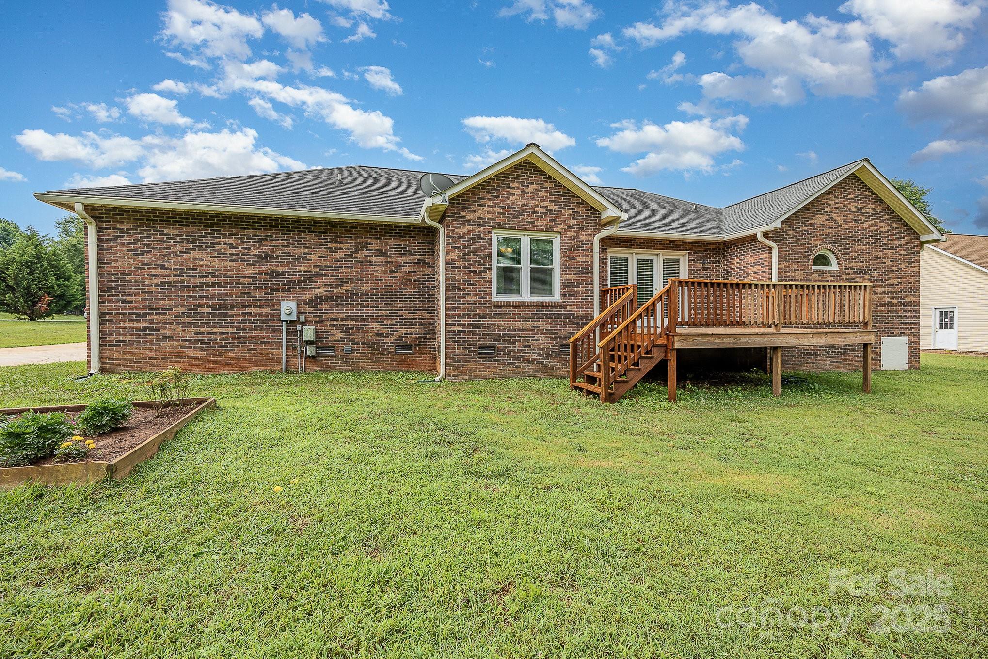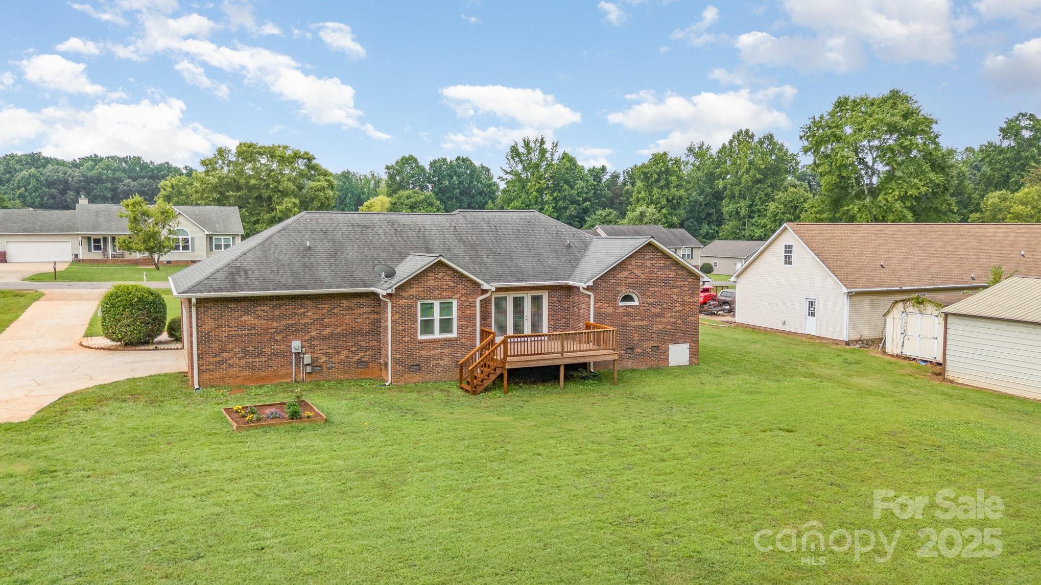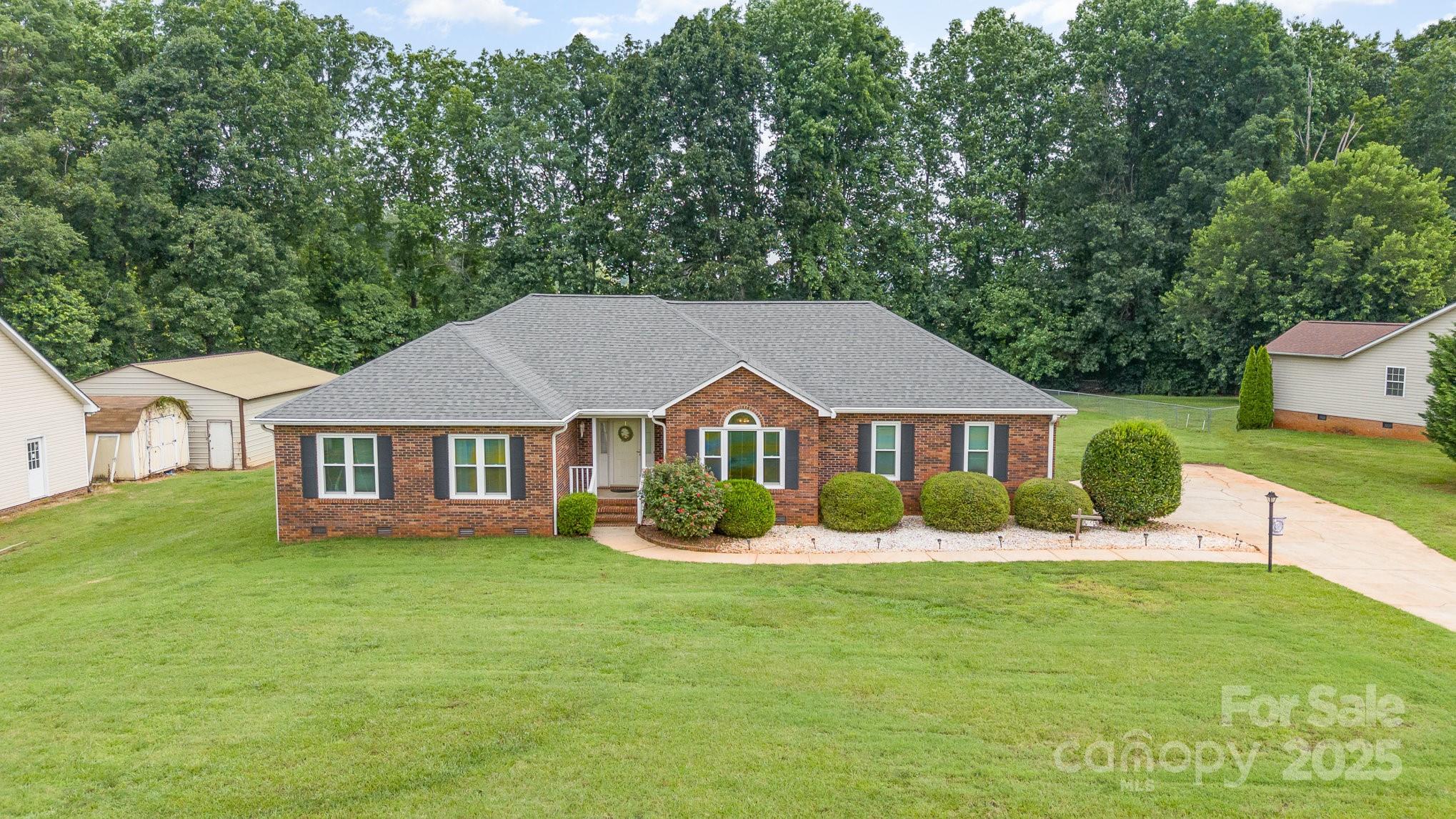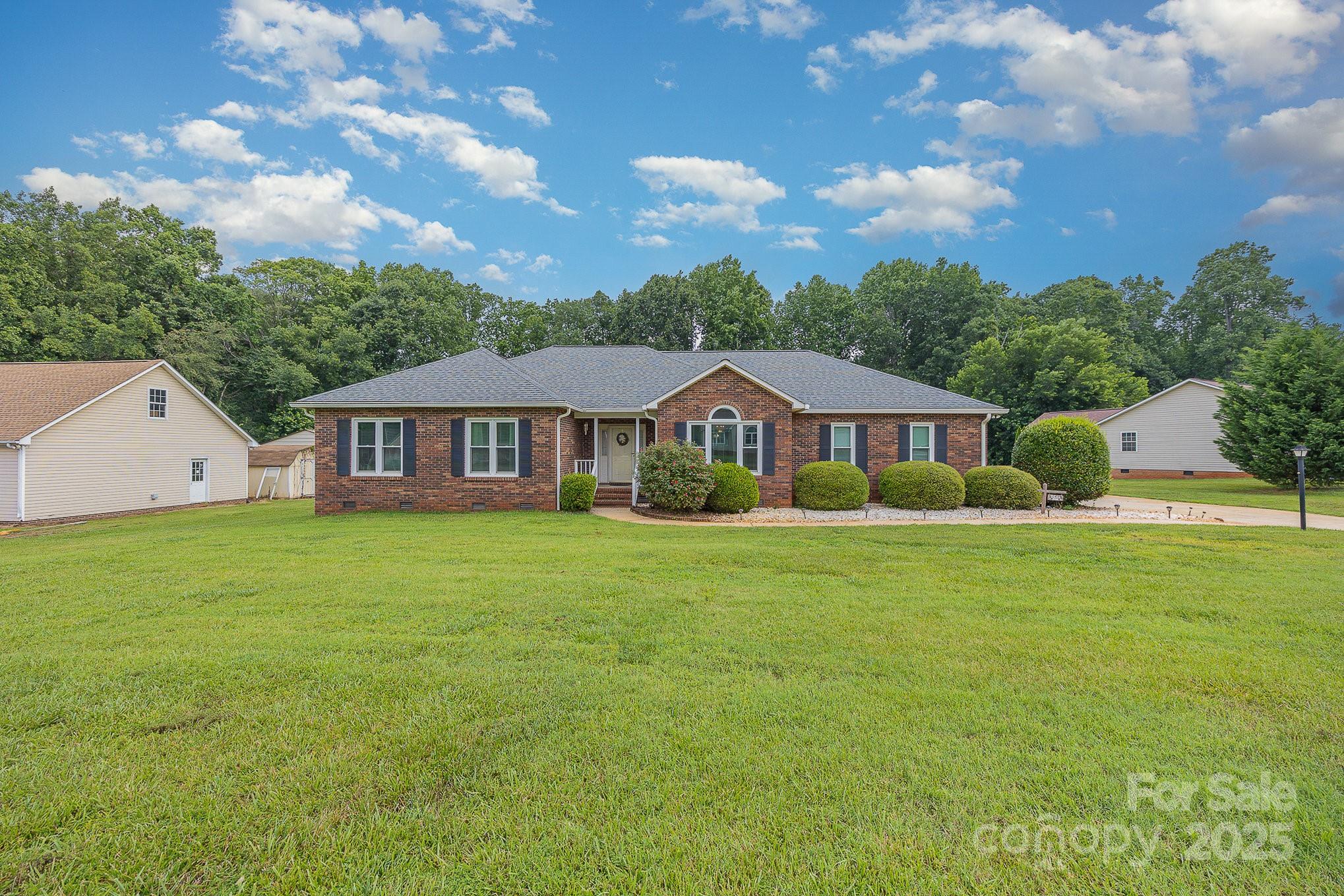 If you've been searching for the perfect mix of charm, privacy, and peace of mind..this is it! This full-brick ranch sits on a beautifully manicured 0.80-acre level lot, framed by mature trees that create a serene, park-like backdrop. Step inside and instantly feel at home. The sun-filled living room welcomes you with warmth and comfort, while the updated bathrooms and generously sized walk-in closets bring both style and function. The kitchen features granite countertops, rich wood cabinets, and plenty of space for prep and gathering. Major updates? Taken care of. The roof was replaced several years ago, and the HVAC, gutters, and windows are all newer. A spacious laundry room, 2-car garage, and detached storage shed offer all the storage and utility space you need. Out back, a framed deck is ready for your summer nights under the stars. And here's the best part: No HOA. No city taxes. Just freedom and flexibility. This home checks every box—solid, stylish, and move-in ready.