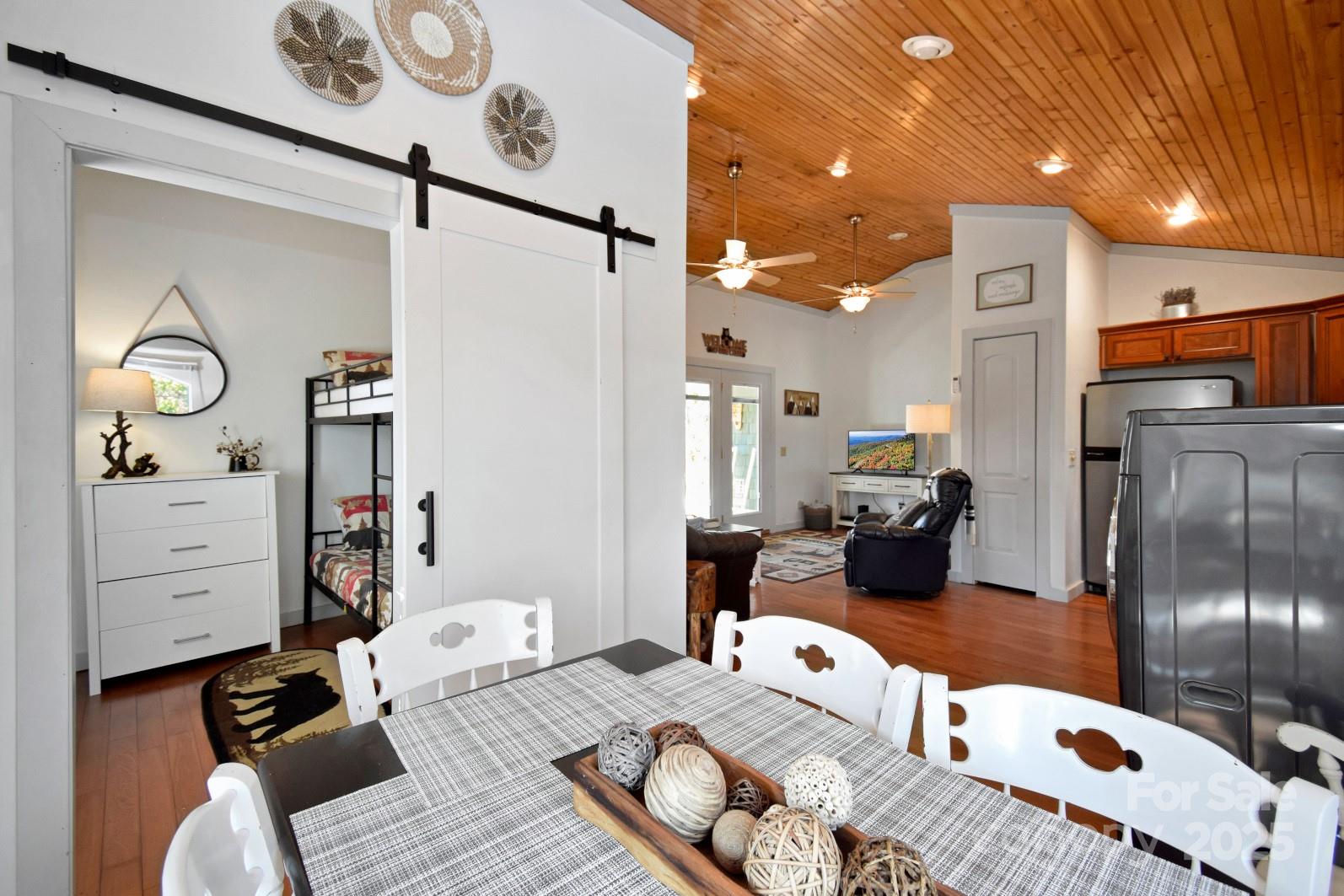 Affordable mountain getaway w/amenities. ONE LEVEL LIVING. Buy now and spend summer in the mountains! This cute mtn cottage is ready for immediate enjoyment. Offered TURNKEY. Plenty of room for everyone here w/spacious open floor plan, large bedroom and a bunk room. 2 driveways w/parking for at least 3 vehicles. Golf Cart Garage. Vaulted Wood Ceilings. Gas Log Fireplace. Kitchen updated w/stainless appliances, lots of cabinet storage & pantry. Convenient washer/dryer combo unit. Updated bathroom. Two mini splits for year-round comfort. TWO COVERED PORCHES-Pull up a rocking chair & take in the cool mtn air. Enclosed workshop for rainy-day projects. Yearly dues include water, sewer, road maintenance, cable, high-speed internet, trash, pool, 24-hour security, etc. Linville Land Harbor offers MANY AMENITIES: DOG PARK, Hiking Trails, Fishing, 45 Acre Lake w/Beach, Clubhouse, Activity Center w/Planned Activities and more! PICKLEBALL, GOLF, and TENNIS available in the community.