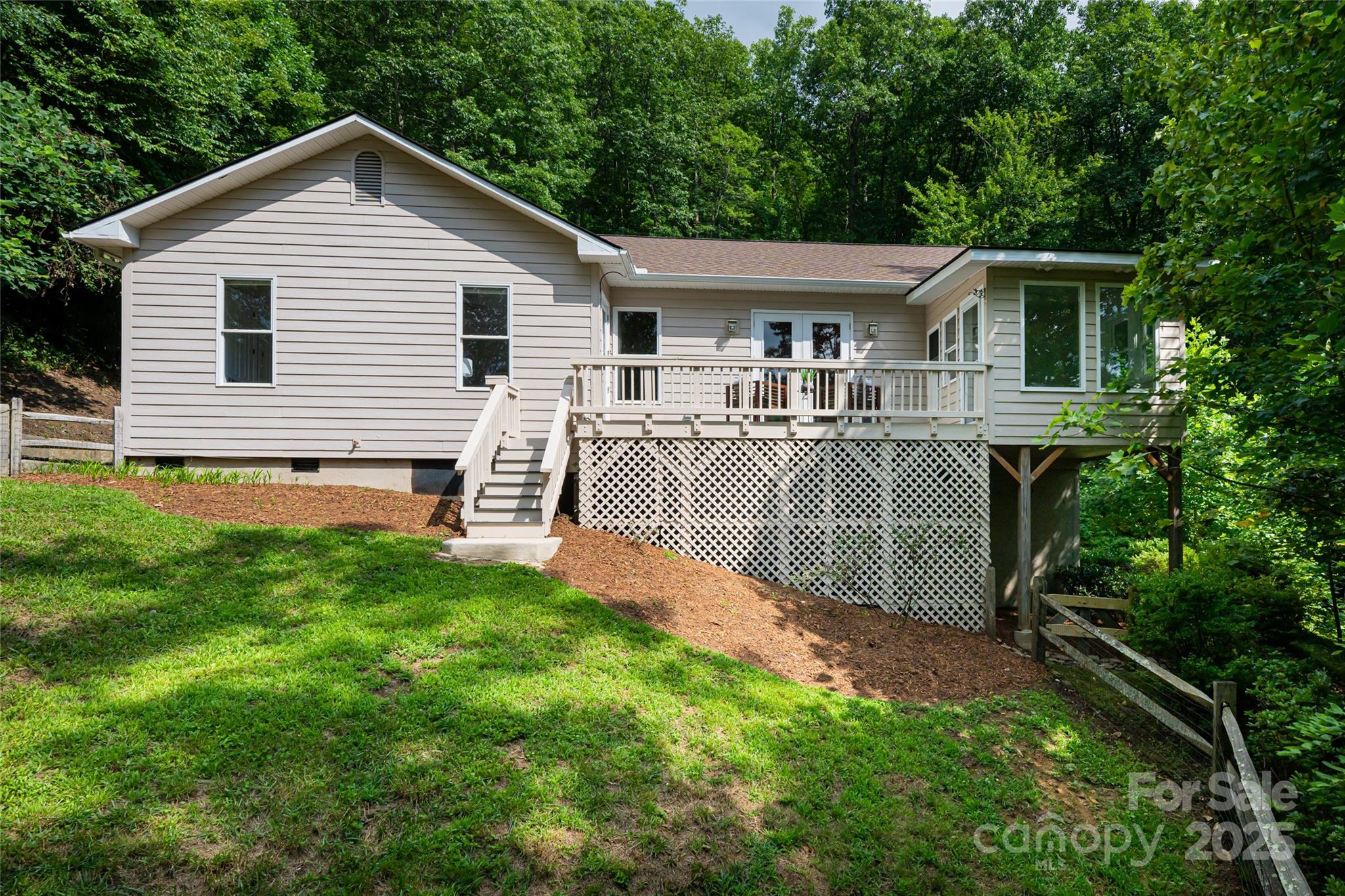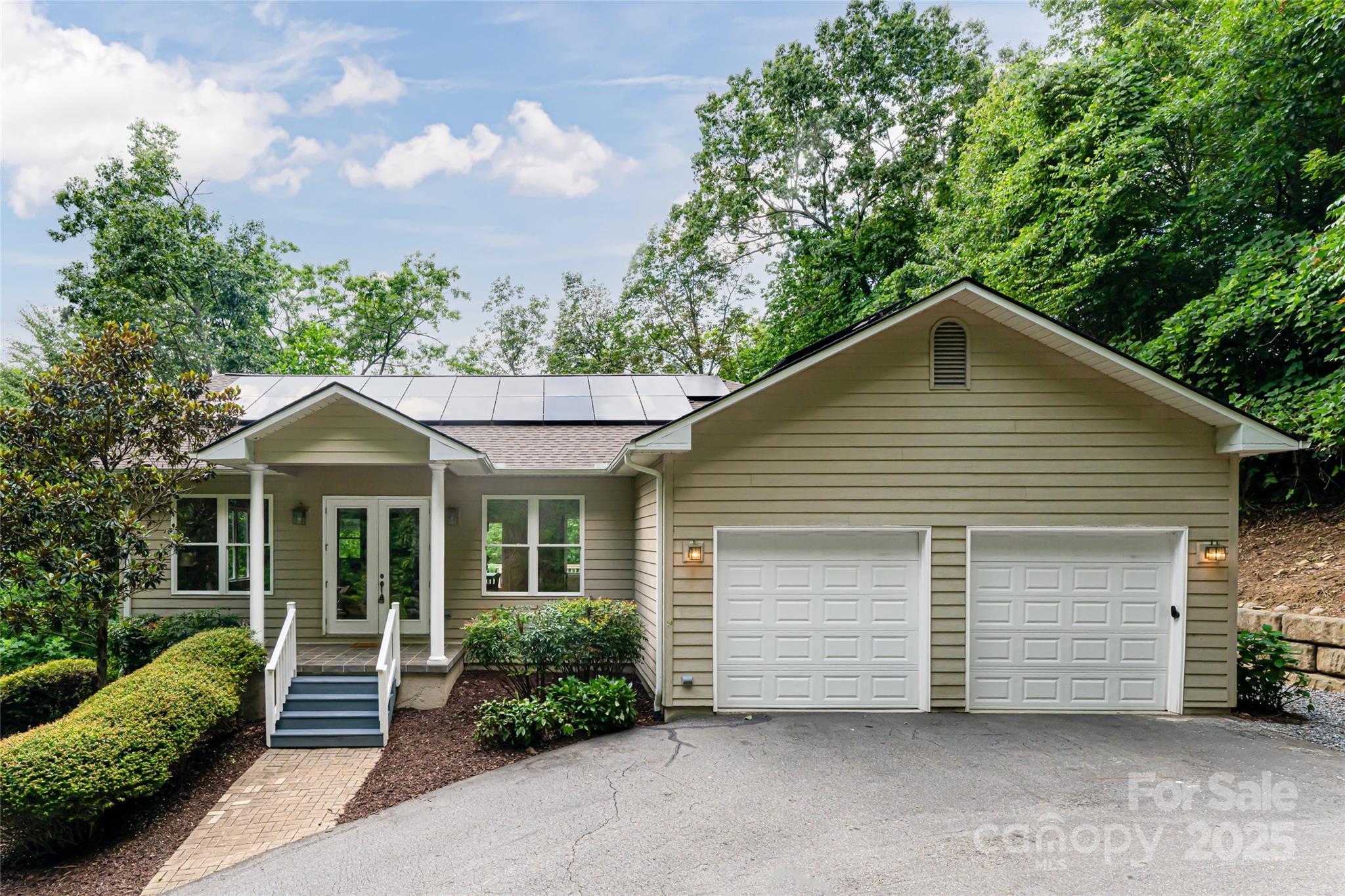 MOTIVATED SELLERS! Enjoy the solitude of the peaceful surroundings from this private Fairview home nestled in the trees. Smart and spacious one level floor plan with guest bedrooms and additional living space on lower level with interior and private walk-out access - all freshly painted. Soaring tongue-and-groove ceilings and a unique double sided fireplace that connects the living and kitchen/dining area. Primary suite on the main level is a true retreat with soaking tub, double vanities and peaceful tree-filled scenes from the windows and glass door leading to the deck. Separate sunroom space is ideal for yoga, meditation or reading. Fenced, usable yard for pets and play. Offering the quiet vibes of rural living, yet only minutes to shopping and dining in Fairview, 20 minutes to East Asheville, 25 minutes to Downtown Asheville and 25 minutes to the Chimney Rock/Lake Lure area. Solar panels, generator, EV charger and high speed internet provide modern comforts. No rental restrictions!