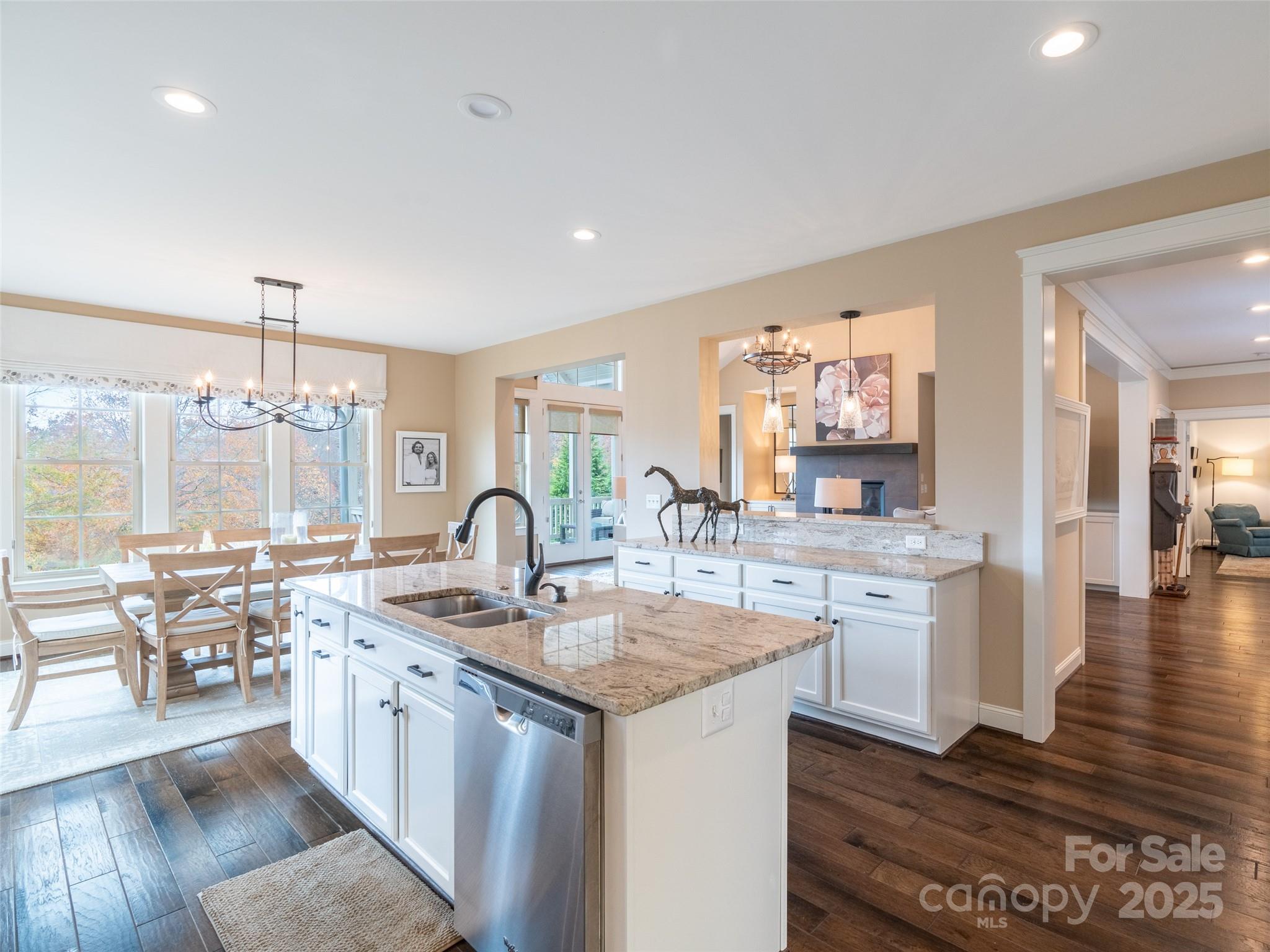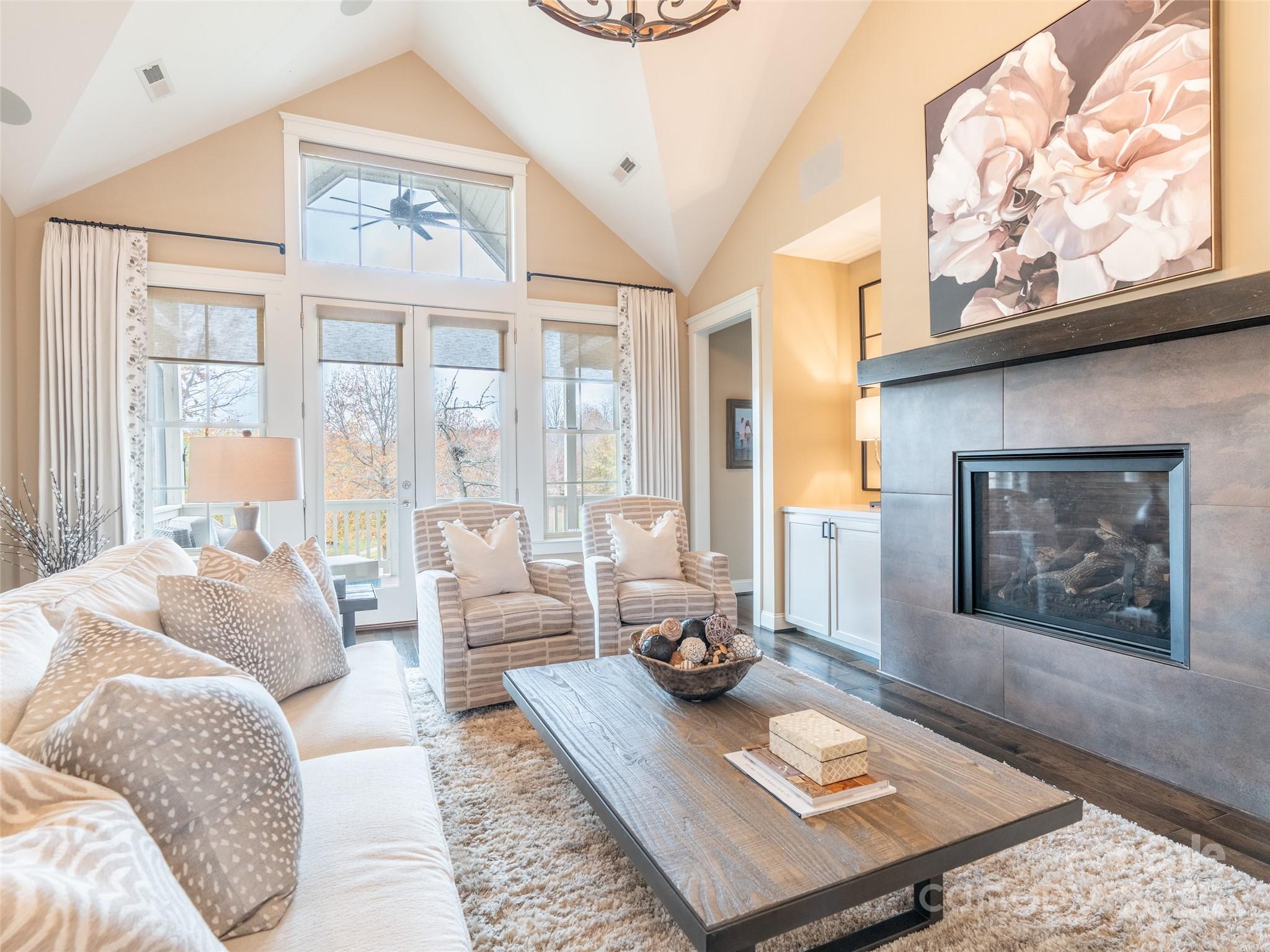 Located in the prestigious gated community of Cedar Rock at Biltmore Lake, this stunning home, freshly updated, offers over 4,300 square feet of beautifully designed space with five bedrooms and five full baths. Enjoy effortless single-level living with an open floor plan, vaulted ceilings and an abundance of natural light. The main level features a luxurious primary suite, along with a guest bedroom and bath, providing convenience and comfort. The remodeled kitchen is an entertainer's dream, seamlessly flowing into the living and dining areas. Utilize the finished room over the garage for additional guests or living space. The finished basement expands the living area with a spacious family room, a gym, and two additional guest suites. Take in breathtaking year-round mountain and lake views while enjoying over seven miles of scenic walking trails. Community amenities include a lake, boathouse, playground, clubhouse, tennis and basketball courts, and social events.