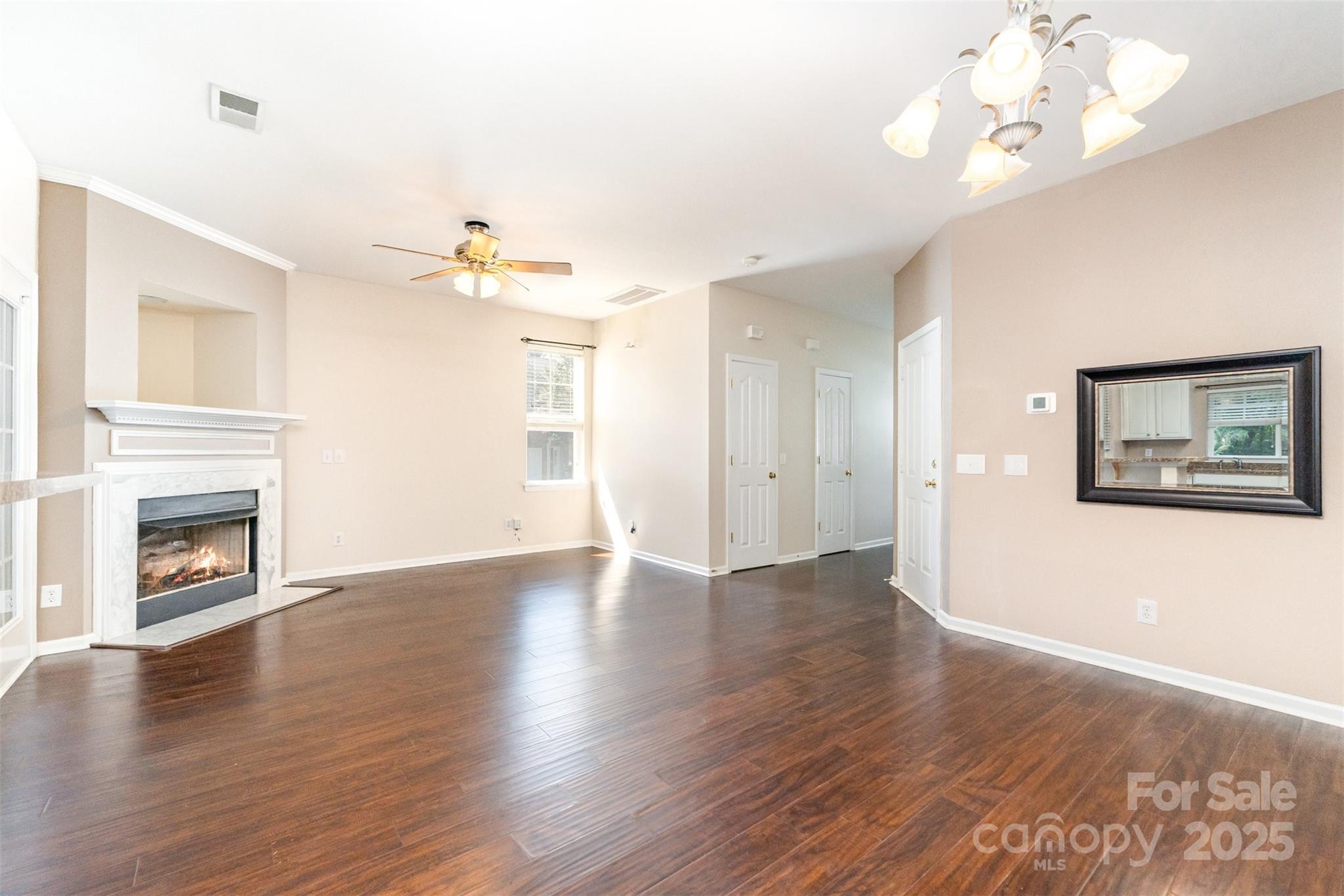 Prime Ballantyne Location! Welcome to this End Unit Townhome situated in one of Charlotte’s most sought-after areas. Just a short drive to Ballantyne Village and Blakeney Town Center with restuarants and shops. This well maintainted home has garage and extra parking available on the side. The home offers a spacious layout with screened in back porch. The main floor features living room with gas log fireplace and dining area. The kitchen has range/oven combination, microwave and refrigerator. Entertain friends at the bar that opens to th kitchen. Upstairs you'll find the primary bedroom with ensuite bath and a second spacious bedrooms and a loft. The community features include a clubhouse and swimming pool.